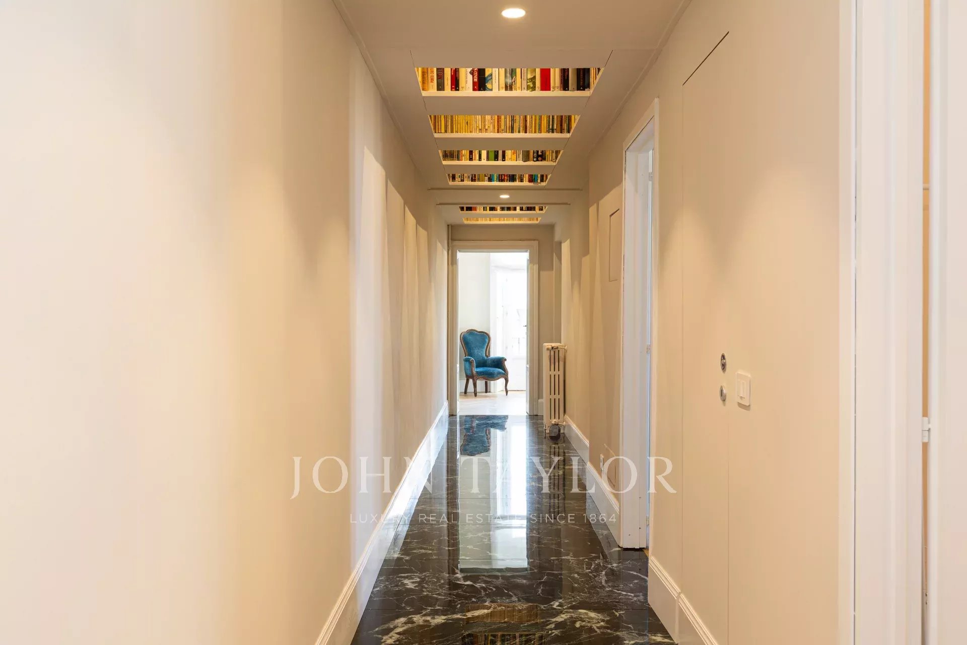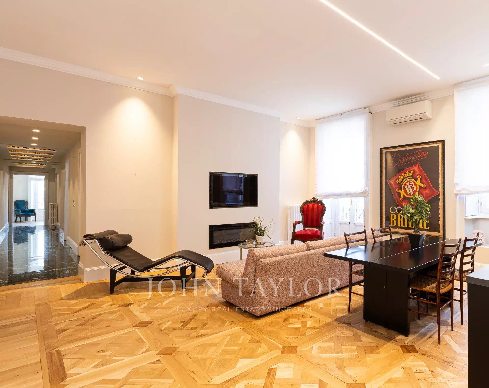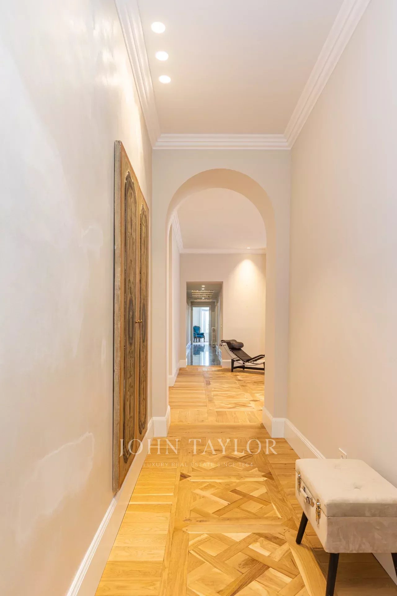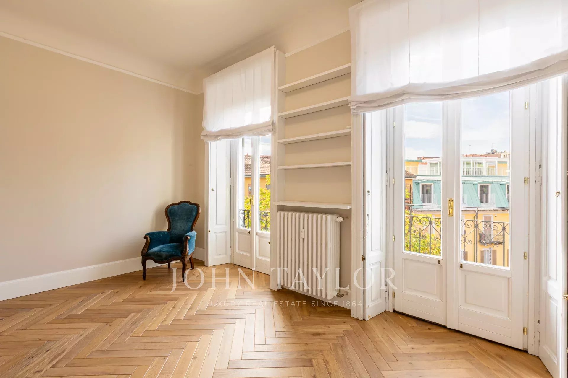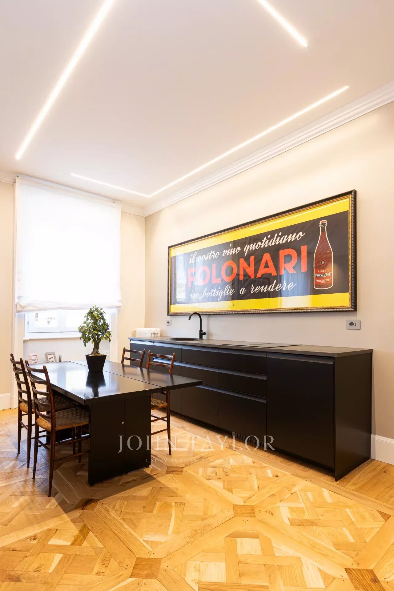 Exclusive to John Taylor, top floor in one of the most exclusive and prestigious areas of Milan, we offer for rent a magnificent residence located on the top floor of an elegant period building with full-day concierge service. The apartment, completely new and never lived in, features unique finishes and furnishings, custom-made with the finest materials. Covering approximately 130 sqm, the property stands out for its great charm, brightness, quietness, and captivating views. The layout includes a spacious entrance hall, a double living room with dining area and kitchen area, two master bedrooms, two bathrooms, a laundry/ironing room, and two balconies. A rare living solution of the highest quality, ideal for those seeking elegance, privacy, and comfort in a historic setting of remarkable charm. Monthly rent: € 4,200.