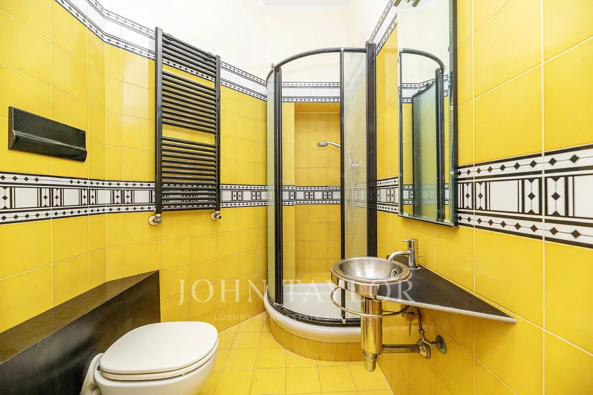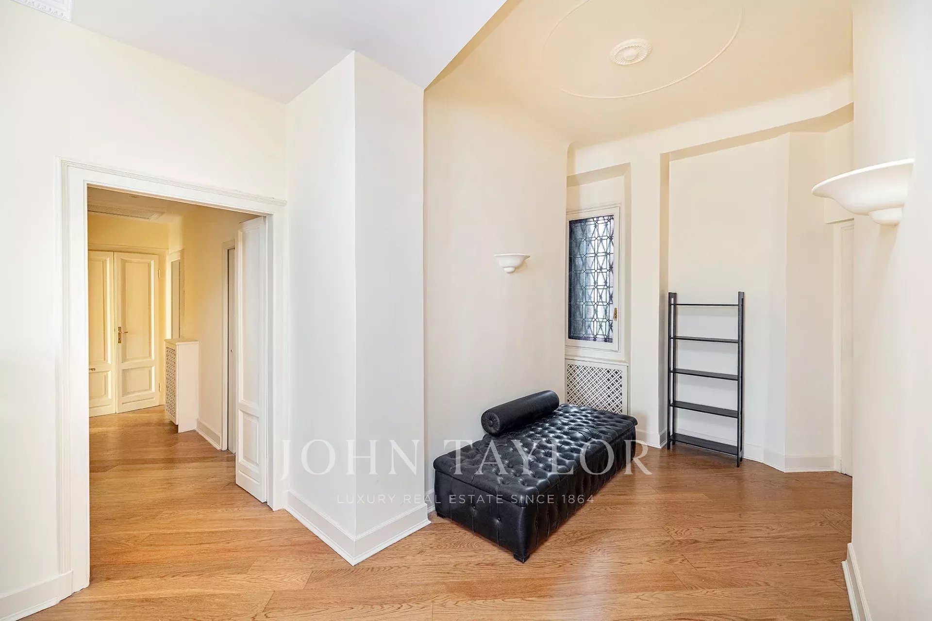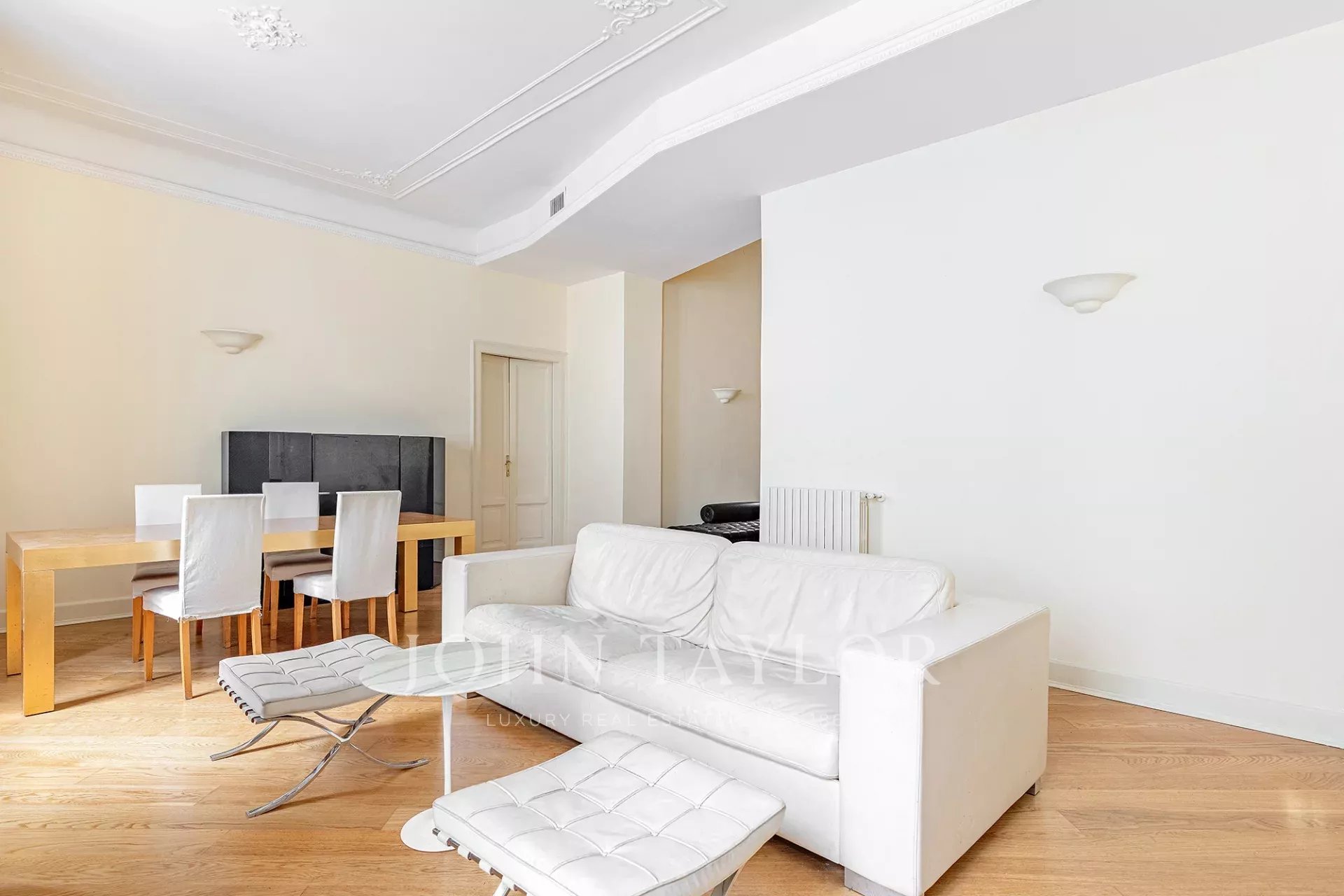 In an elegant 19th-century setting, a very quiet, furnished apartment, approx. 130 sqm. composed of an entrance hall, double living room, eat-in kitchen, two bedrooms, two bathrooms, two balconies, cellar, and attic. €2.500 per month. Energy class F