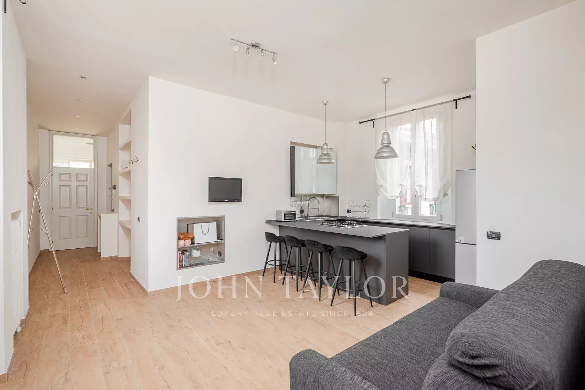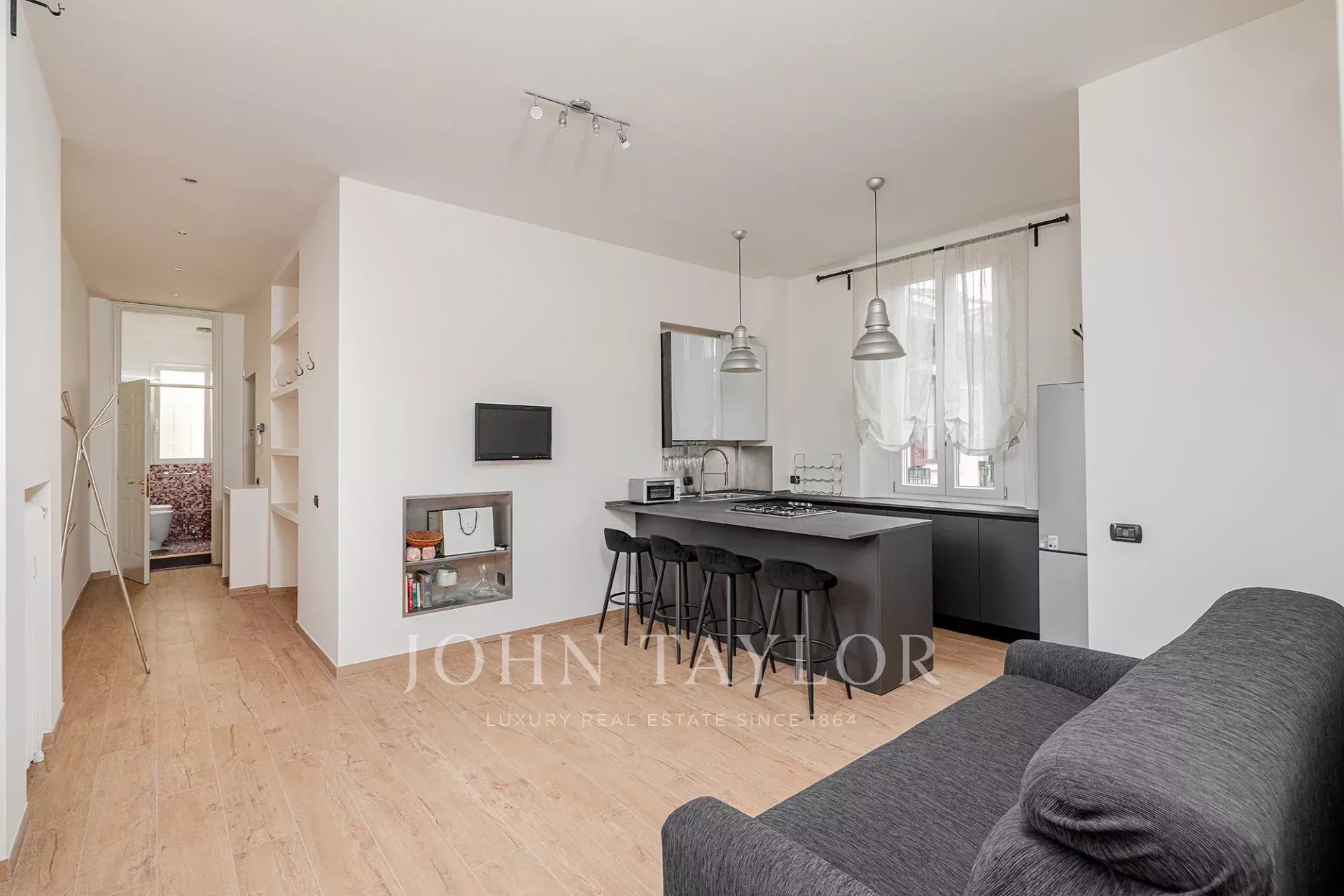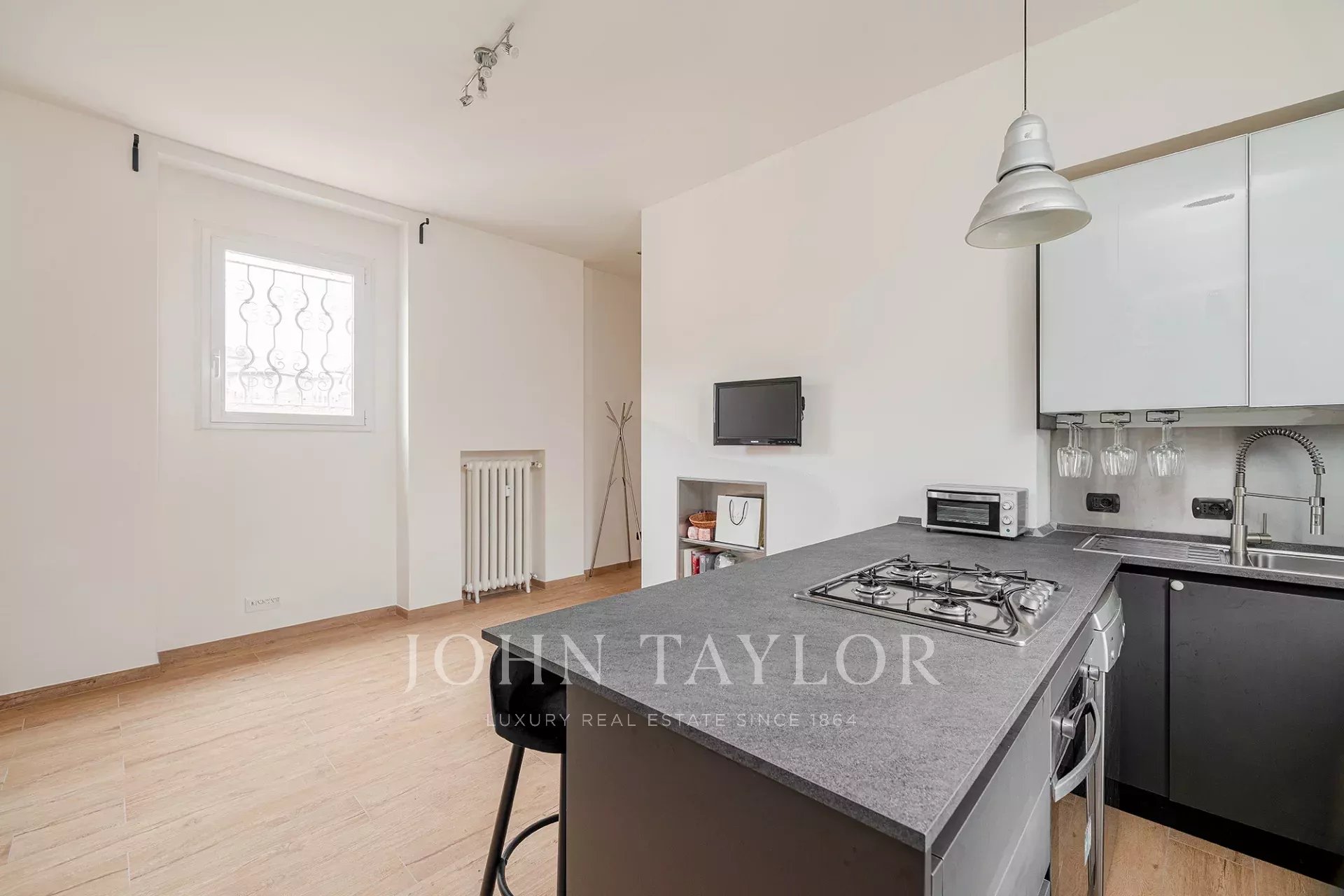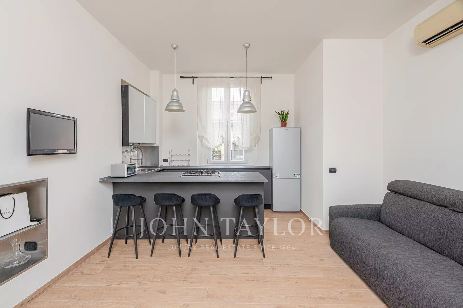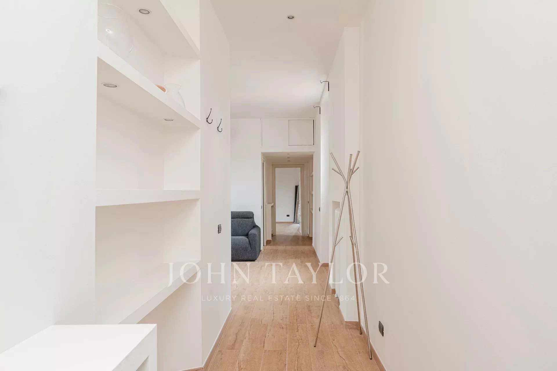Top floor in an exclusive context of historical value, splendid apartment of approx. 85 sqm, top floor, very bright and quiet, residence fully furnished with quality and custom-made furniture, consisting of entrance hall, large living room with kitchen area, 2 large bedrooms, walk-in closet, bathroom, balcony. The property is completed by the cellar.