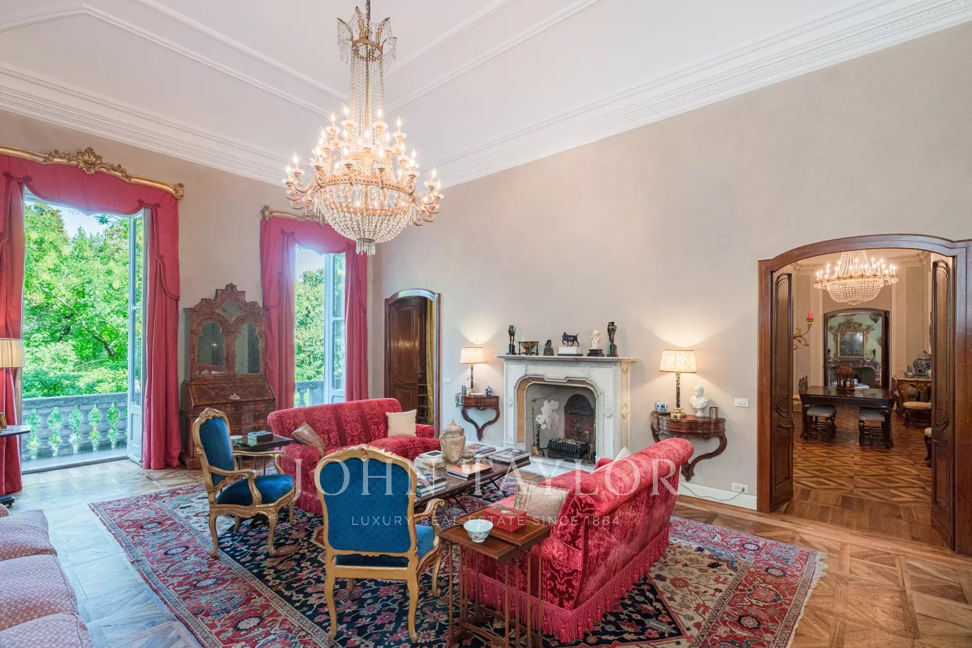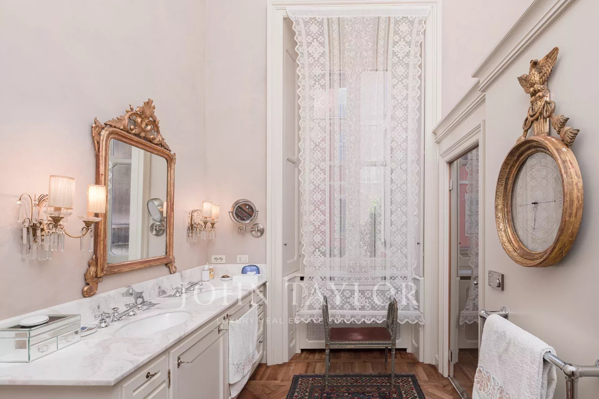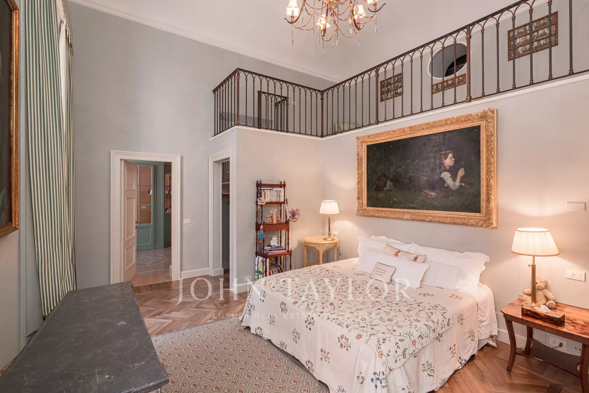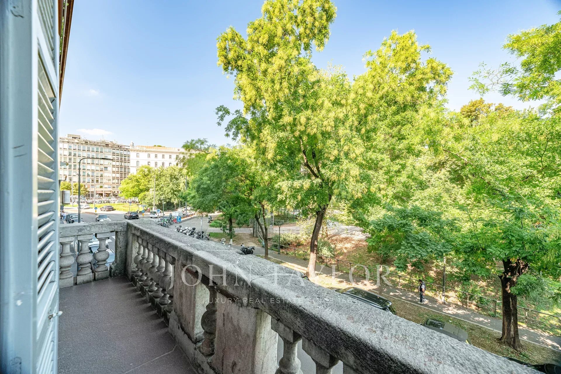 In one of the most exclusive contexts of the city, inside an elegant 1930 period building with full-time concierge service, we offer for sale a unique residence of approx. 500 sqm, arranged on two levels, with internal elevator. The main floor welcomes with a large representative living room with fireplace, a study with antique library, a refined dining room in the large hallway, a TV room with fireplace, and a guest bathroom. The sleeping area includes a master suite with private bathroom and walk-in closet, two further double bedrooms with en-suite bathrooms and walk-in closets, as well as a single bedroom with dedicated bathroom. The mezzanine floor hosts the service area, consisting of laundry, wardrobe, and service room with bathroom. On the ground floor develops the large eat-in kitchen with direct access to the private garden, the garage, and a spacious cellar/pantry. The property is completed by a single garage with the possibility of parking a second car in front. A prestigious residence, perfect for those seeking large spaces, period charm, and a position of absolute value, in the heart of Milan and facing the Indro Montanelli Gardens.