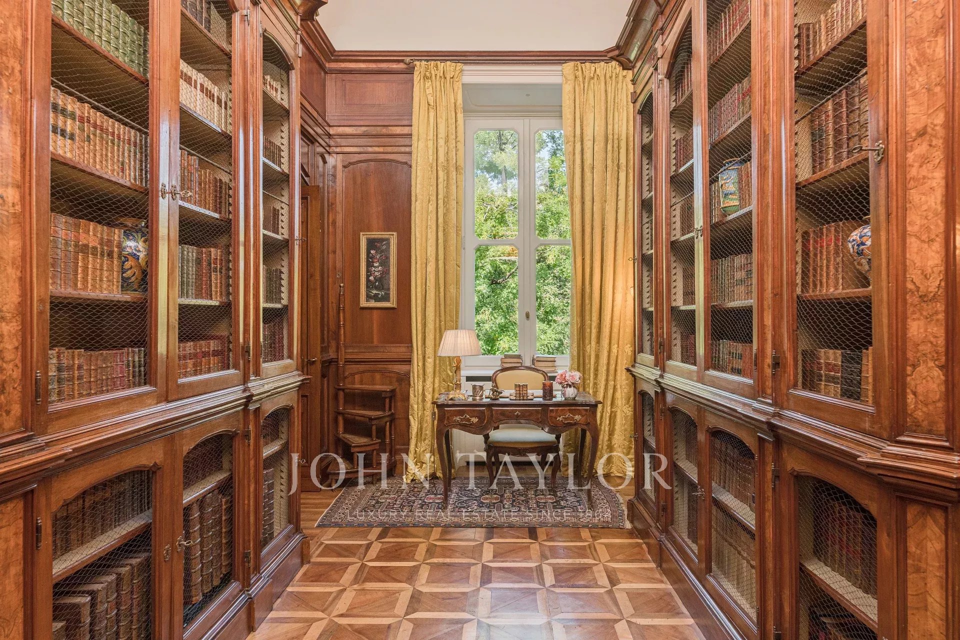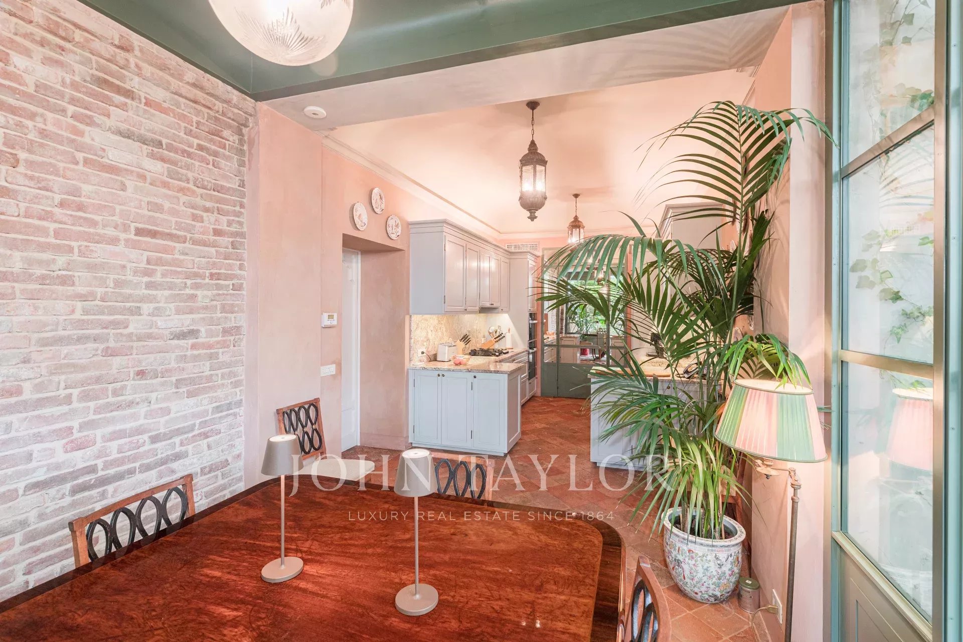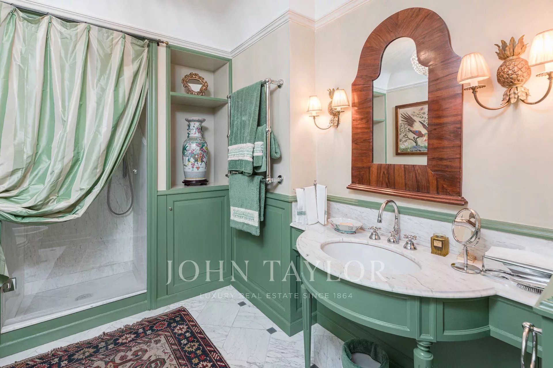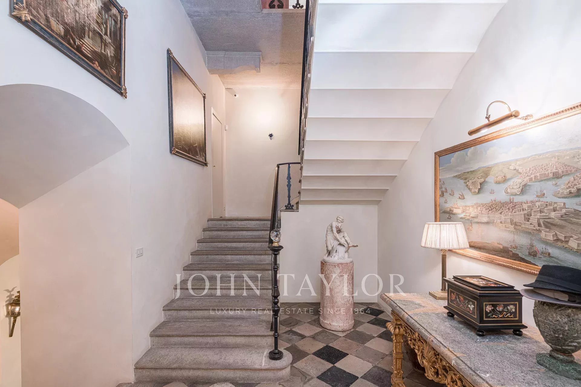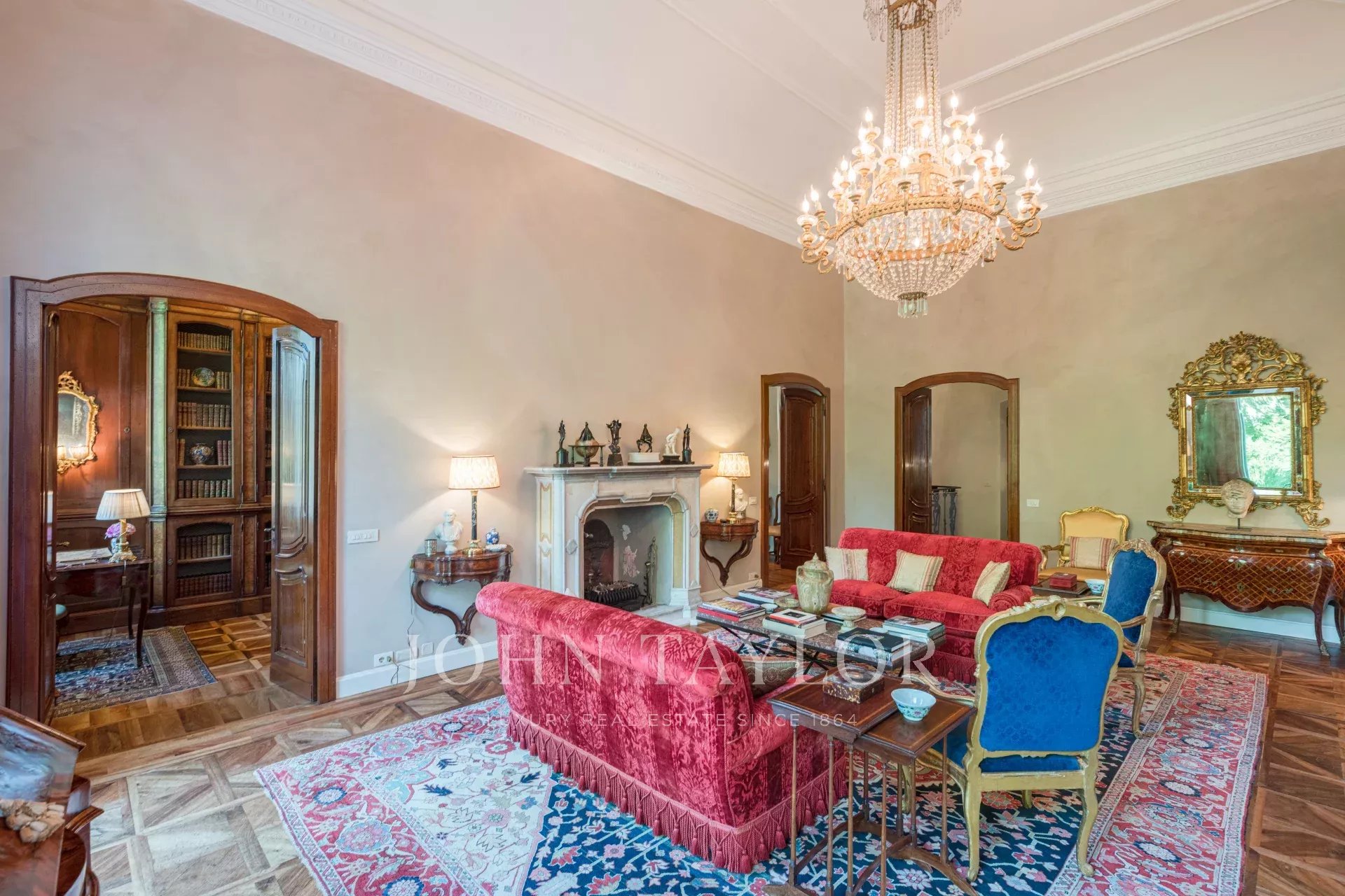 In one of the most exclusive contexts of the city, inside an elegant 1930 period building with full-time concierge service, we offer for sale a unique residence of approx. 500 sqm, arranged on two levels, with internal elevator. The main floor welcomes with a large representative living room with fireplace, a study with antique library, a refined dining room in the large hallway, a TV room with fireplace, and a guest bathroom. The sleeping area includes a master suite with private bathroom and walk-in closet, two further double bedrooms with en-suite bathrooms and walk-in closets, as well as a single bedroom with dedicated bathroom. The mezzanine floor hosts the service area, consisting of laundry, wardrobe, and service room with bathroom. On the ground floor develops the large eat-in kitchen with direct access to the private garden, the garage, and a spacious cellar/pantry. The property is completed by a single garage with the possibility of parking a second car in front. A prestigious residence, perfect for those seeking large spaces, period charm, and a position of absolute value, in the heart of Milan and facing the Indro Montanelli Gardens.
