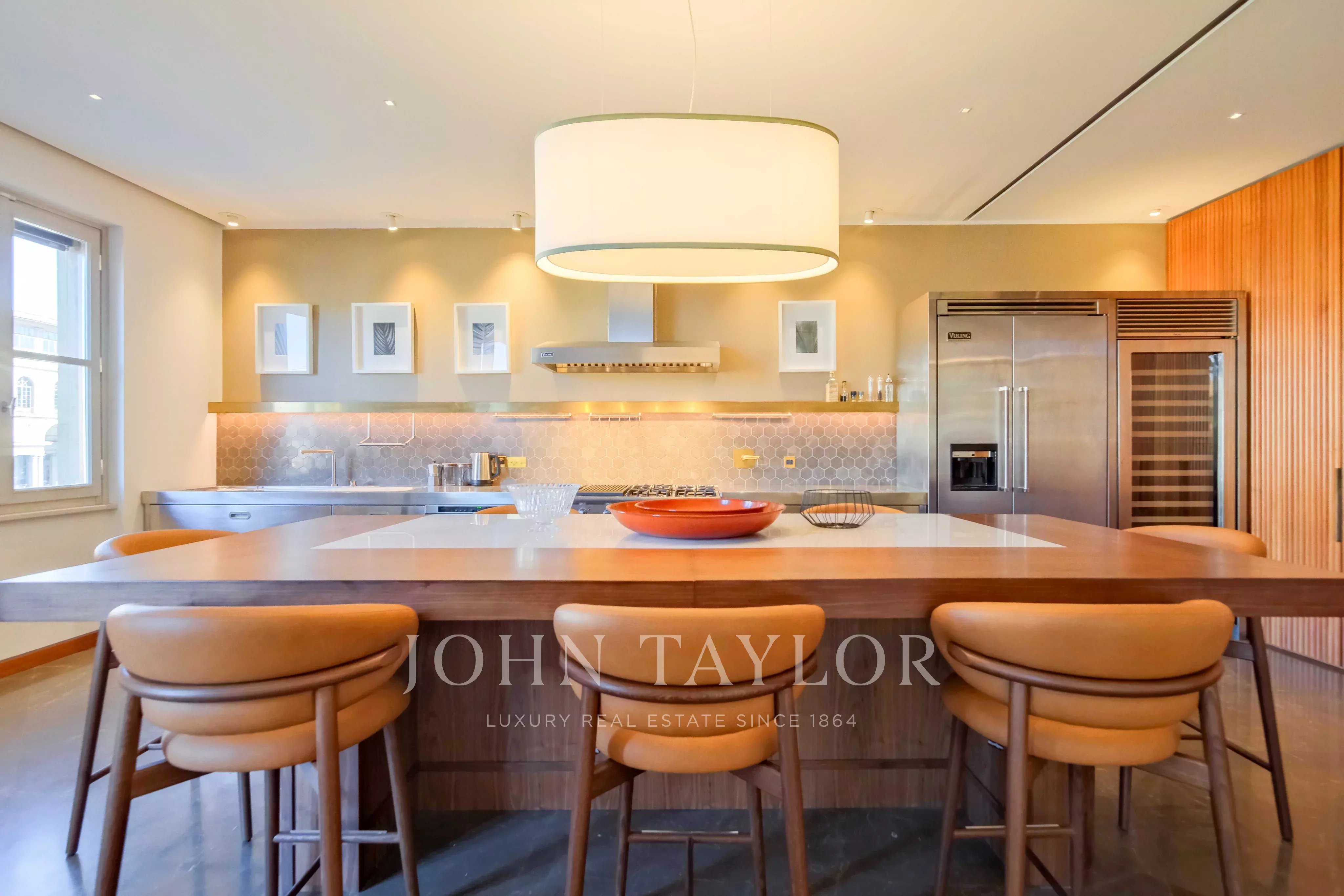 Un’esclusiva residenza italiana di rara eleganza, che si estende su circa 200 metri quadrati ed è impreziosita da una magnifica terrazza con vista sul Ponte Vecchio e sull’Arno.