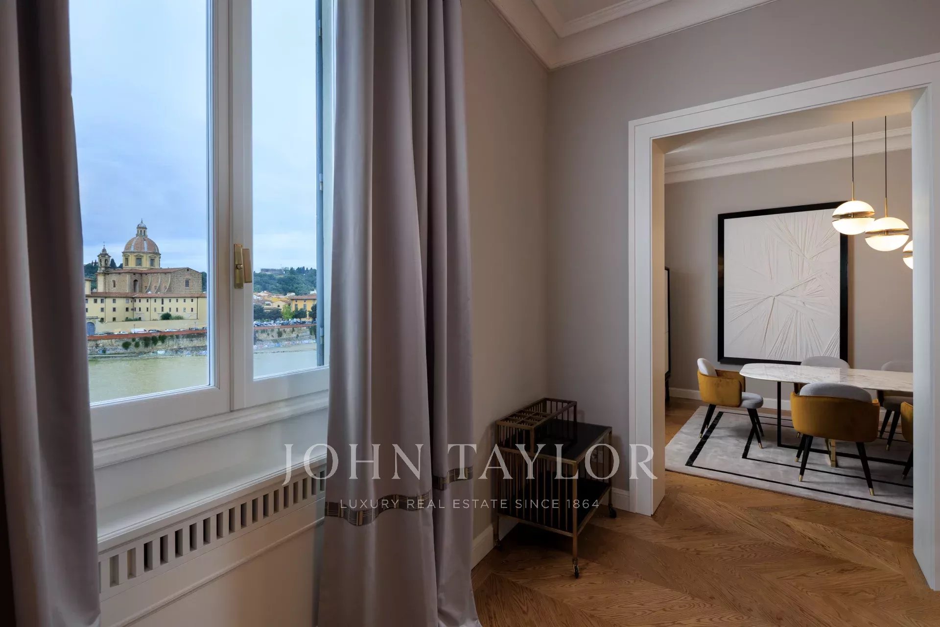 Questo elegante appartamento, situato sulla riva dell'Arno a Firenze, offre una vista panoramica mozzafiato sul fiume e sui monumenti storici. L'appartamento dispone di 4 camere da letto finemente arredate, ciascuna con il proprio bagno privato in marmo, offrendo un comfort e uno stile eccezionali.