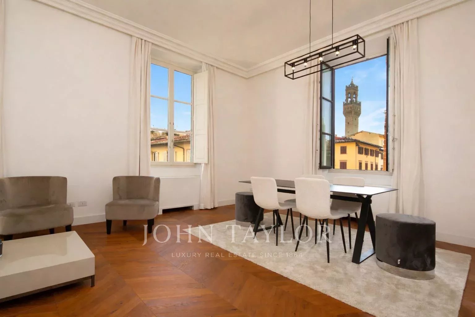 Immerso nel cuore di Firenze, tra Piazza della Signoria e Piazza del Duomo, questo prestigioso appartamento si trova al terzo piano di un edificio storico.
