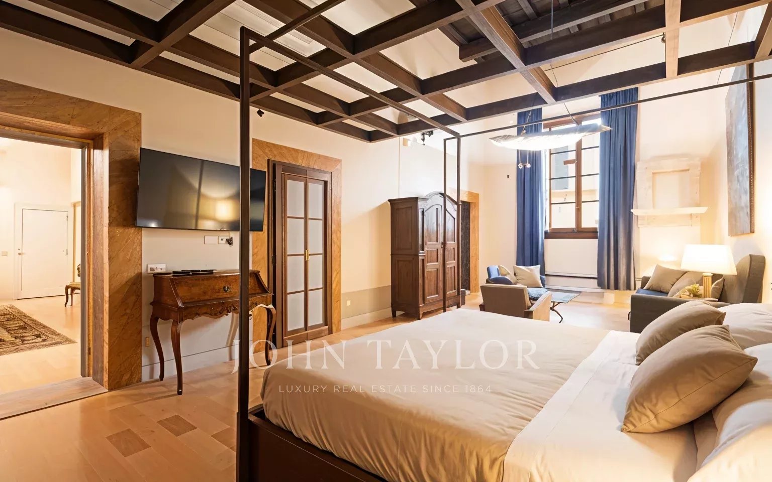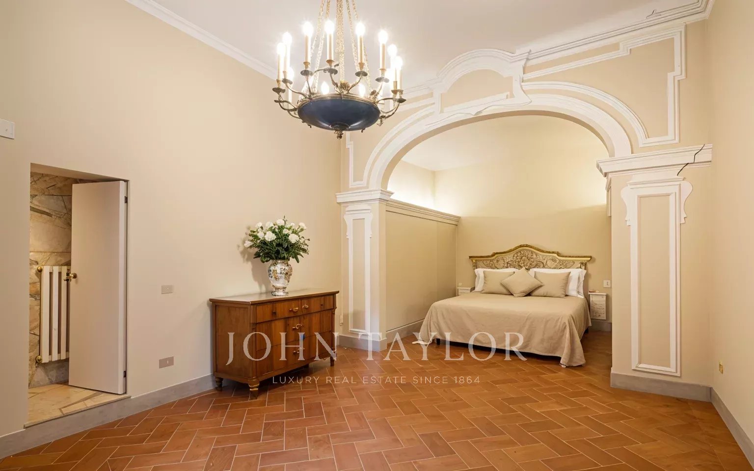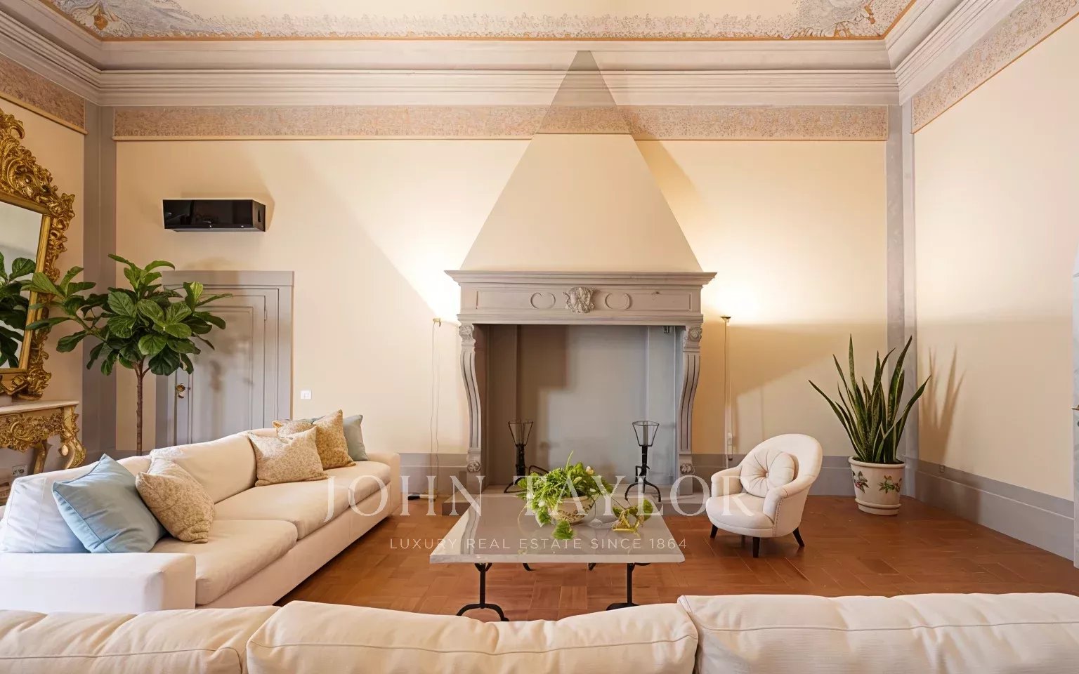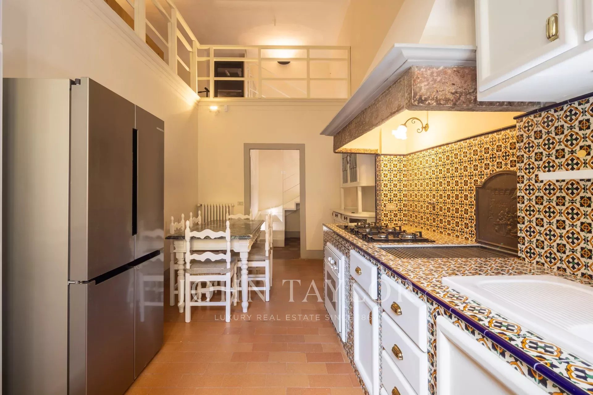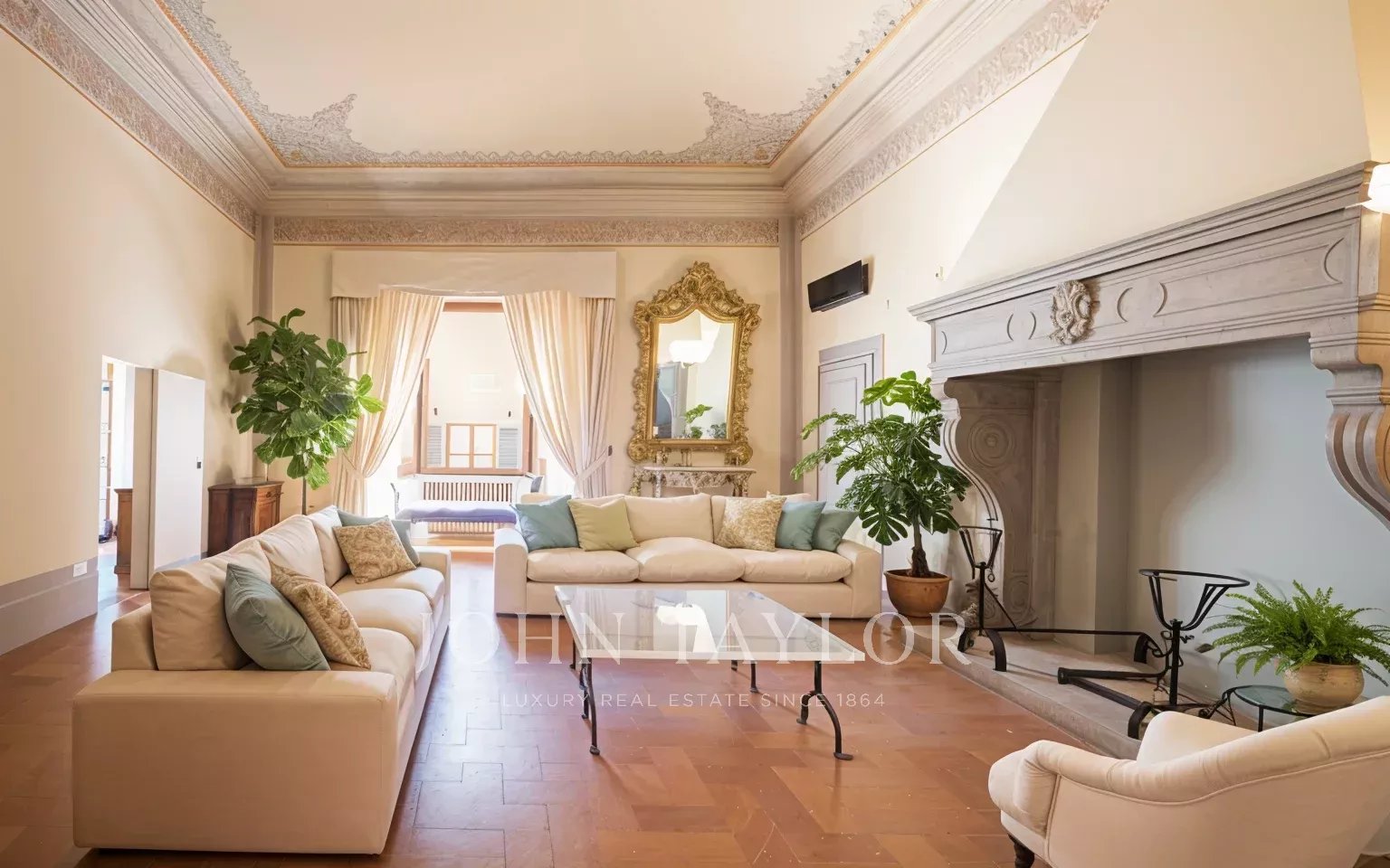 L’appartamento, parzialmente arredato, è interamente climatizzato, ed è composto da un ampio ingresso di rappresentanza da cui si accede ad un ampio soggiorno con antico camino e affacci su una curata corte, la sala da pranzo ha ampie finestre con affacci su Via Santo Spirito.