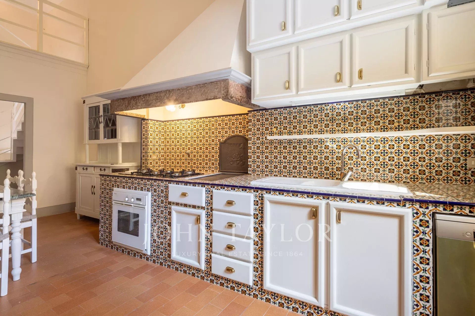 Dall’ampia cucina in muratura si accede alla terrazza coperta con affacci sul verde.