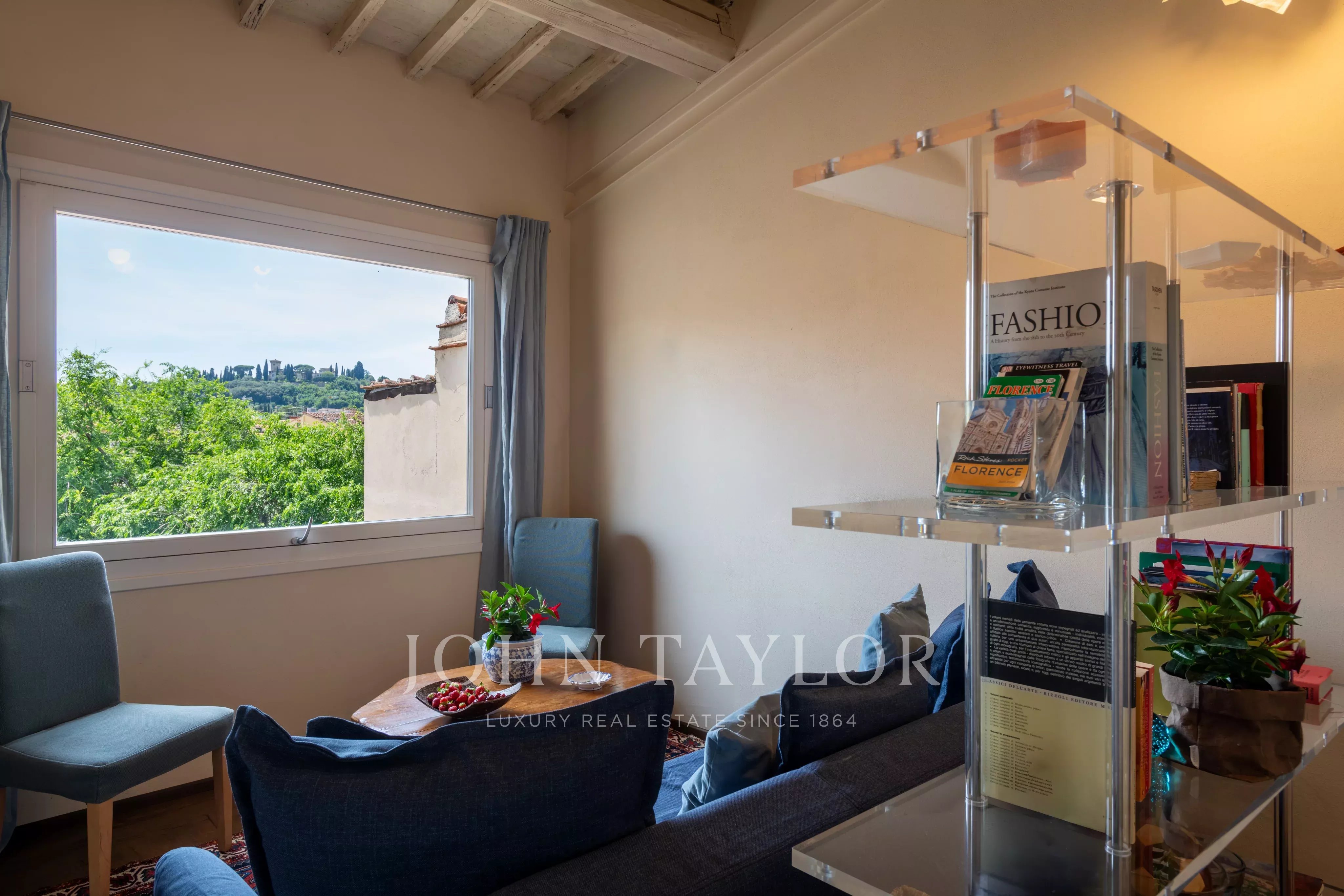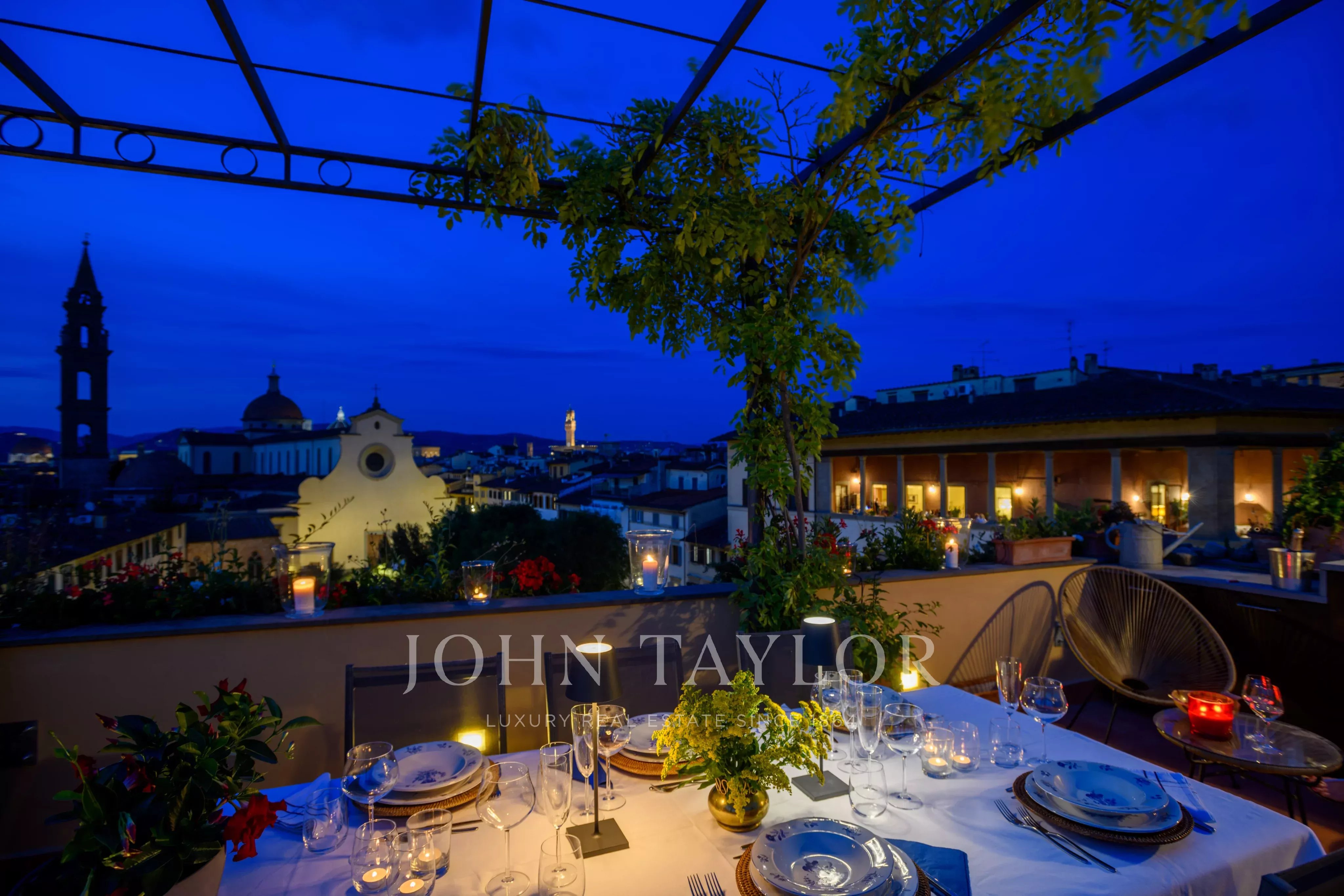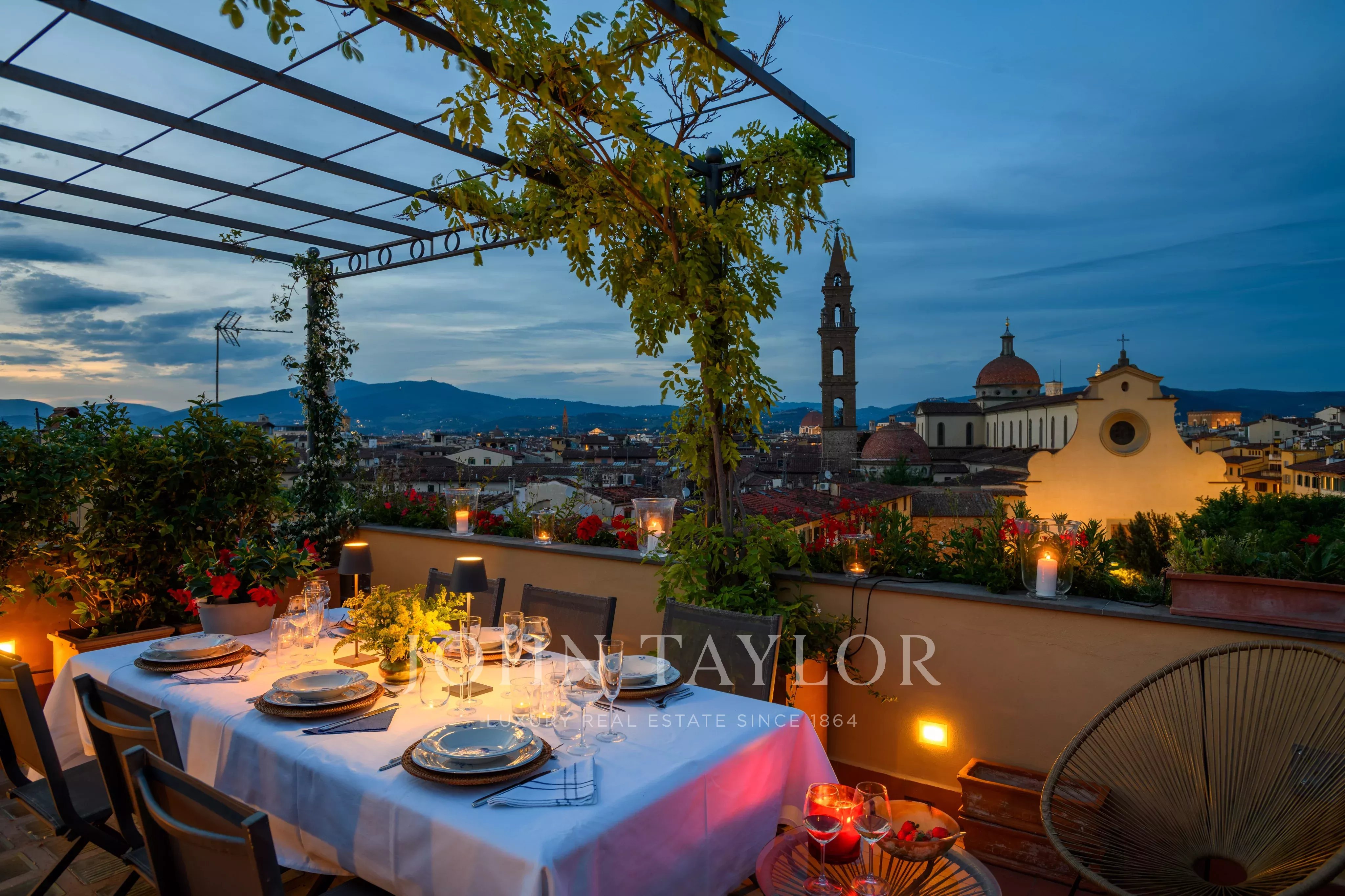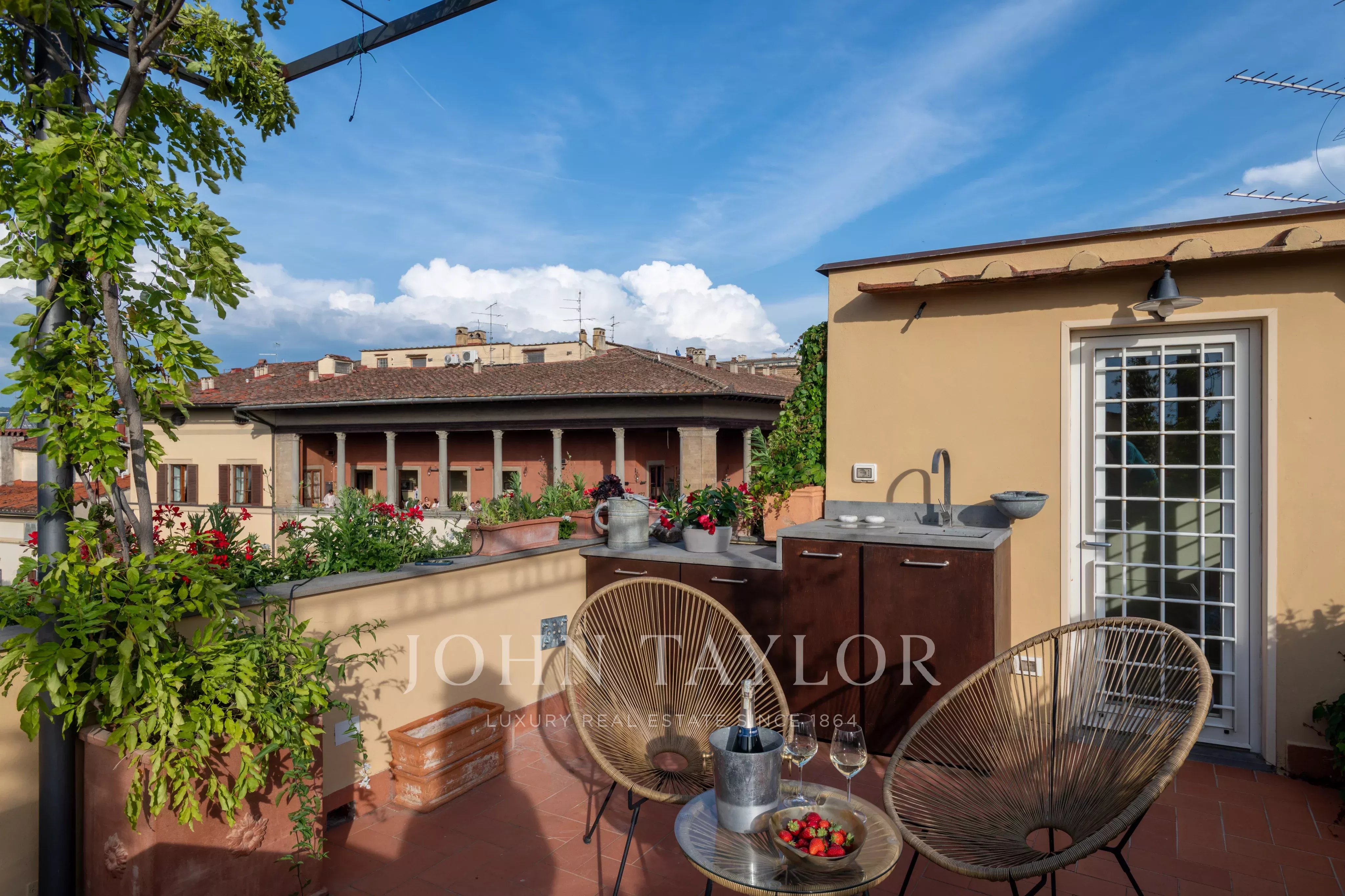 Completa l’appartamento da una splendida terrazza panoramica di circa 20 mq, elegantemente arredata ed arricchita da piante ornamentali, con vista a 360° sui tetti e sullo Skyline storico di Firenze. Uno spazio esclusivo, riservato e di grande charme, ideale per vivere momenti di relax in un contesto di rara bellezza.