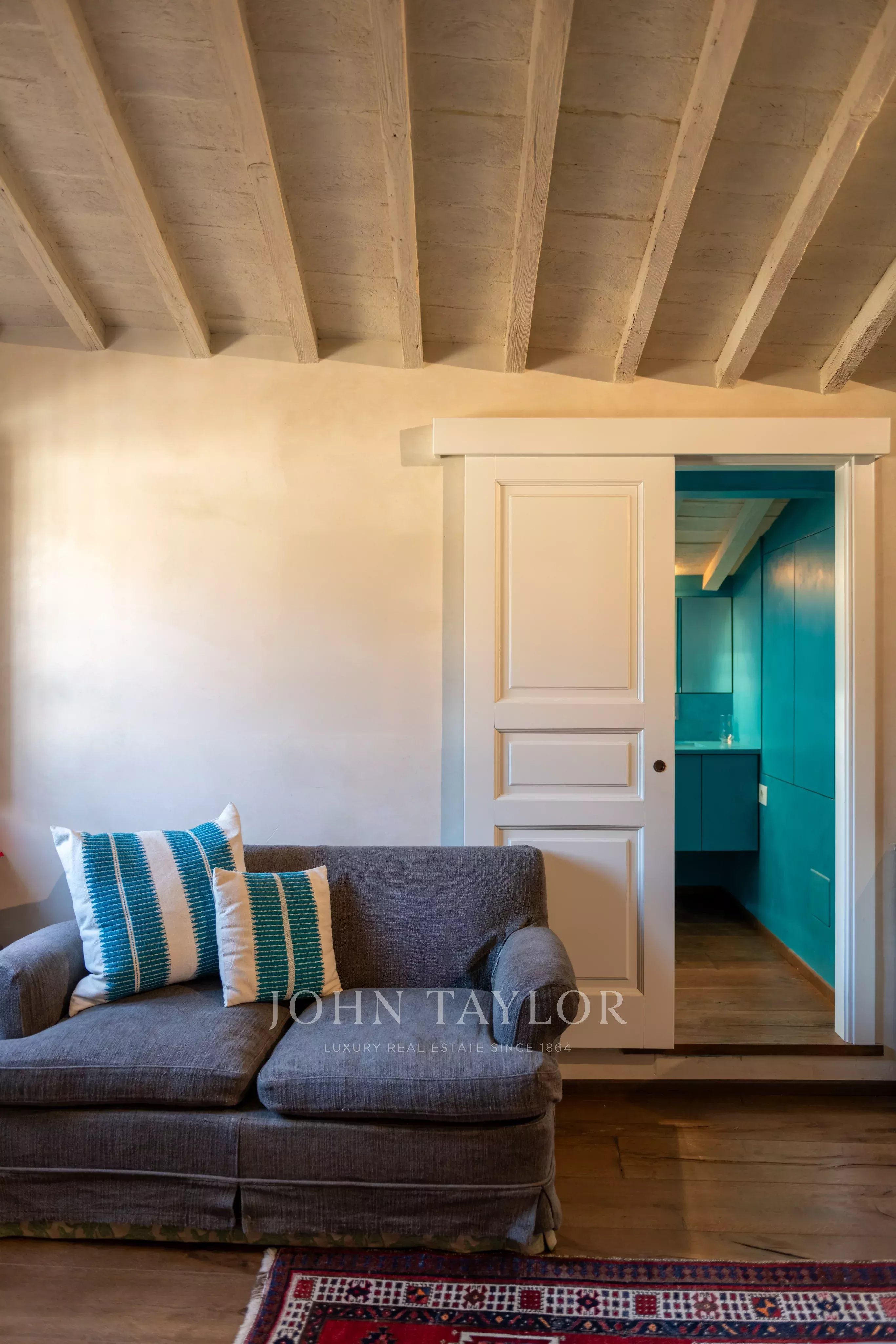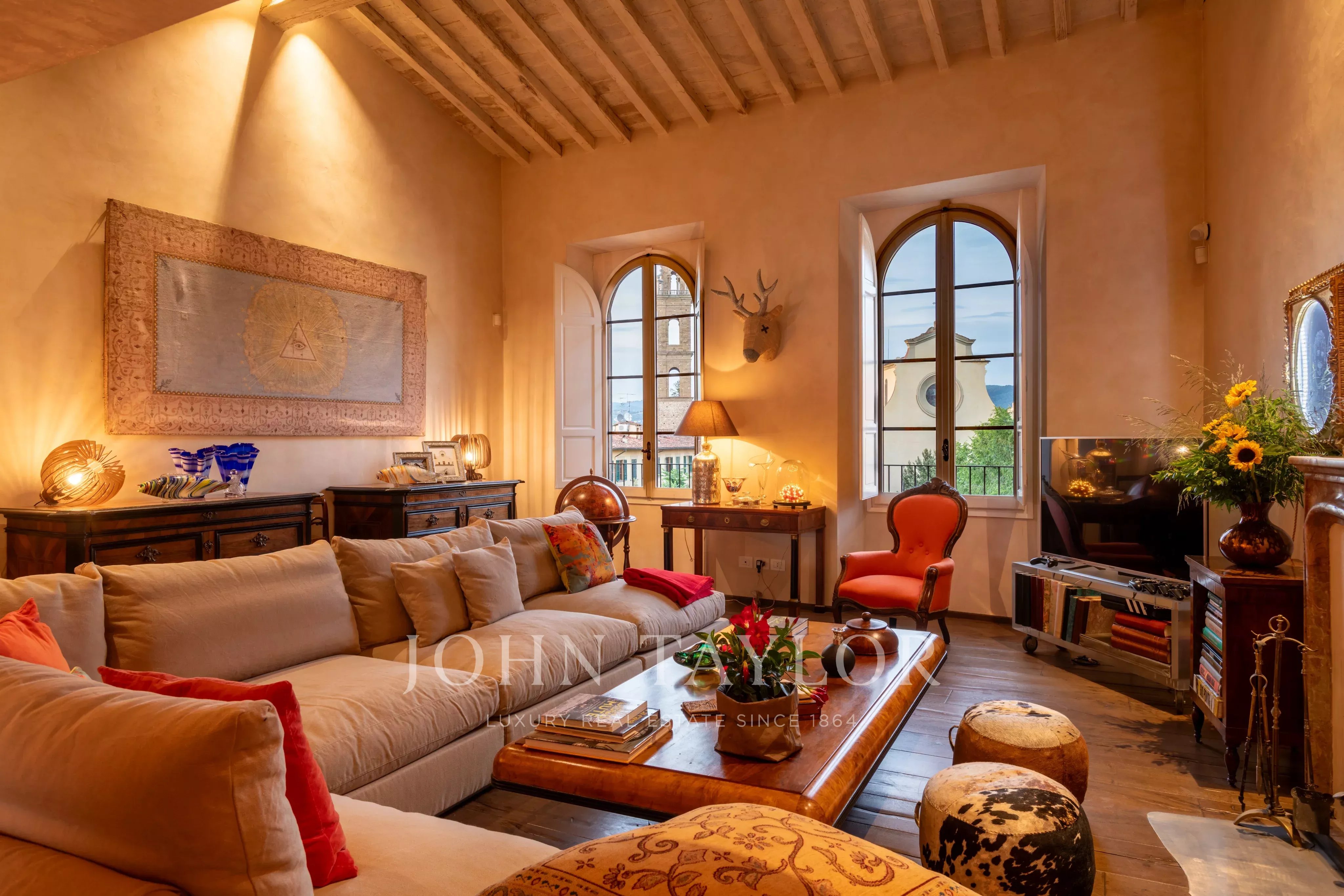 Al terzo piano di un edificio storico del Trecento, servito da ascensore a partire dal primo piano, proponiamo in locazione un appartamento esclusivo, recentemente ristrutturato da un noto architetto fiorentino. La proprietà coniuga armoniosamente bellezza architettonica, funzionalità e carattere contemporaneo, offrendo suggestive vedute sui tetti della città e sulla Basilica.