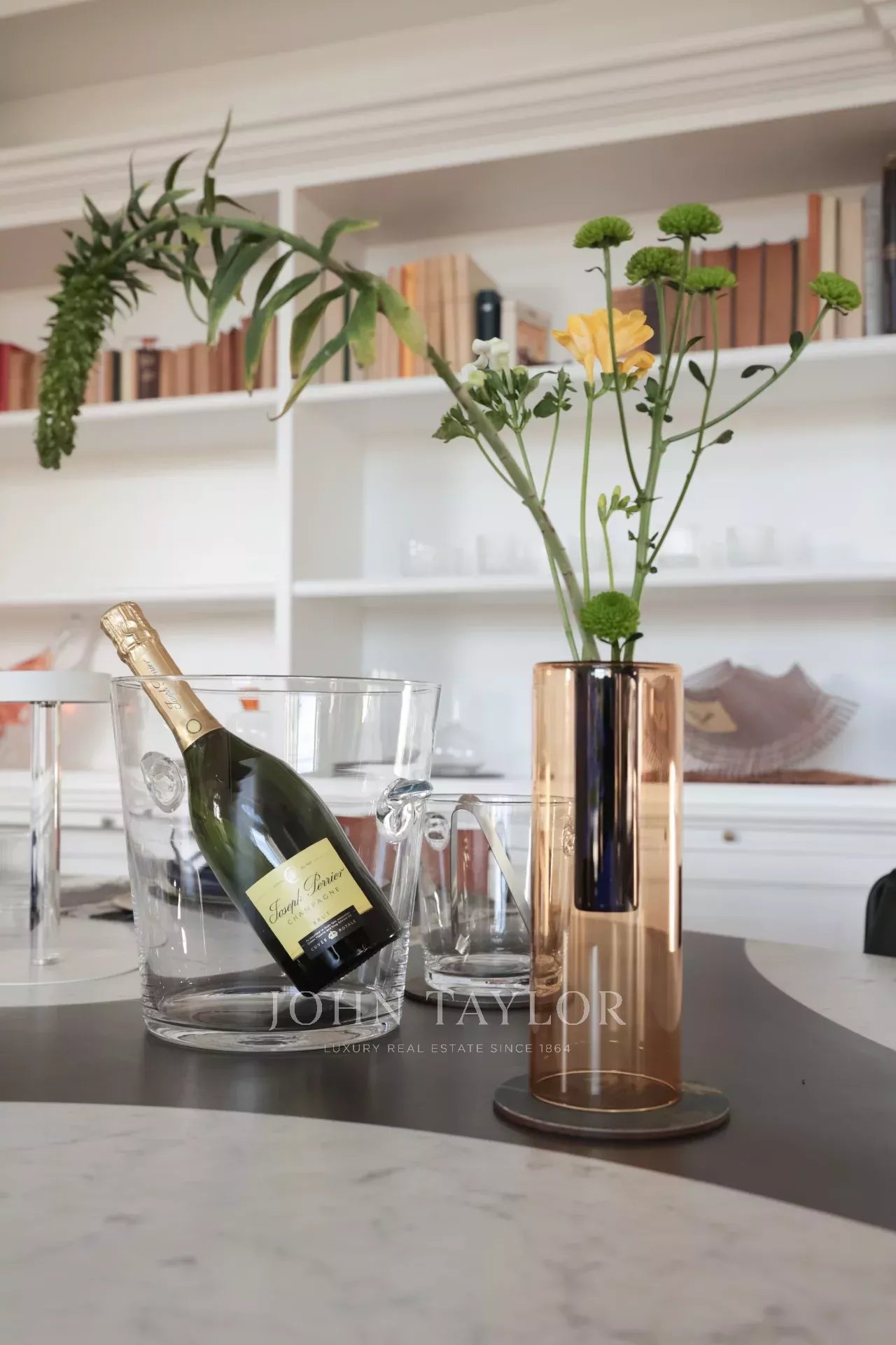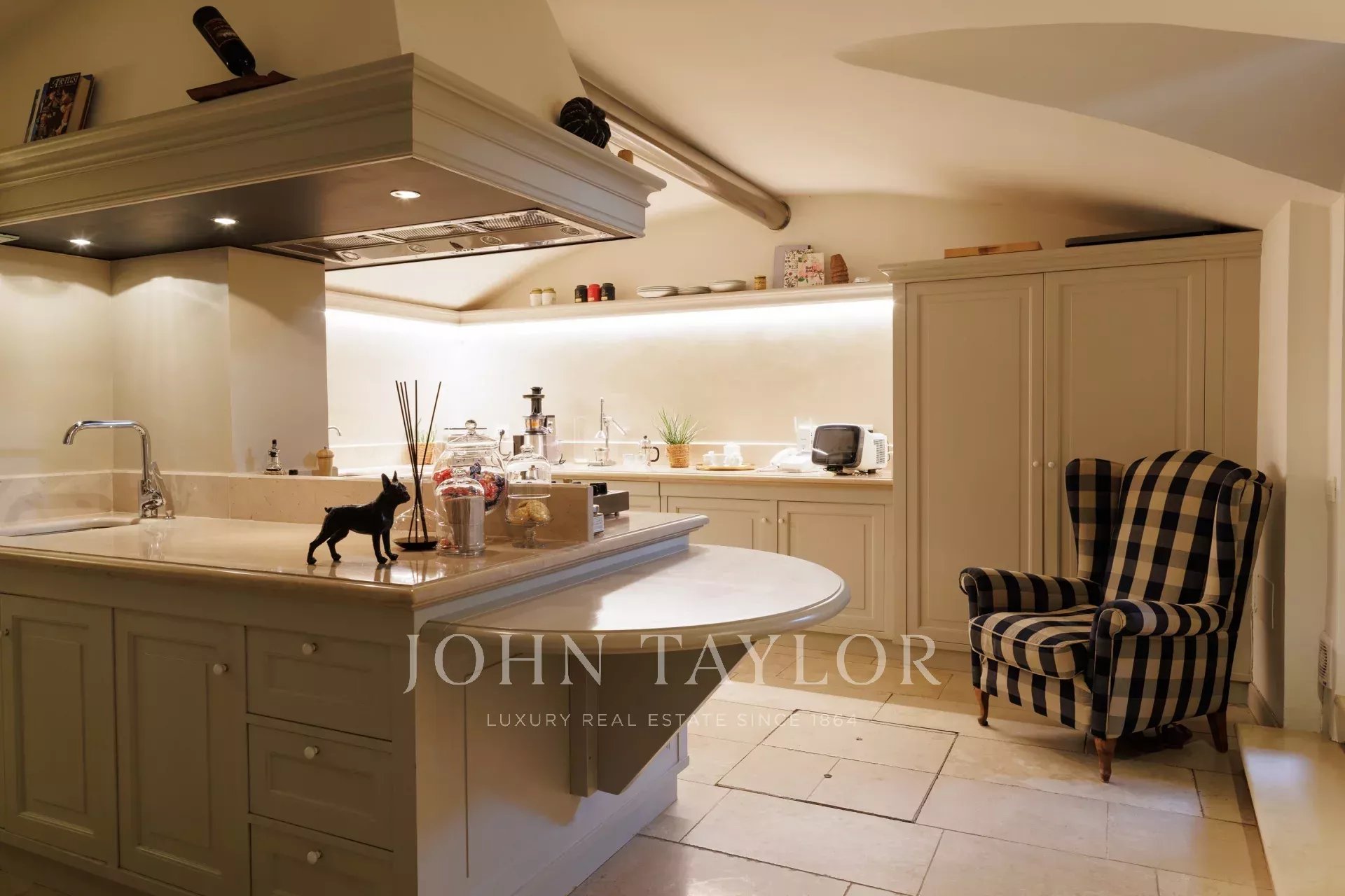 L'interno della villa combina eleganza classica con comfort moderni. Le grandi finestre consentono una luminosità naturale che esalta ogni dettaglio architettonico della casa. La cucina è attrezzata con elettrodomestici d'alta gamma, rendendo ogni pasto un piacere. Nei mesi più freddi, il caminetto del soggiorno crea un'atmosfera accogliente e calda.