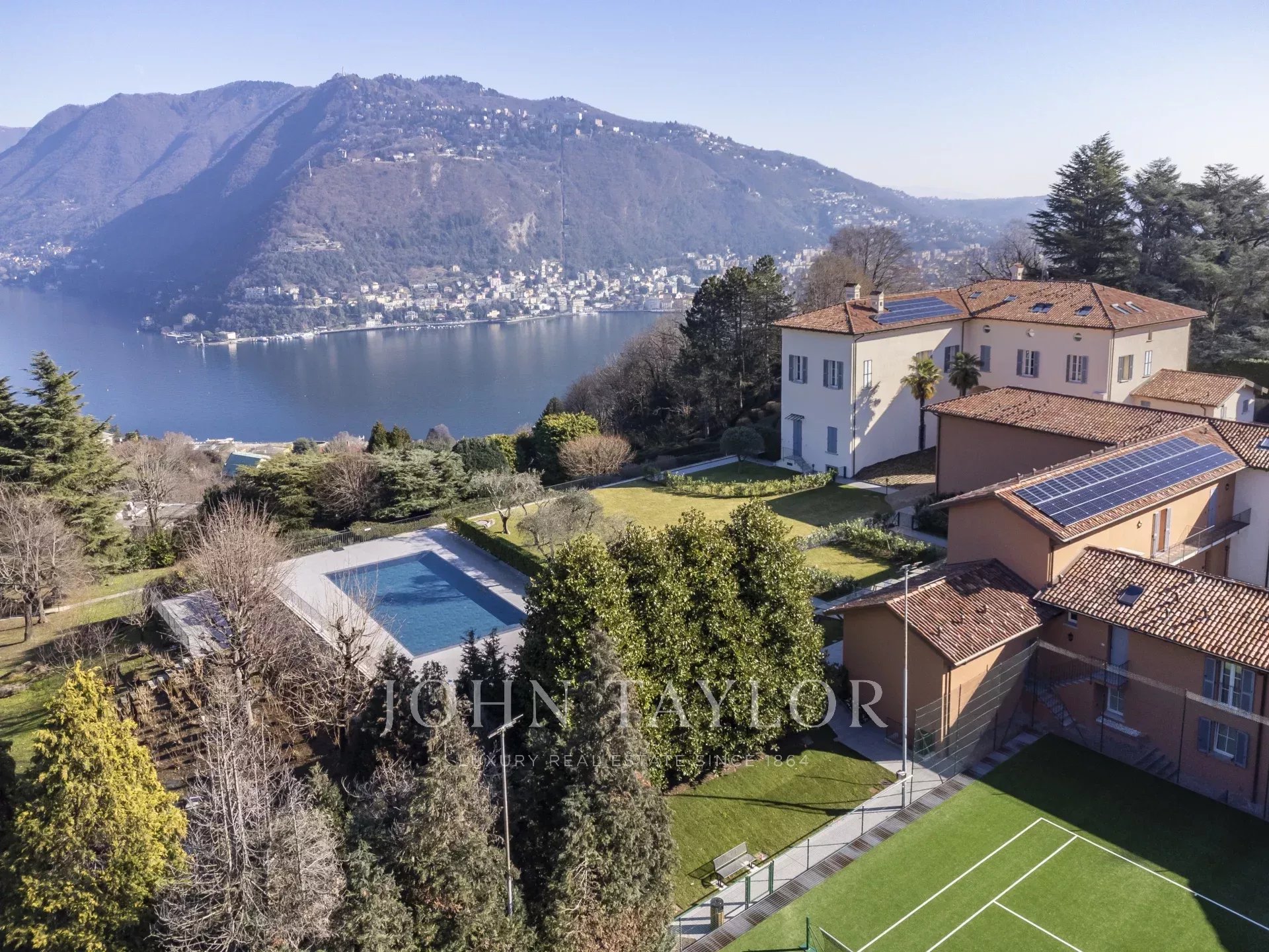 New Panoramic Area in an elegant complex resulting from a refined restoration of a historic residence immersed in greenery, with swimming pool and tennis court, just a short distance from the historic center. Splendid lake view. Dwelling of approx. 100 sqm with independent entrance, composed of: large living room with kitchen area, double bedroom, and bathroom. The property is completed by a well-kept, planted and furnished private garden, cellar, and exclusive parking space. Equipped with every comfort and cutting-edge technology. Class A.