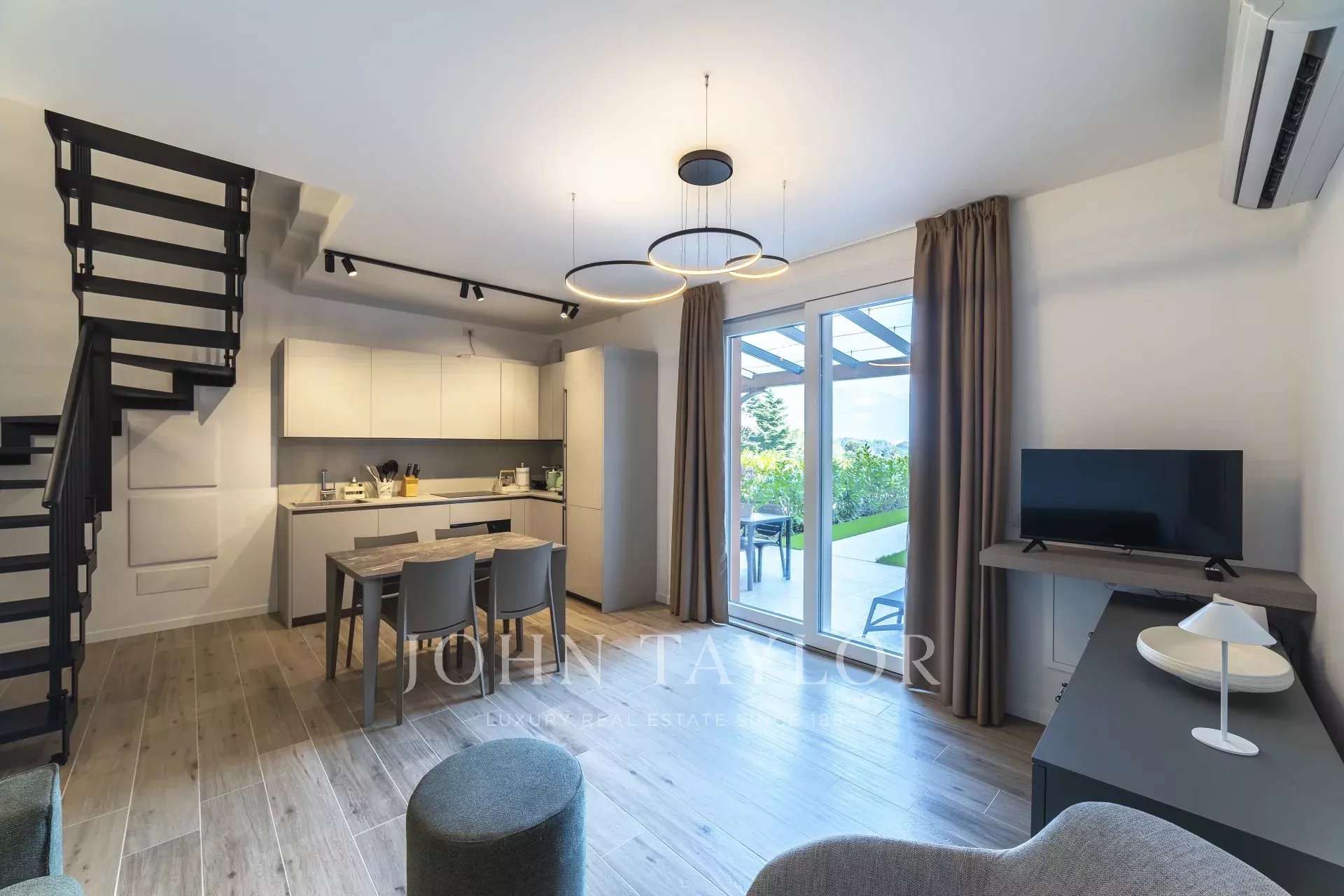 Zona Panoramica Libera Nuova in elegante complesso frutto di un raffinato recupero di una storica dimora immersa nel verde con piscina e campo da tennis a due passi dal centro storico, splendida vista lago abitazione di mq 100 ca con ingresso indipendente, composta da: ampio soggiorno con zona cucina, camera matrimoniale e bagno. Completano la proprietà un curato giardino privato piantumato e arredato, cantina e posto auto esclusivi. Dotata di ogni comfort e tecnologie all’avanguardia. Classe A.
