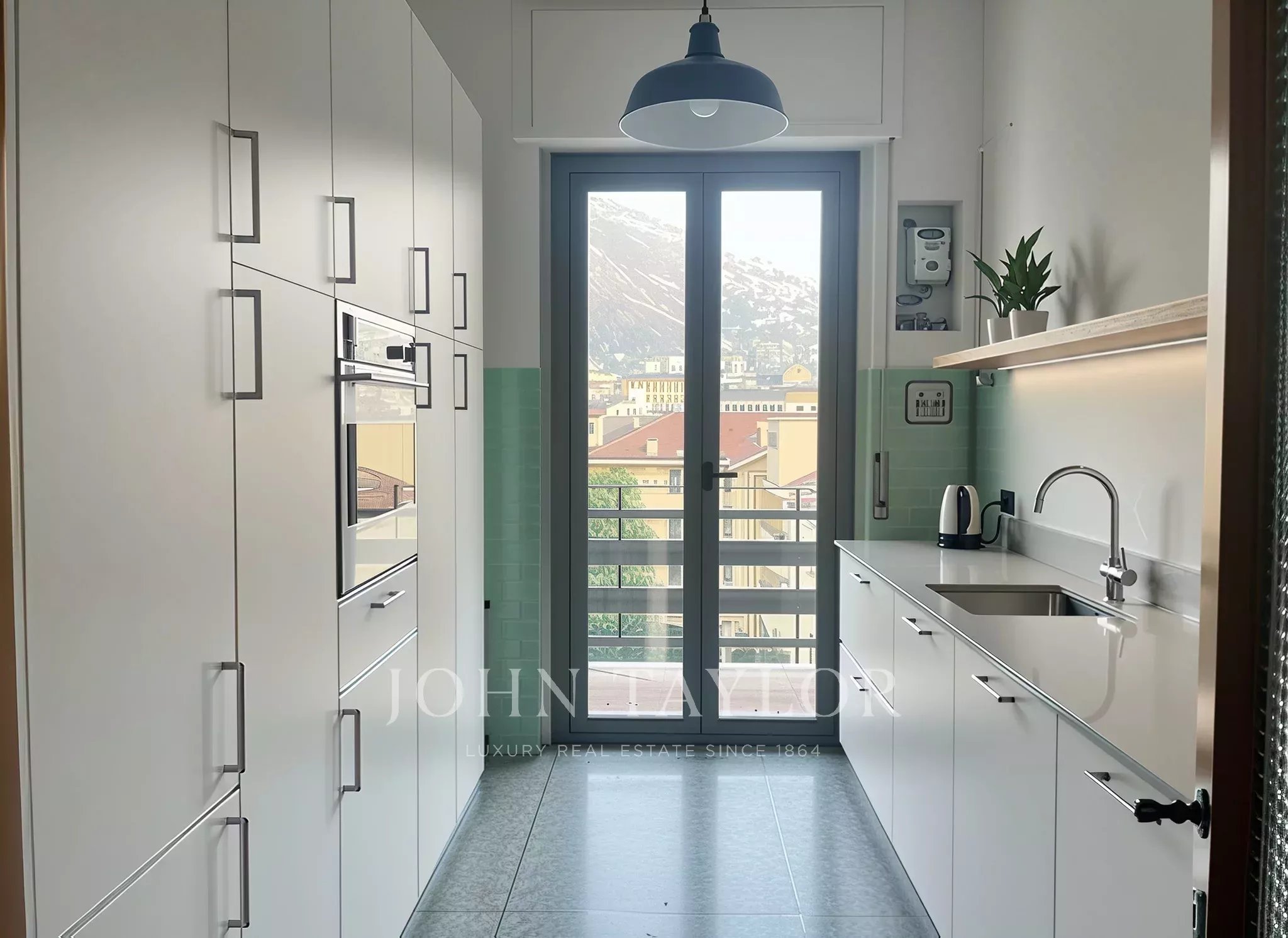 Just a few steps from the enchanting Lake Como, an elegant, bright and quiet apartment of approximately 145 sqm. located on the top floor, with exclusive, panoramic lake views from every room. The apartment comprises a spacious entrance hall, a large living room with dining area, three double bedrooms, and two bathrooms. €745,000.00. The property also includes the option of a garage with separate costs.