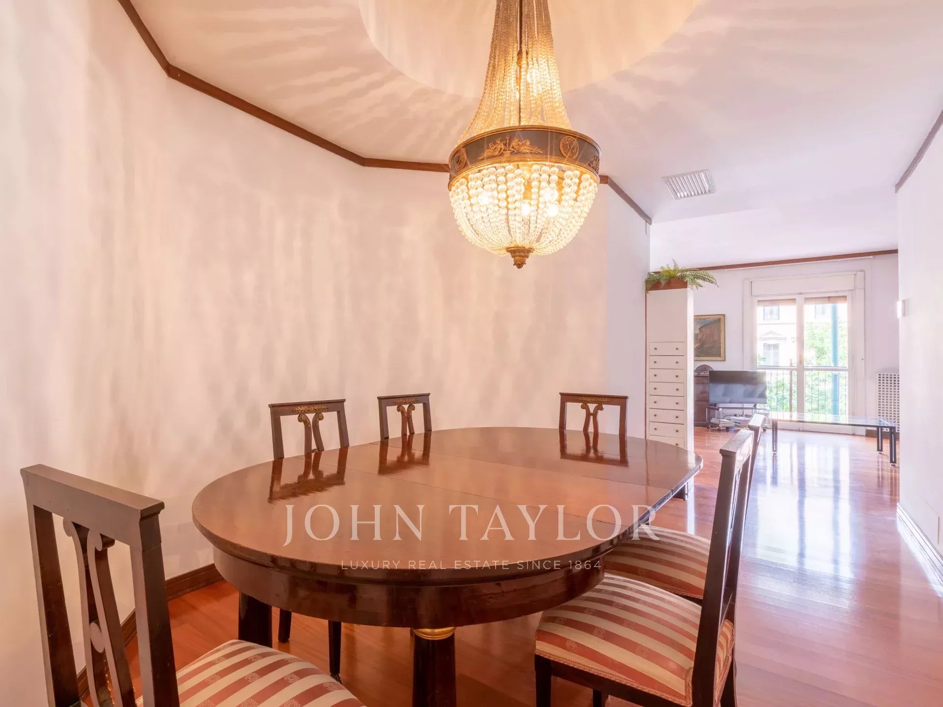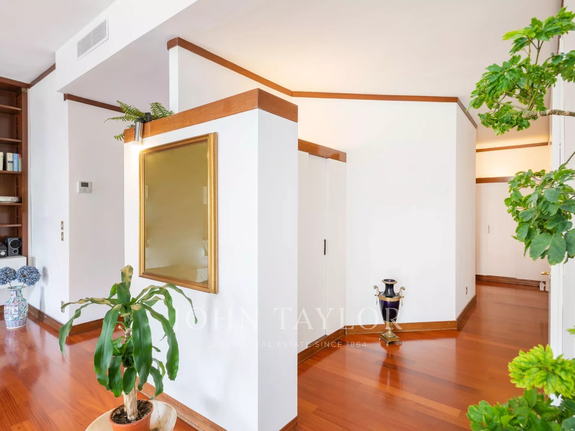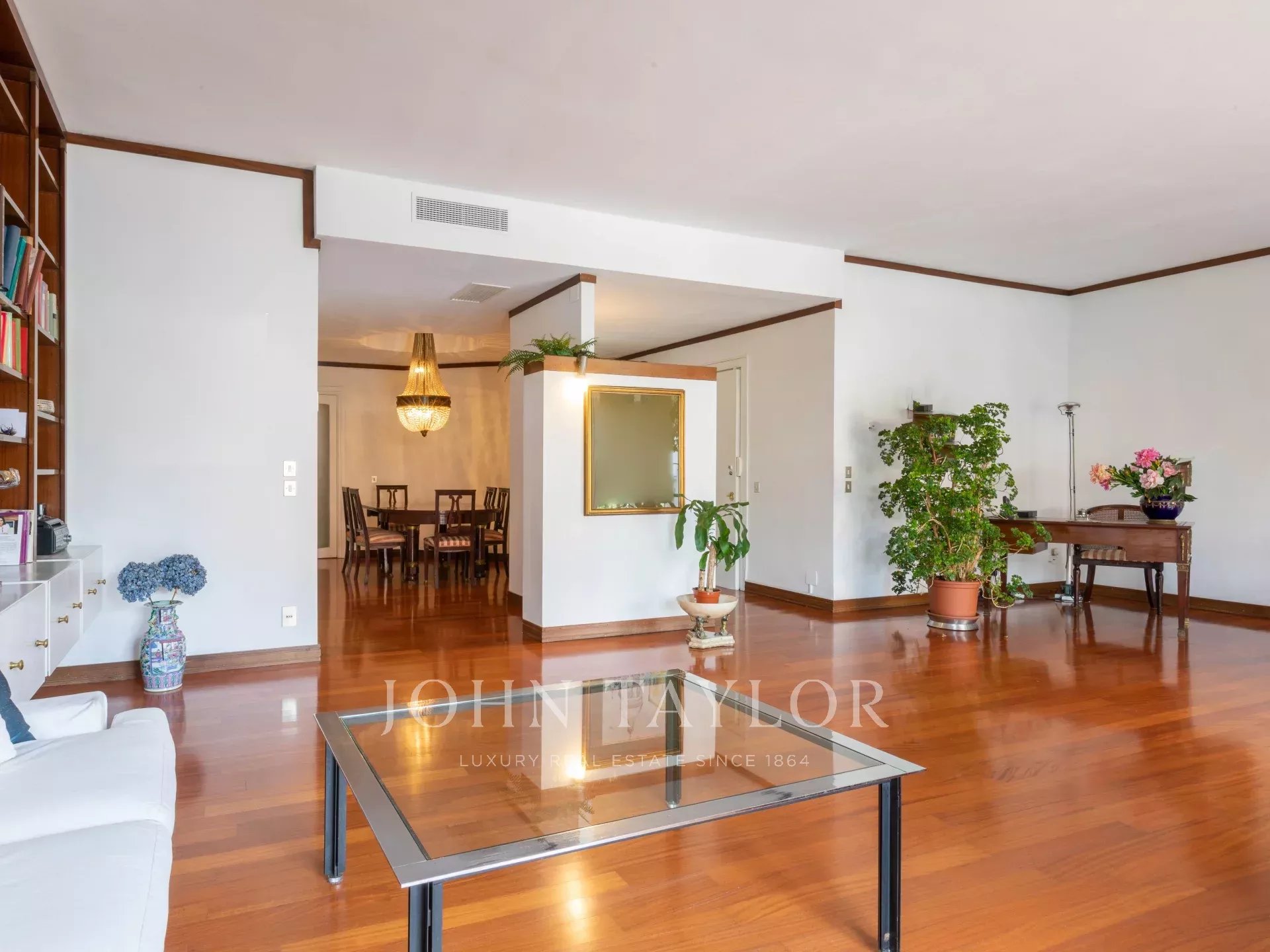 In an elegant context with concierge service, quiet and very bright apartment of approx. 230 sqm. composed of: entrance hall, quadruple living room with balconies and large windows, dining room, kitchen with balcony, five bedrooms, three bathrooms, large cellar.. The property includes the possibility of a parking space in the building. Energy class F.