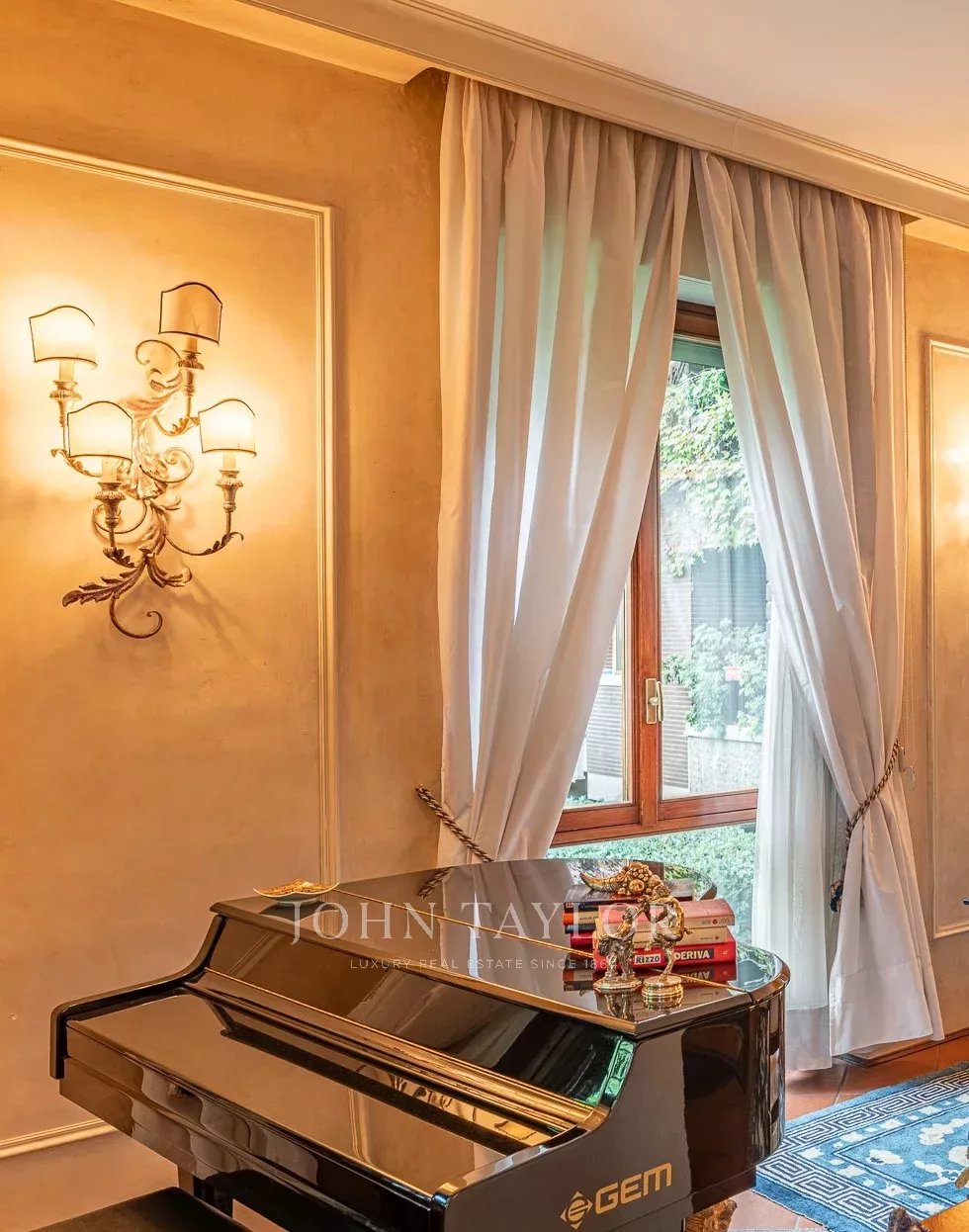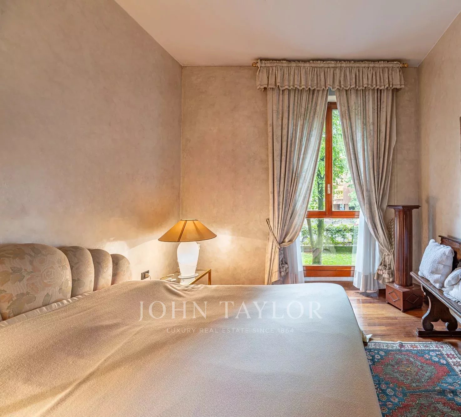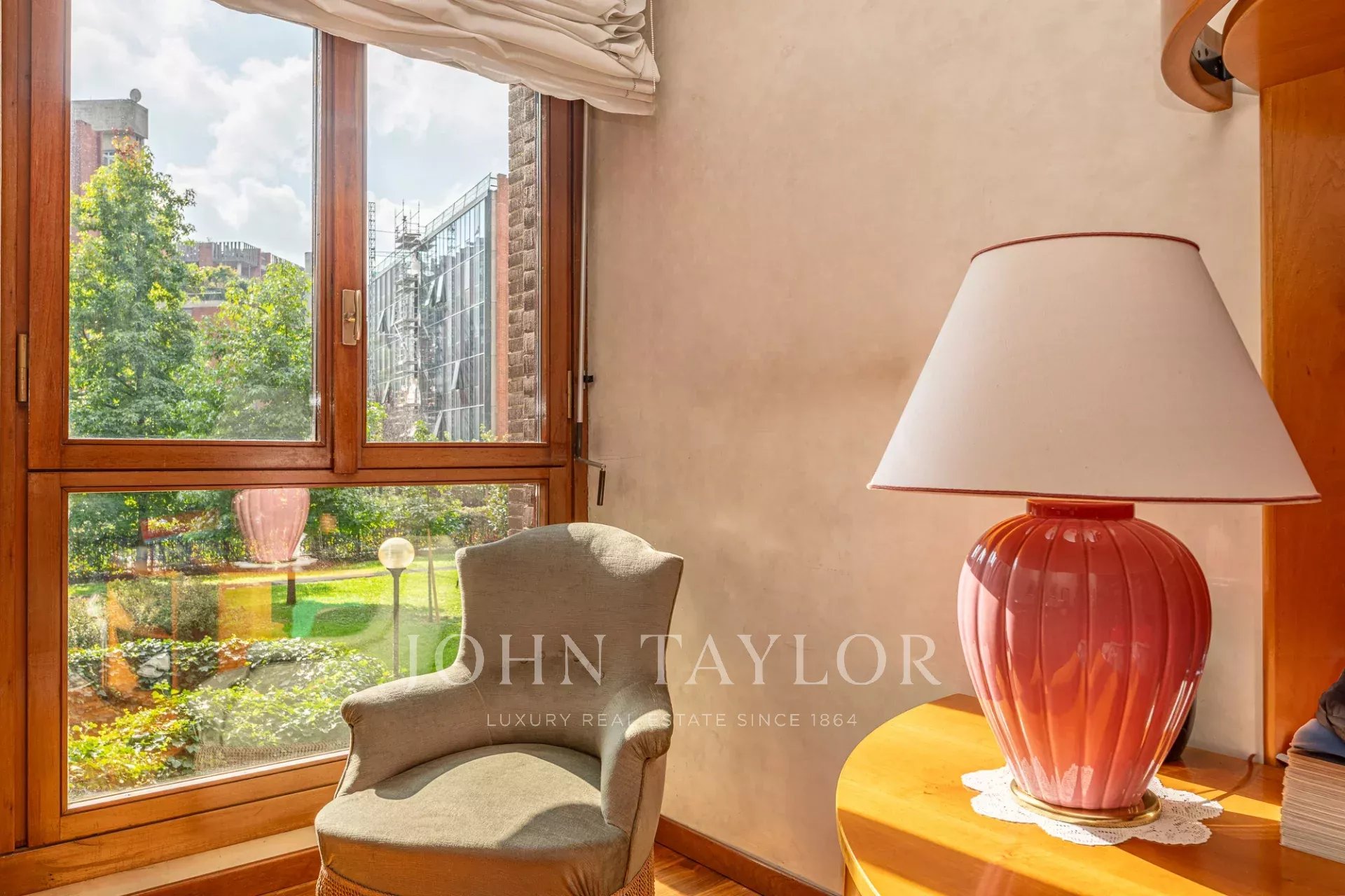Elegant building from the 70s with all day concierge, wonderful condominium park, splendid 165 sqm apartment with terrace overlooking the garden consisting of entrance hall, large living room with dining area, eat-in kitchen with balcony, bathroom, 3 bedrooms and two bathrooms. Cellar. Possibility of garage. Quiet and bright. Class G