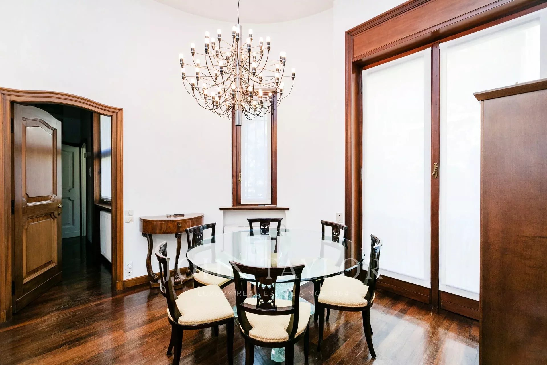 Nostra Esclusiva-Libera, in posizione molto riservata, esclusiva elegante Villa indipendente molto luminosa e silenziosa di grandissimo charme e pregio architettonico, mq. 500 c.a. ottimamente disposta, ascensore interno, preziosi interni originali con alti soffitti, dotata di grandi terrazze e ampio giardino interno, dependance e tre ampi box. Classe G.