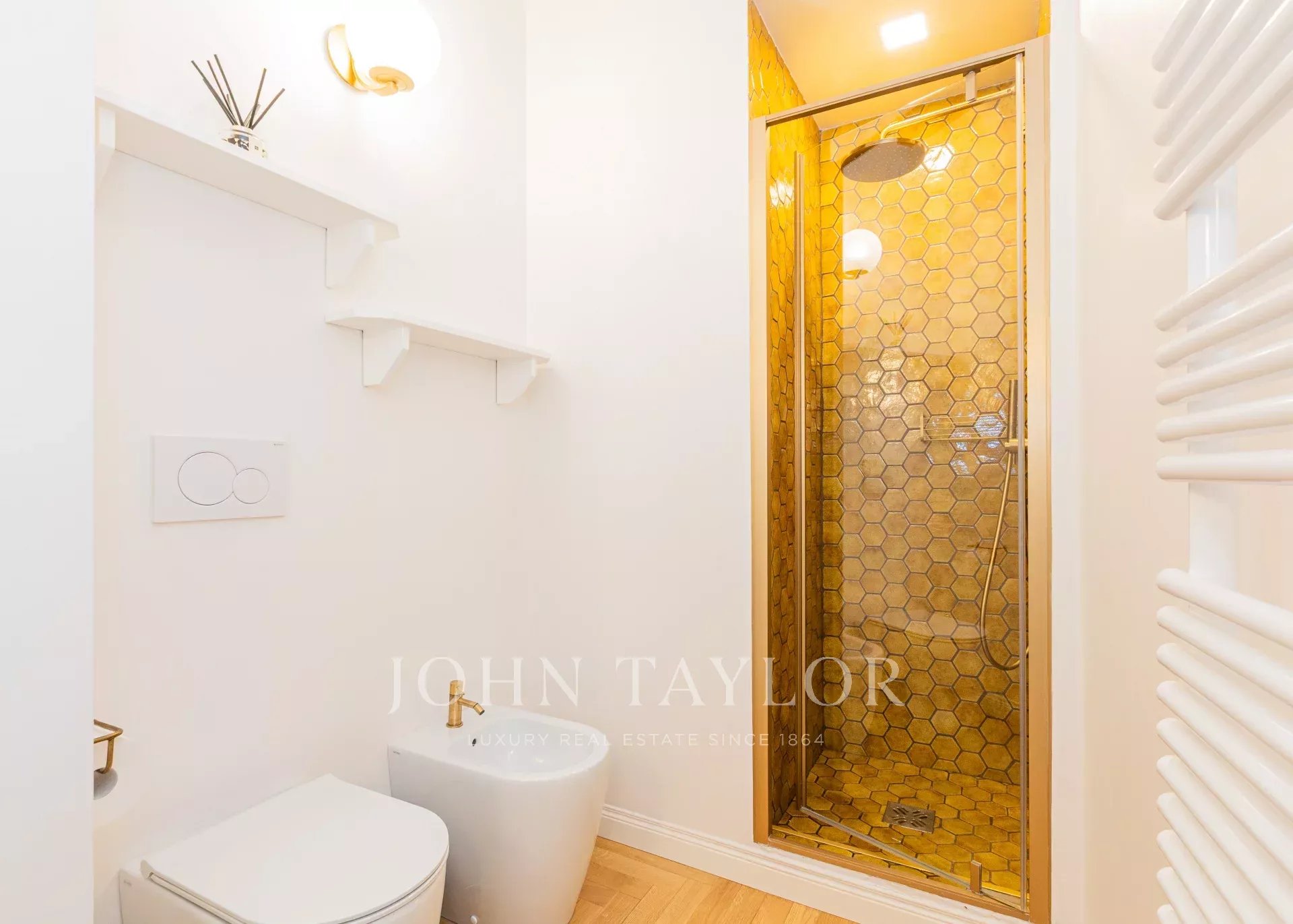 EXCLUSIVE PROPERTY WITH ENCHANTING TERRACE in an elegant prestigious context, splendid apartment. Milanese style apartment full of charm with habitable furnished and planted terrace on a quiet internal courtyard. Very versatile environments. Characteristic apartment, 85 sqm. approx. very bright and quiet consisting of entrance hall, large living area with kitchen, overlooking the terrace, 2 double bedrooms and two splendid bathrooms. Precious period details with an excellent internal layout, to create a splendid contemporary atmosphere. Cutting-edge technical equipment and systems. Fully furnished residence with exclusive custom-made furniture, high-level finishes. € 890,000.00