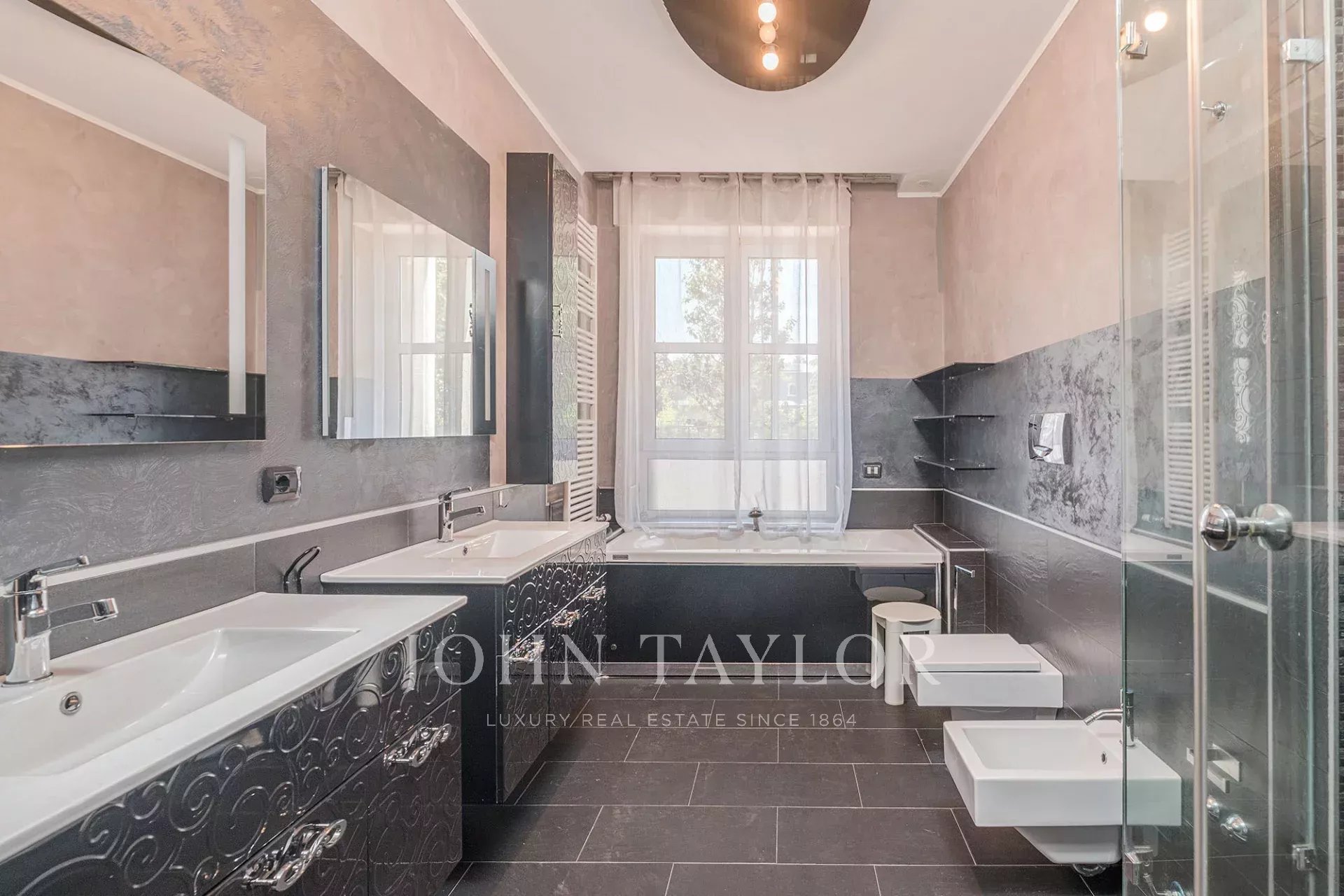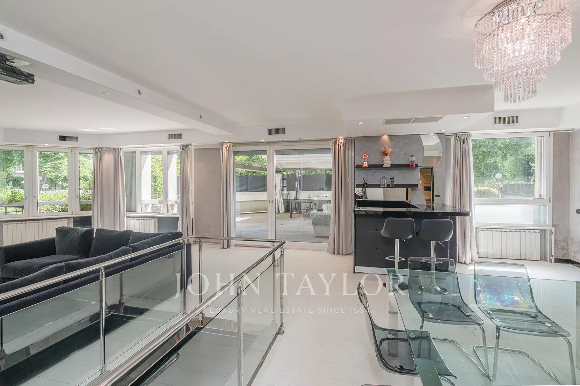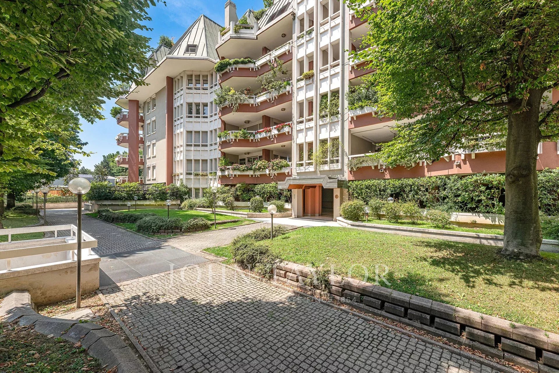 Available in the aristocratic complex on Via Fetonte, where one finds themselves immersed in lush greenery that relaxes you for the day ahead, just a short distance from the M5 underground stop, the exclusive French school Lycée Stendhal, and next to the new De Montel Spa Center – a center of excellence dedicated to wellness and relaxation, which represents an important attraction for those seeking well-being moments without leaving the city. The horse-riding arena/racetrack is reachable in a few minutes on foot, and the Equestrian Club is also just a few minutes away. Inside the San Siro racecourse, there is a golf course for the many enthusiasts who have made it a meeting point in the city both during the day and in the evening. In this exclusive setting, a prestigious residence of approx. 300 sqm with a private, landscaped and furnished garden, very bright and quiet, surrounded by greenery, located within an elegant condominium complex in perfect maintenance condition, featuring a beautiful and well-kept garden, 24-hour concierge service with guardhouse, and triple elevators, free of architectural barriers. The property is composed of: entrance onto a large triple living room with splendid glass windows and large loggia terraces, spacious eat-in kitchen, 4 large double bedrooms, 3 bathrooms, covered balconies. €1,050,000.00. Completes the property is the option to purchase a quadruple garage separately, conveniently connected via an internal elevator.