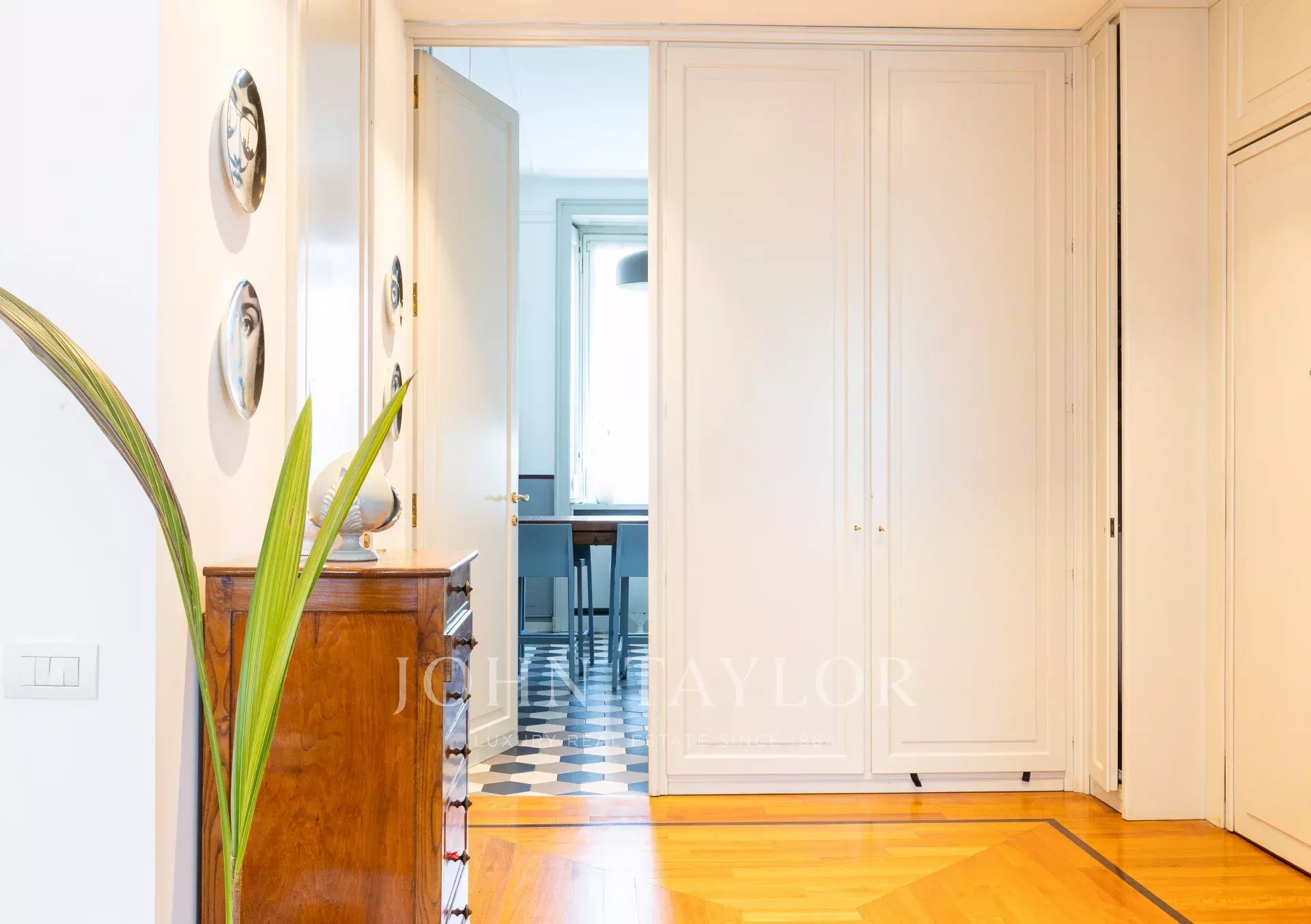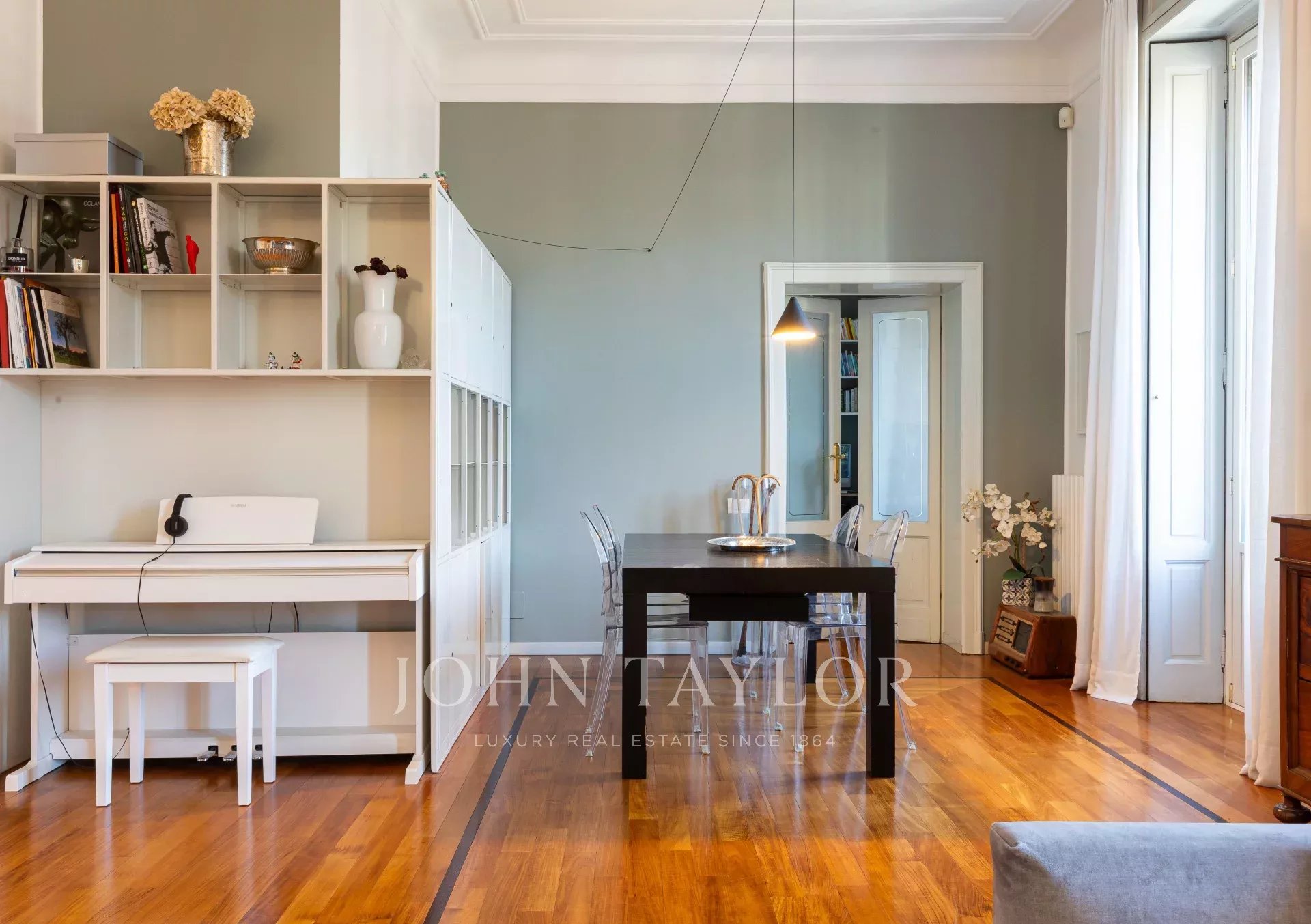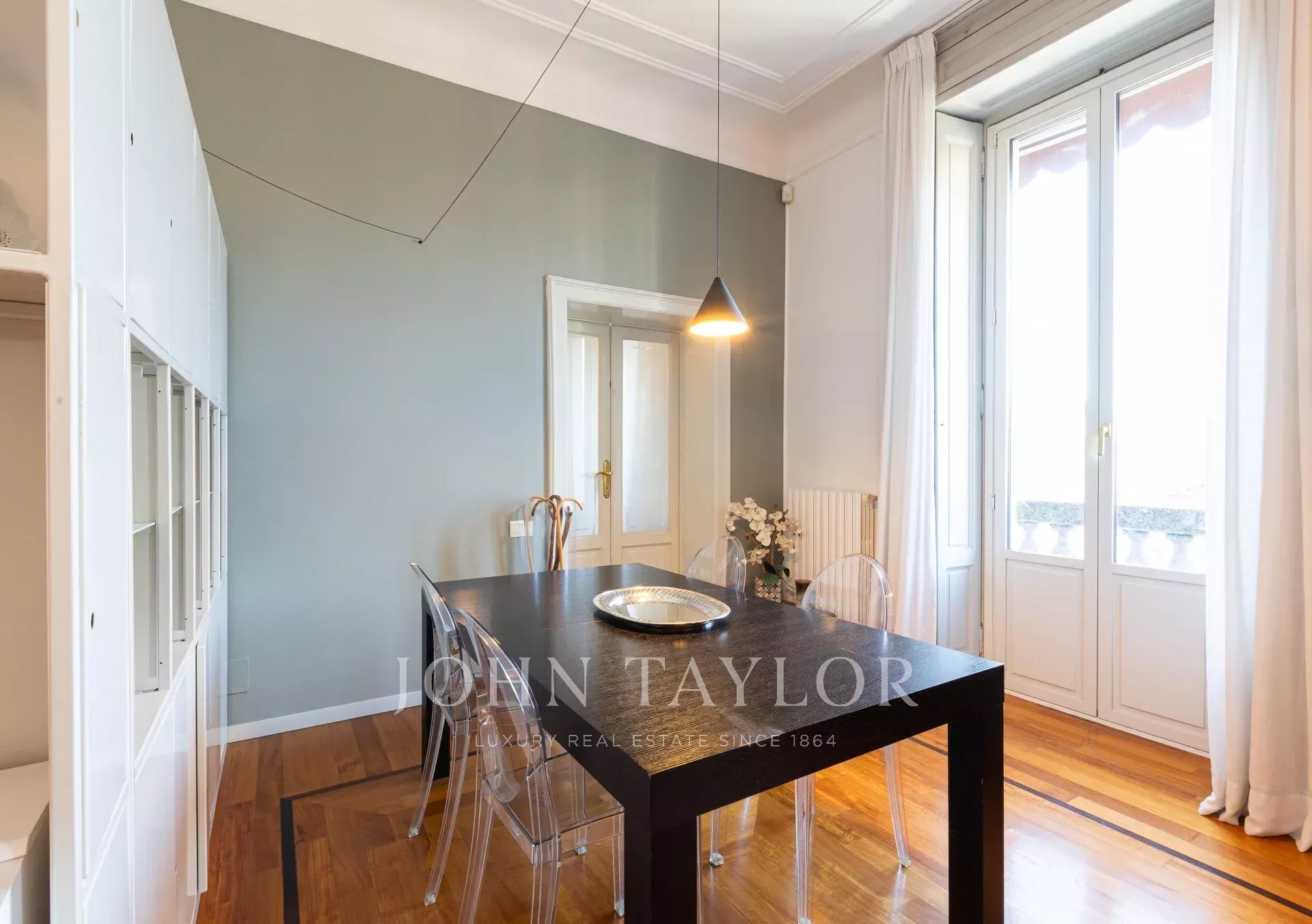 In an elegant period, context of great historical value, splendid residence of approx. 140 sqm. of great charm, very bright and quiet on the high floor level. Very elegant apartment, well laid out, consisting of large entrance hall, double living room, eat-in kitchen, two bedrooms, study, two bathrooms, walk-in closet, storage closet, large balcony. Precious period details with an excellent internal layout, to create a splendid contemporary atmosphere with the recovery of historical finishes. High stuccoed ceilings. Cellar. € 1,200,000.00. Possibility of garage with separate cost.