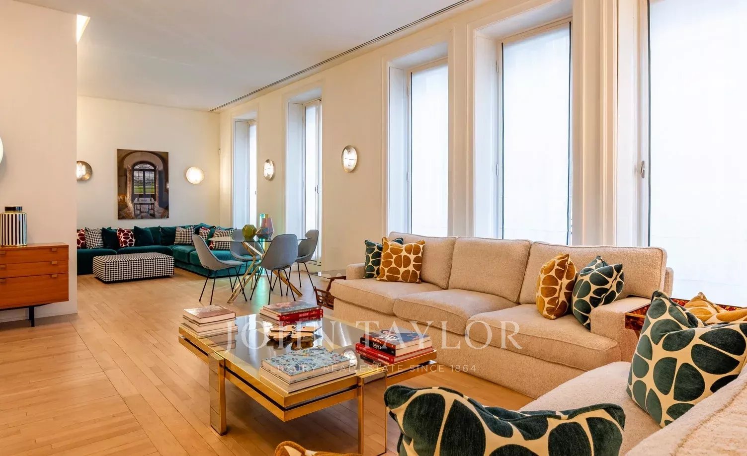 AN EXCLUSIVE JOHN TAYLOR - New luxury apartment near the Quadrilatero della Moda, in an exclusive historic setting with full-day concierge service. Prestigious residence, extremely bright and quiet. High-end property of approximately 200 sqm, completely renovated with top-quality finishes, high-end materials, and a modern, elegant design. The apartment consists of a large representative entrance, spacious eat-in kitchen with office area, triple living room with lounge and dining area, three bedrooms, three bathrooms with luxurious finishes, and a walk-in wardrobe. Large balcony. Equipped with every comfort and cutting-edge technology: latest-generation systems, air conditioning, home automation, and maximum efficiency. Energy class D. Price upon request.