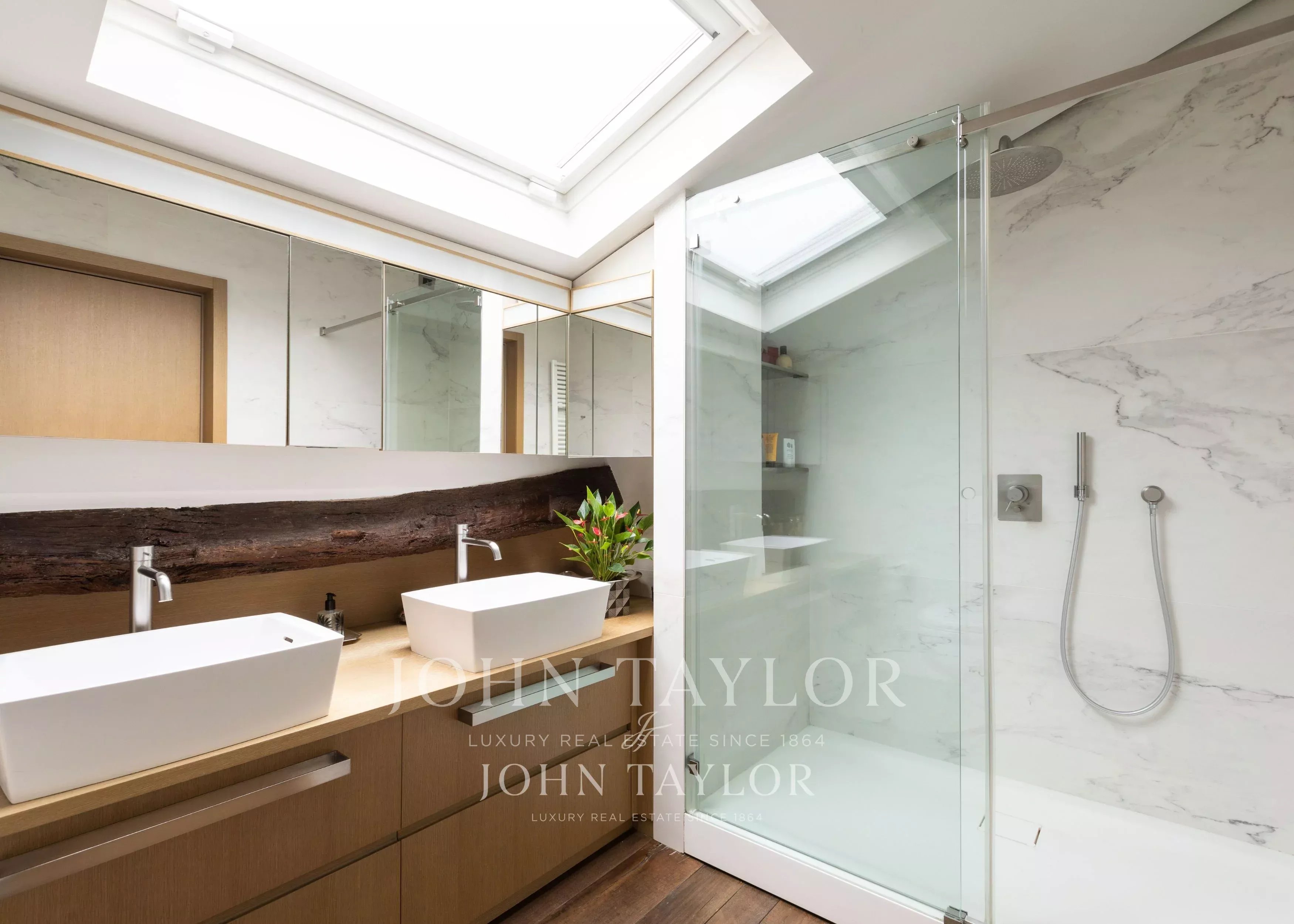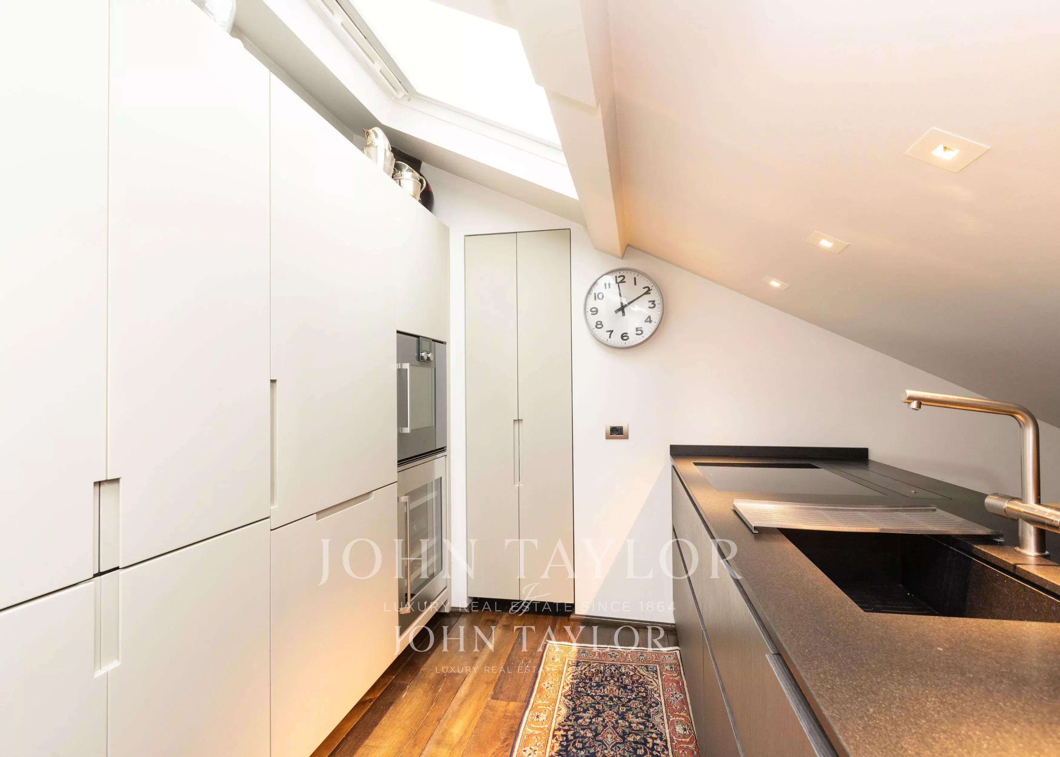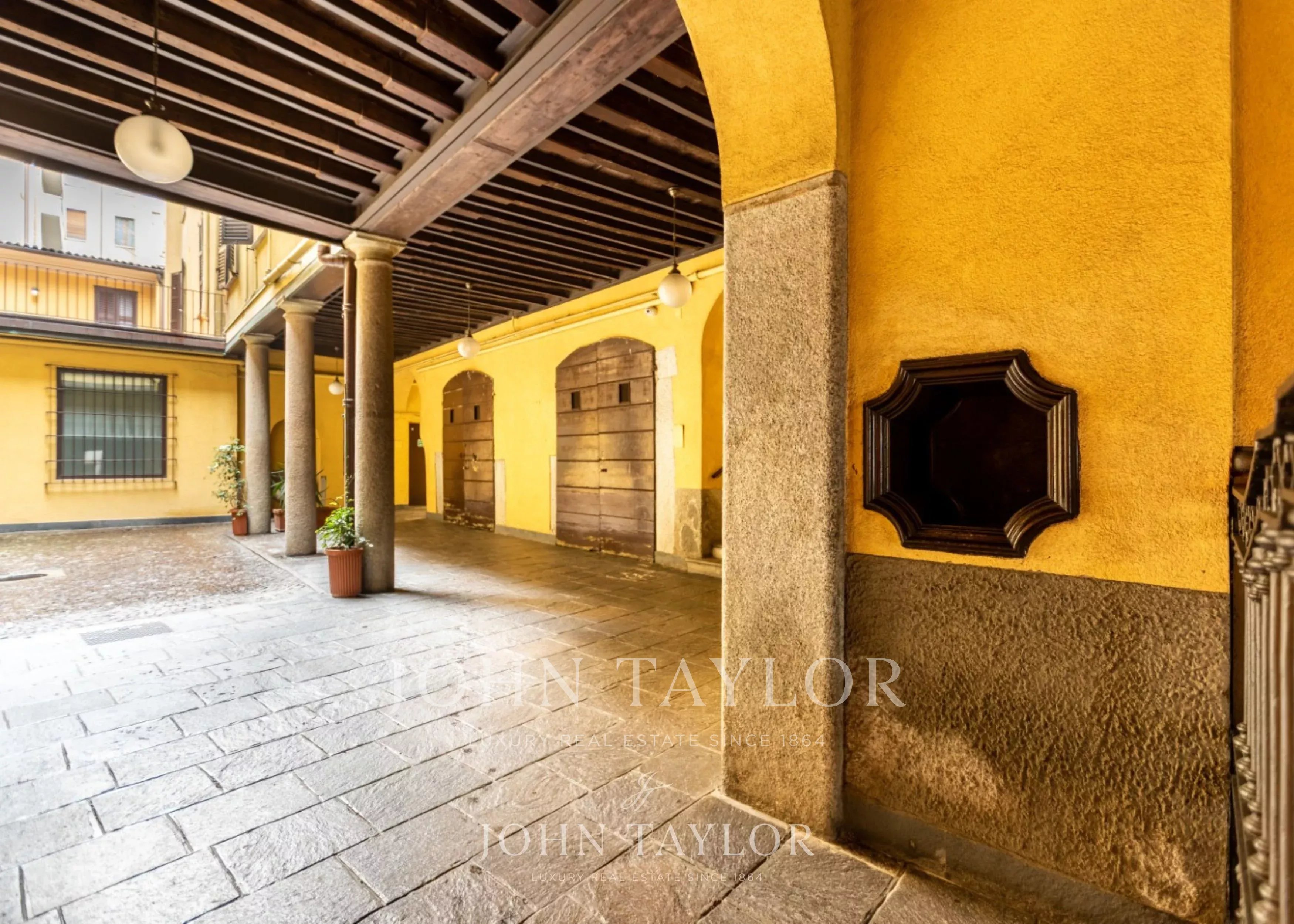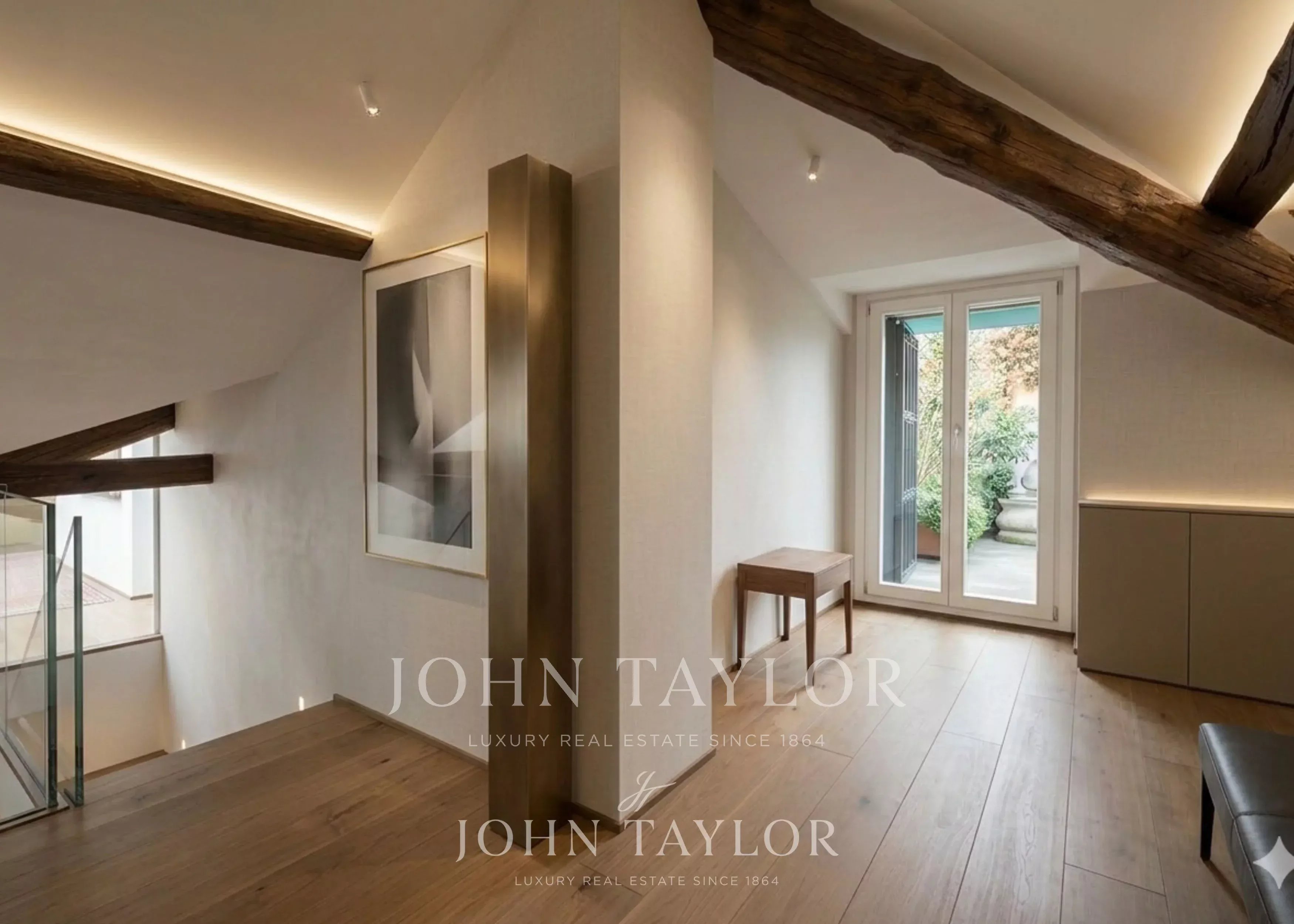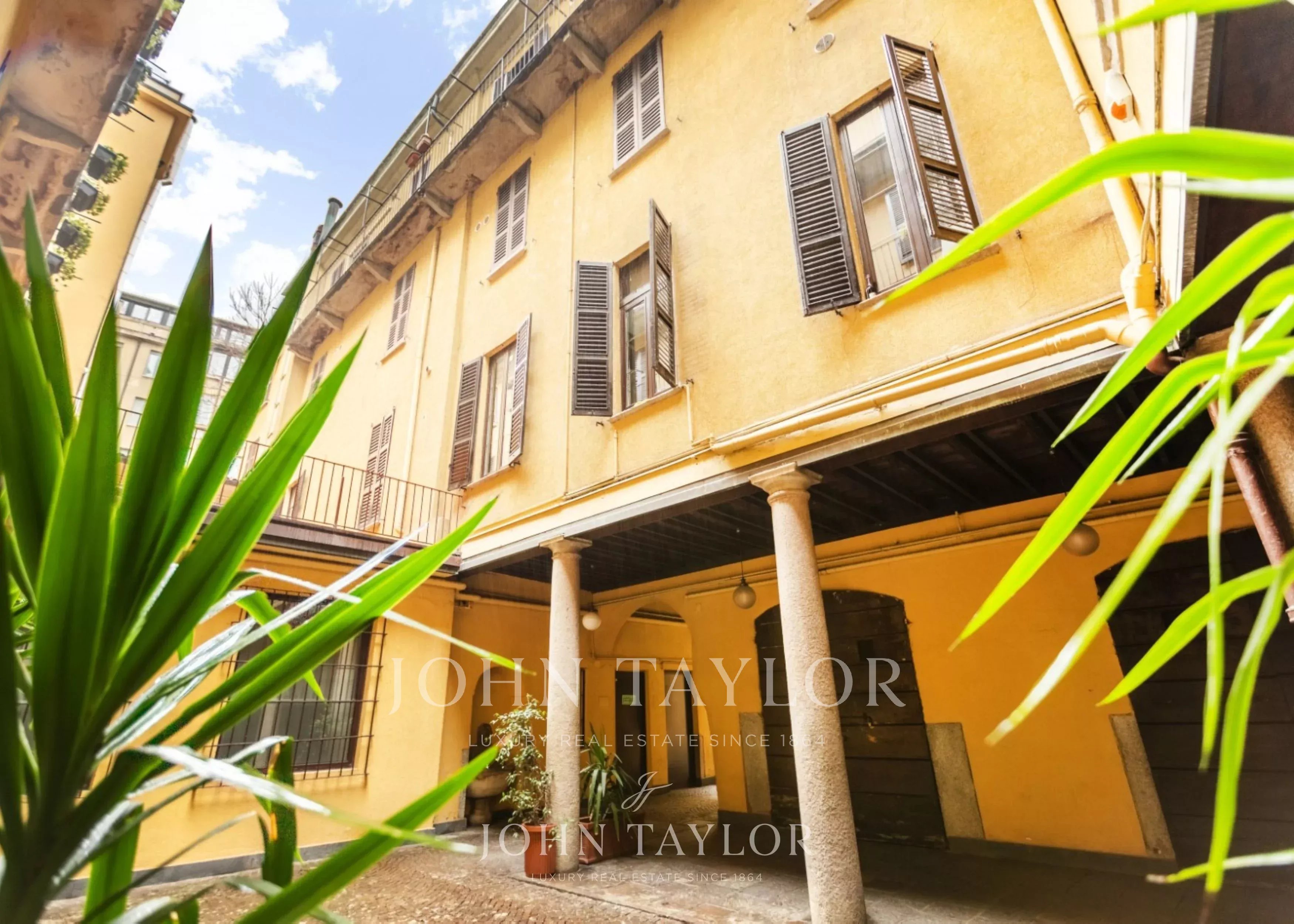 In the most exclusive heart of Milan, in a splendid setting of great historical value, prestigious and exclusive penthouse of approximately 200 sqm, full of charm, set in a context of absolute privacy and silence. A representative property, very bright and quiet, featuring a wonderful and large planted and furnished terrace. The residence consists of two entrances, a large double living room with fireplace, an elegant dining room, a kitchen with valuable custom-made furnishings, two spacious double bedrooms both with fireplace, a study, two walk-in closets, a laundry room, and two bathrooms. The penthouse has undergone a refined renovation with finishes of the highest quality, enchanting original exposed beams, parquet flooring in planks made from Venetian “briccole” wood, a lighting system, splendid boiserie, and an advanced home automation system. The project, curated by a renowned Milanese architecture studio, enhances every space through interior design choices and built-in furnishings from the most prestigious international brands. € 2.750.000. Possibility of a parking space in the immediate vicinity. Energy class C.