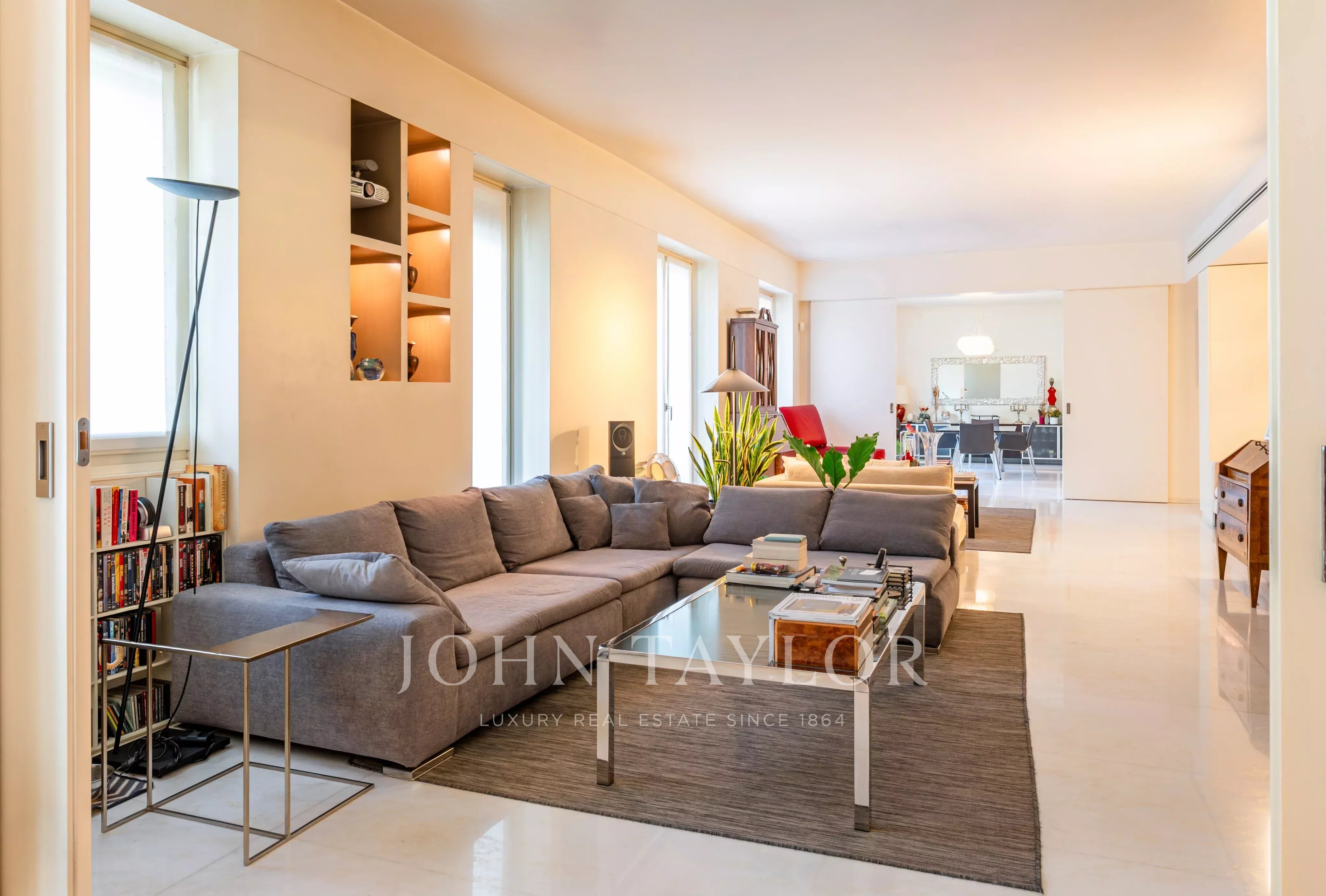 Libera In contesto esclusivo, elegante abitazione di rappresentanza di circa 290 mq luminosa e silenziosa composta da: ampio ingresso, salone quadruplo, sala da pranzo, studio, 4 camere e 6 bagni, lavanderia. Terrazzini e balconi abitabili circostanti. Completamente ristrutturata con finiture di altissimo pregio. Cantina. Possibilità box nelle adiacenze. Trattativa riservata IN UFFICIO.