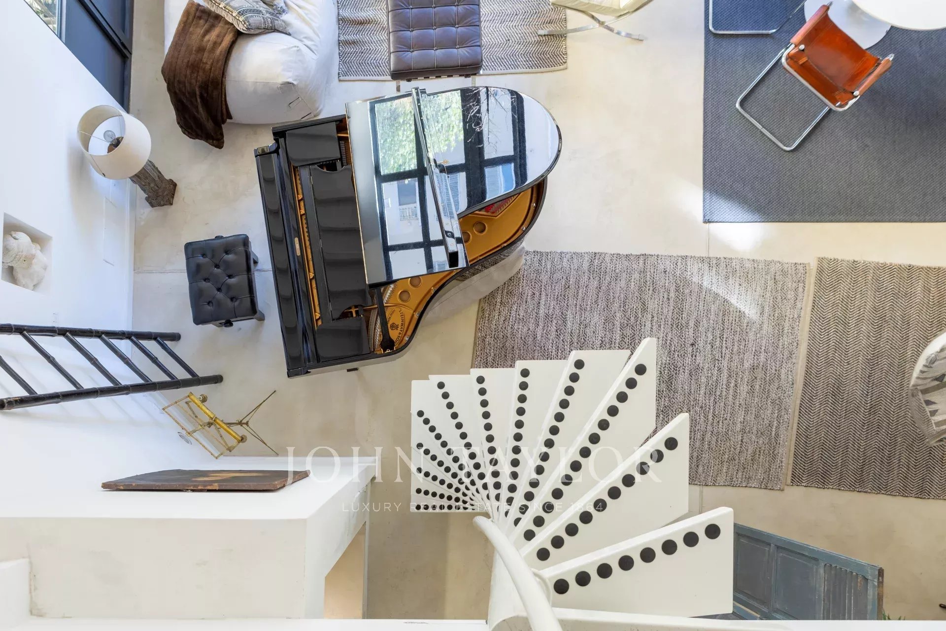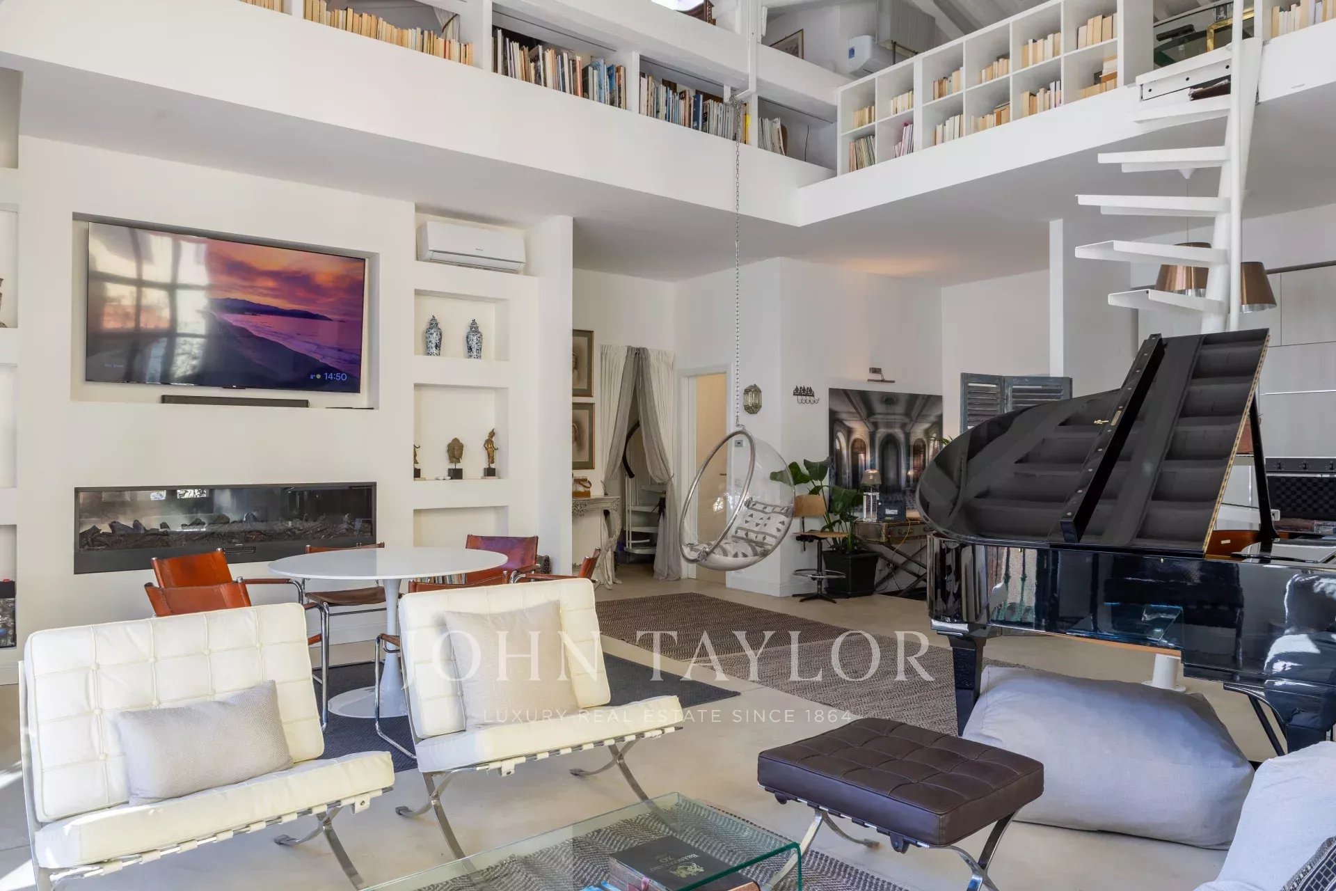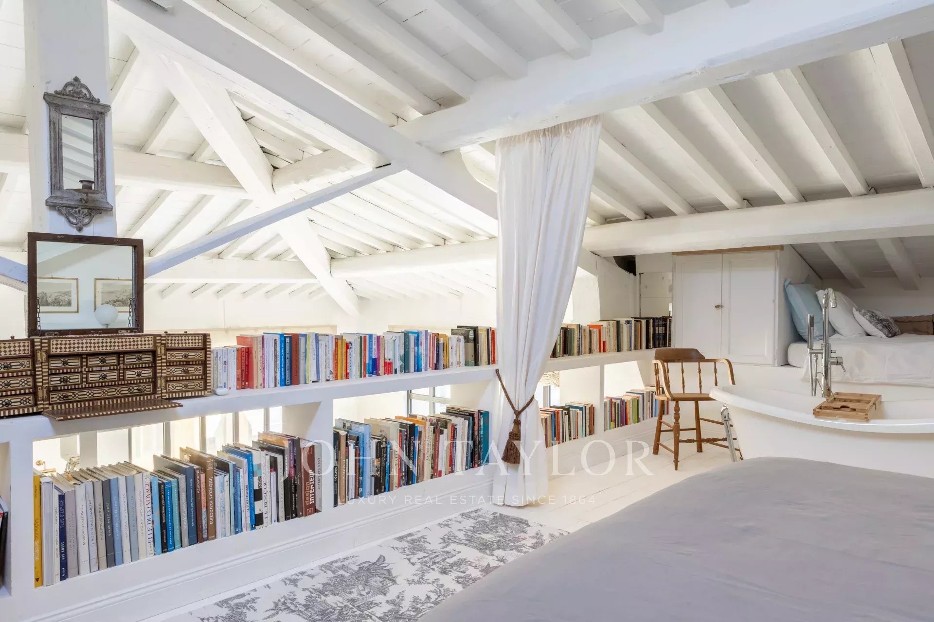 La zona notte offre una camera padronale particolarmente luminosa, dotata di una spaziosa cabina armadio, mentre una seconda camera matrimoniale, situata al piano superiore, regala una vista suggestiva sulla zona giorno. Sullo stesso livello, si trova anche una zona studio in soppalco, perfetta come spazio di lavoro o angolo lettura.