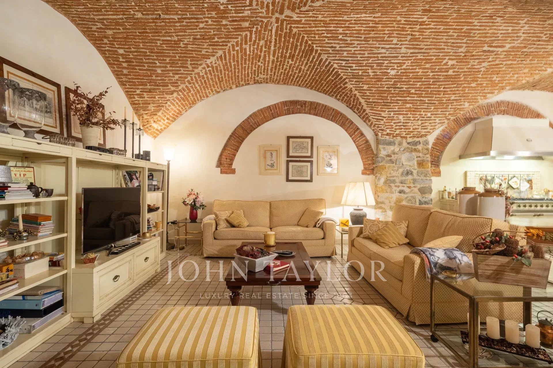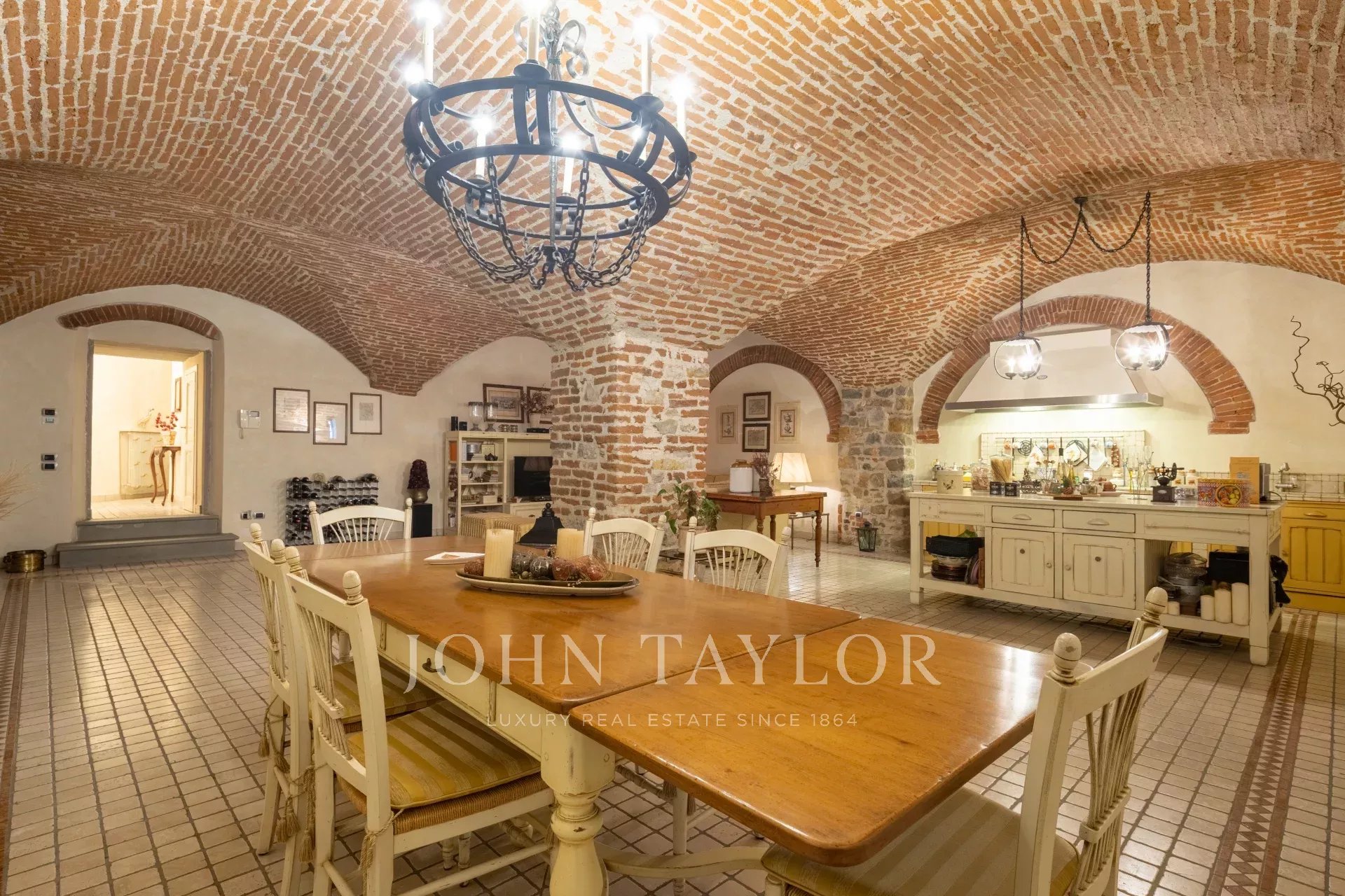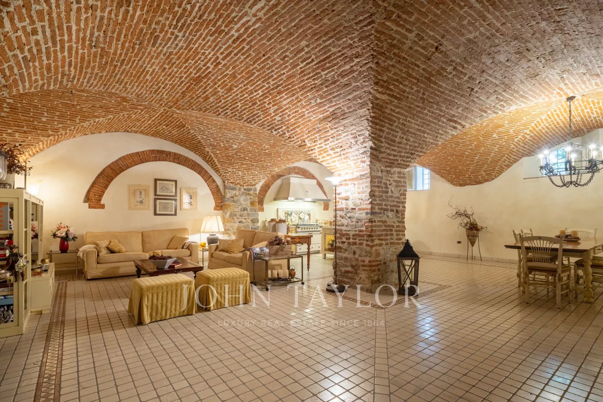 Il piano inferiore accoglie una splendida taverna con volte originali, completa di seconda cucina, zona TV, cantina, lavanderia e un terzo bagno, creando uno spazio ideale sia per il relax sia per accogliere ospiti.