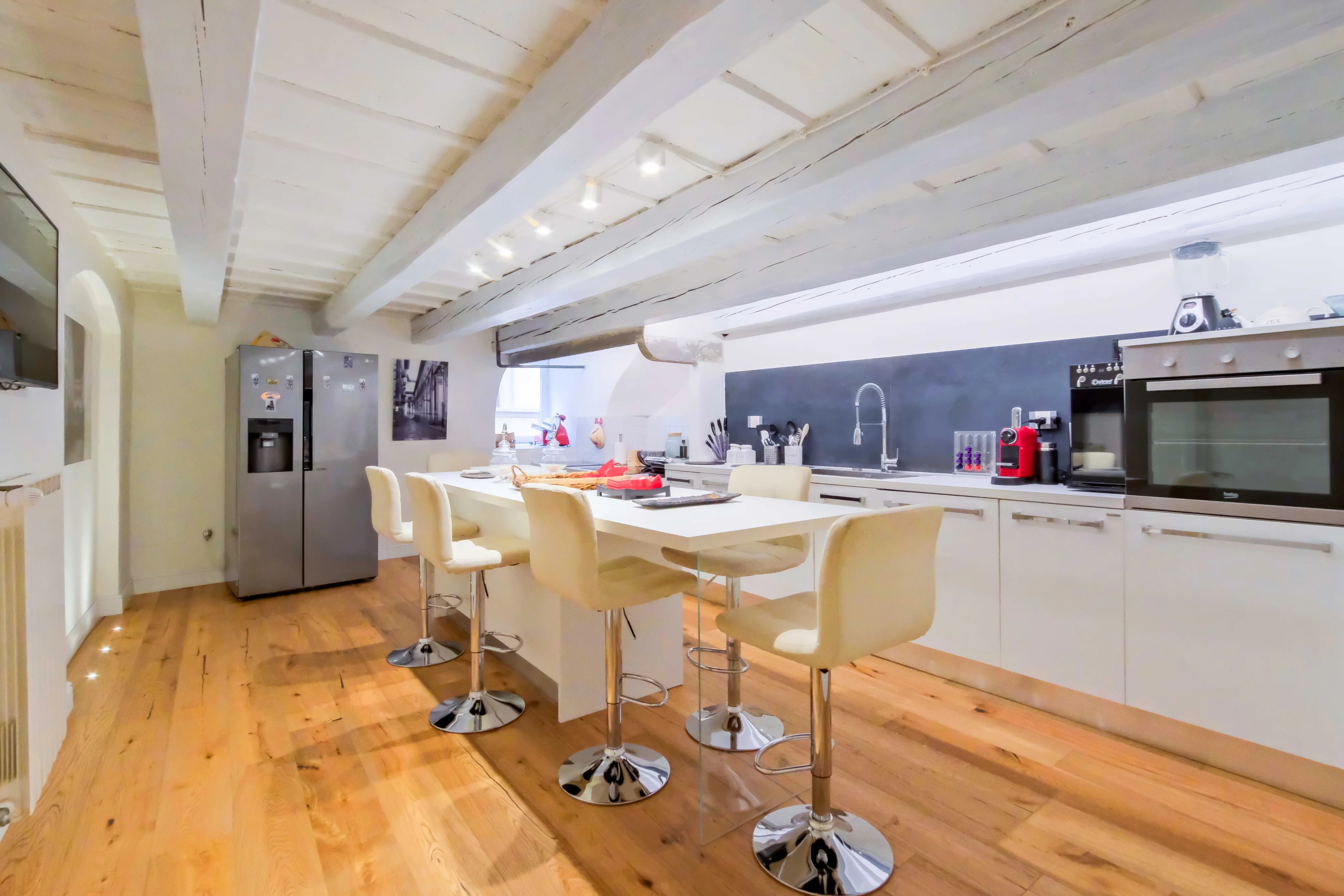 All’interno di un palazzo notificato, noto per una delle facciate storiche più riconoscibili di Firenze, si trova questa elegante proprietà, ristrutturata con cura e attenzione ai dettagli.