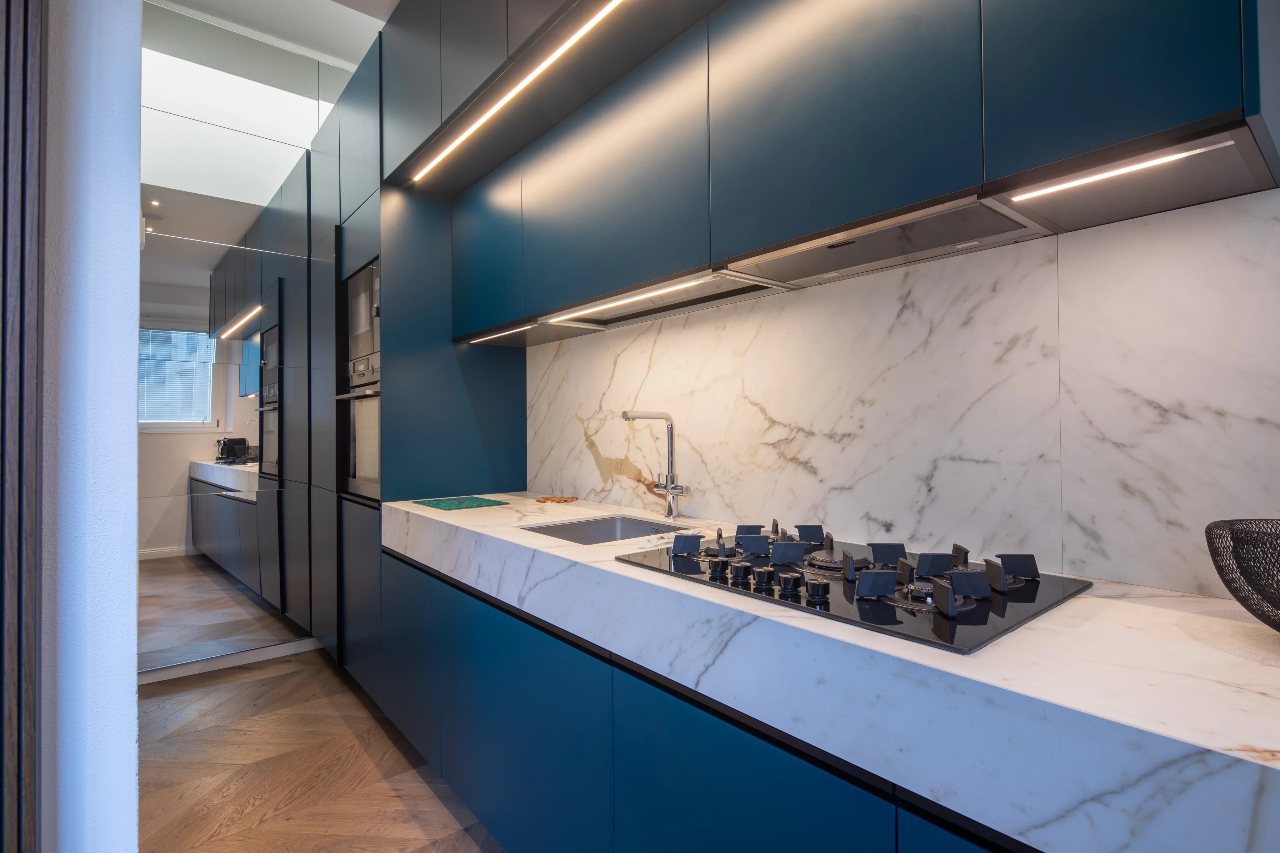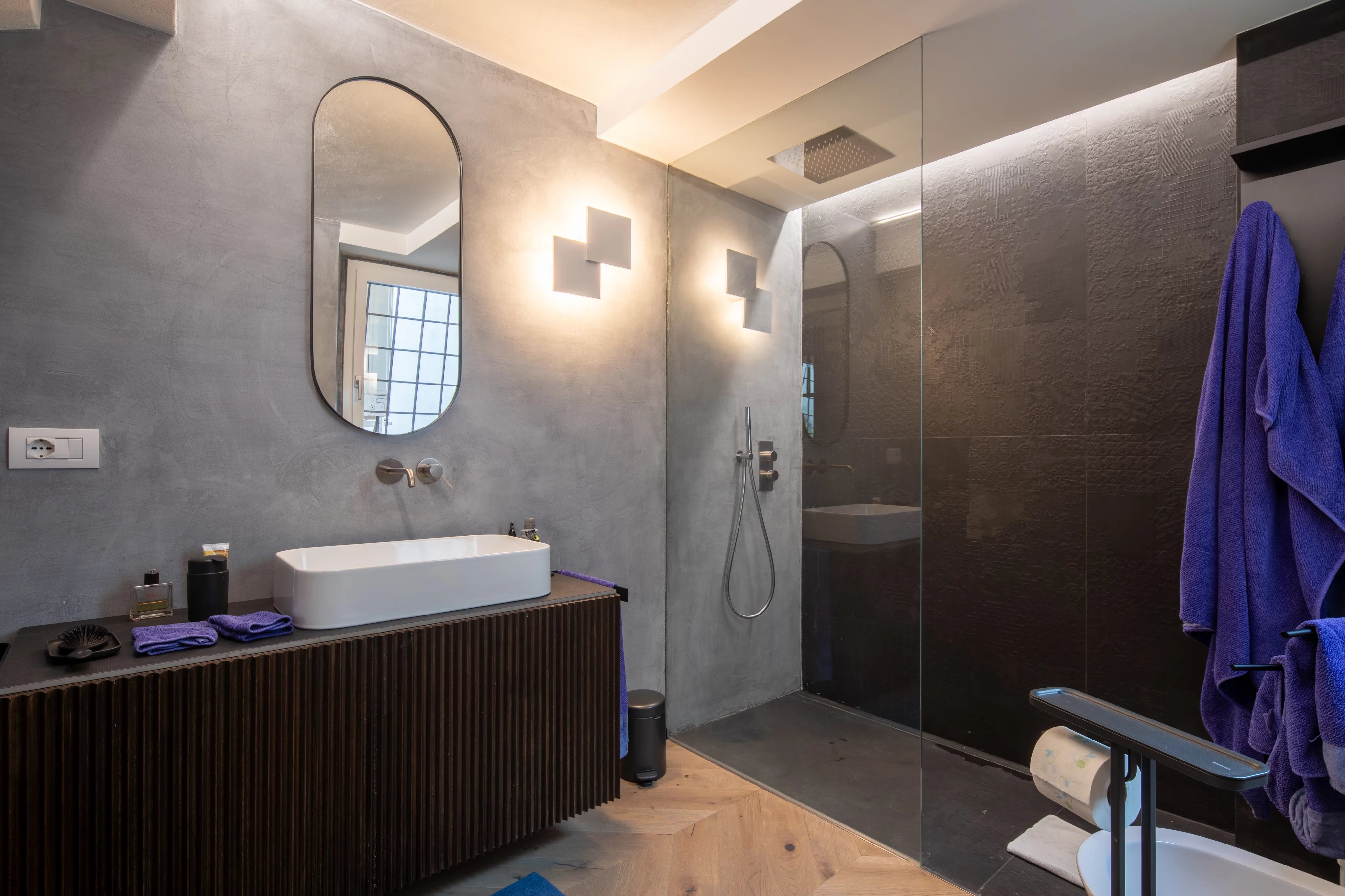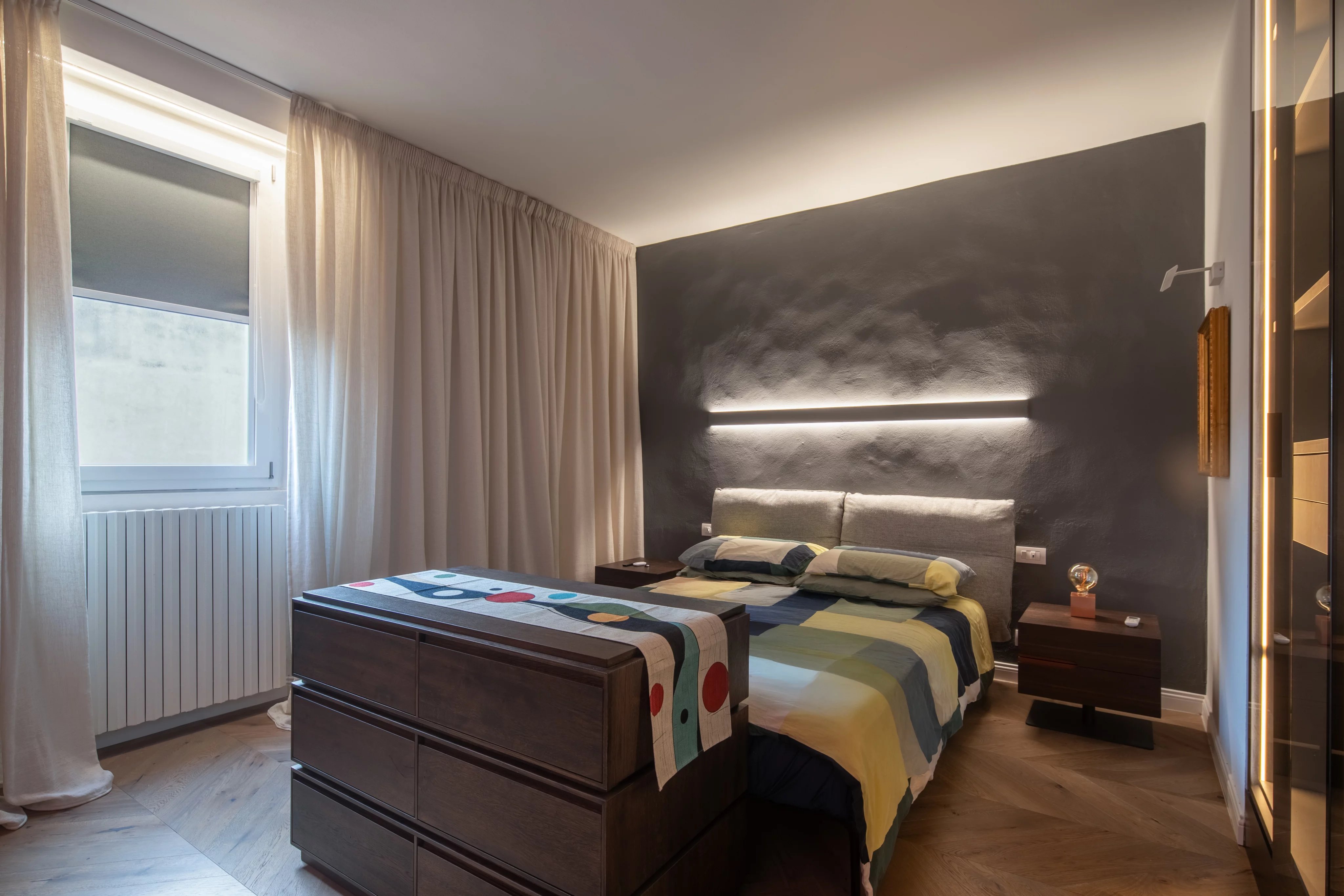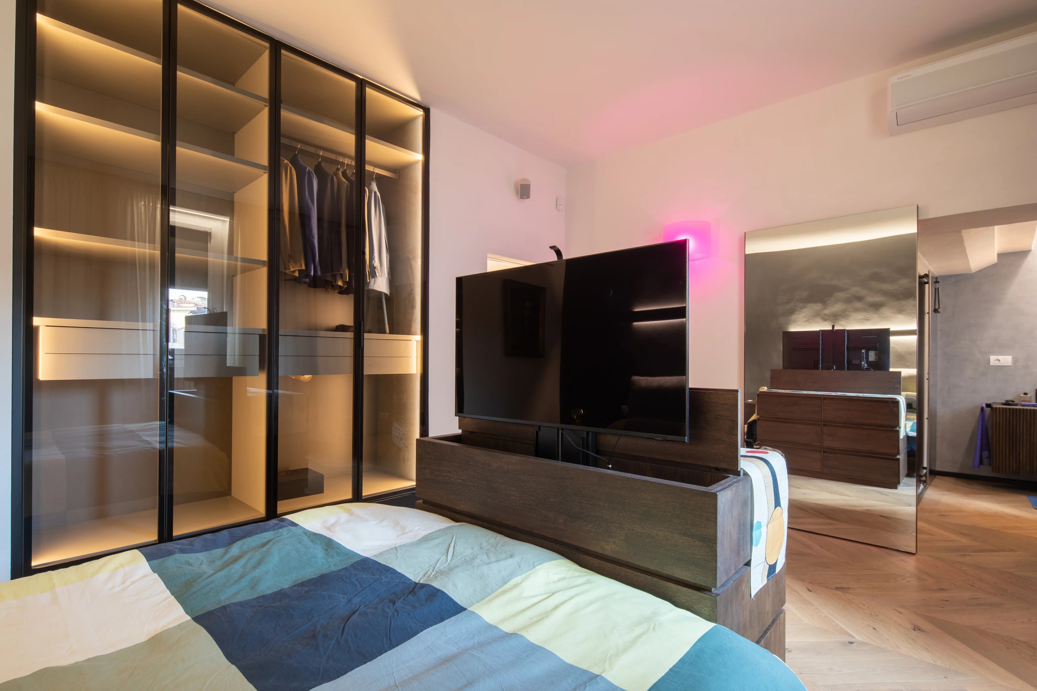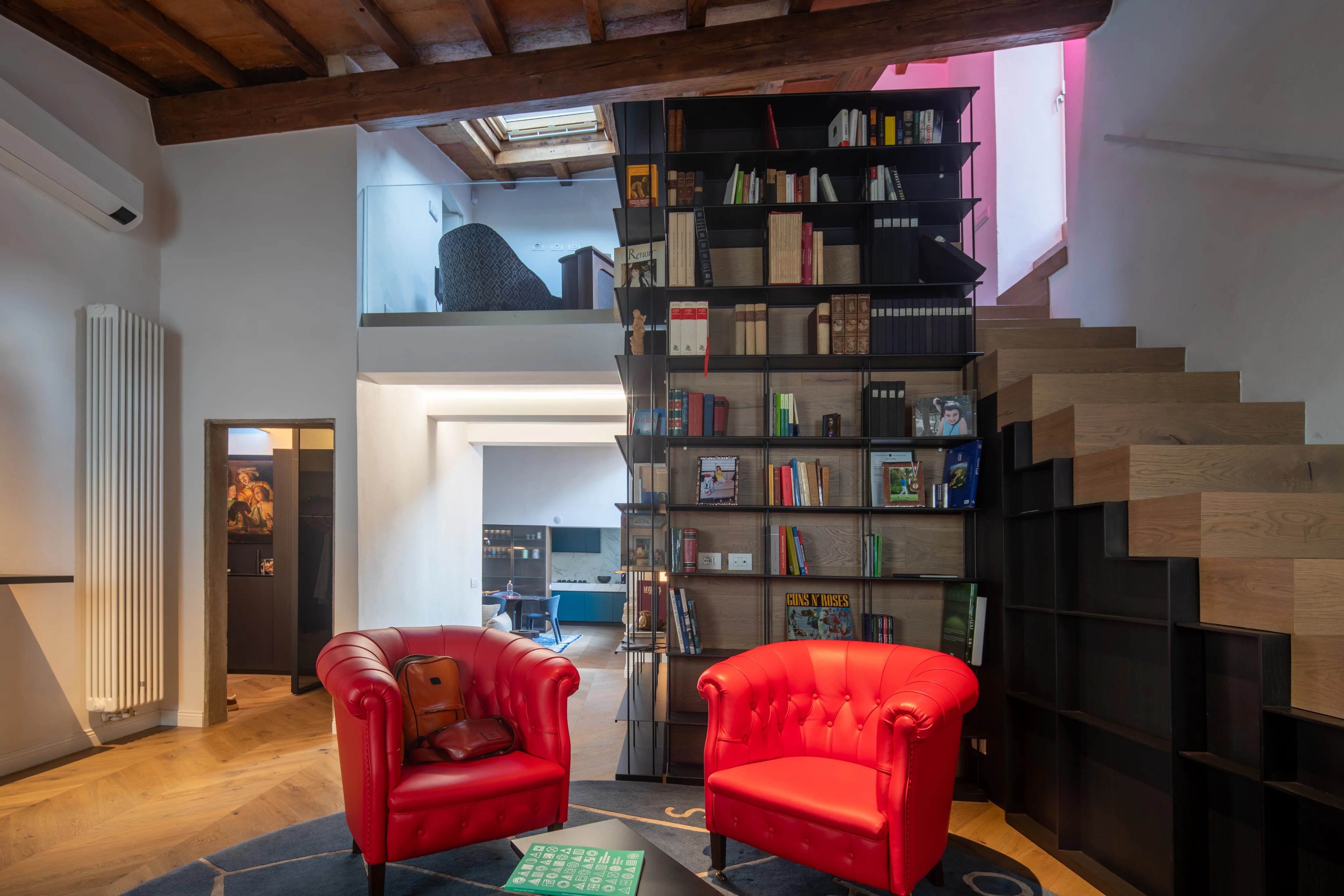 L'interno è composto da un'ampia zona living con cucina a vista, arricchita da dettagli di design che conferiscono carattere all'ambiente. Le due camere da letto sono spaziose e luminose, ideali per chi cerca tranquillità nel cuore pulsante della città. Il pavimento in legno a spina di pesce aggiunge un tocco di raffinatezza a tutto l'appartamento.