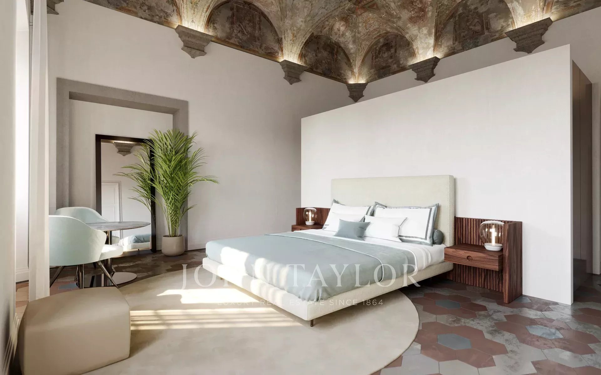 La proprietà combina il fascino storico con i comfort moderni, offrendo interni spaziosi che rispettano la storicità del sito. Il design e gli arredi riflettono uno stile architettonico lussuoso ed elegante, che esalta l'atmosfera accogliente dello spazio. All'esterno, il giardino all'italiana e l'esclusivo parco condominiale offrono ai residenti opportunità di relax e socializzazione in mezzo a una vegetazione lussureggiante.