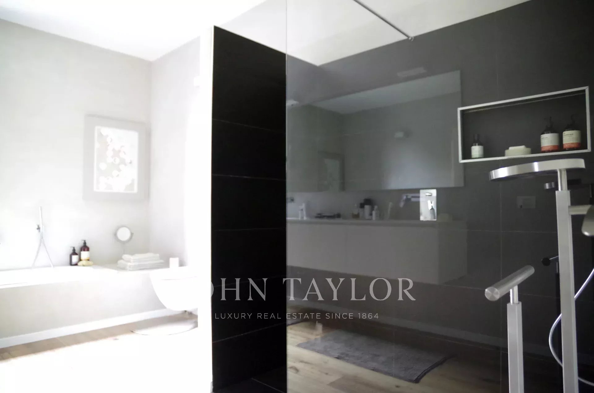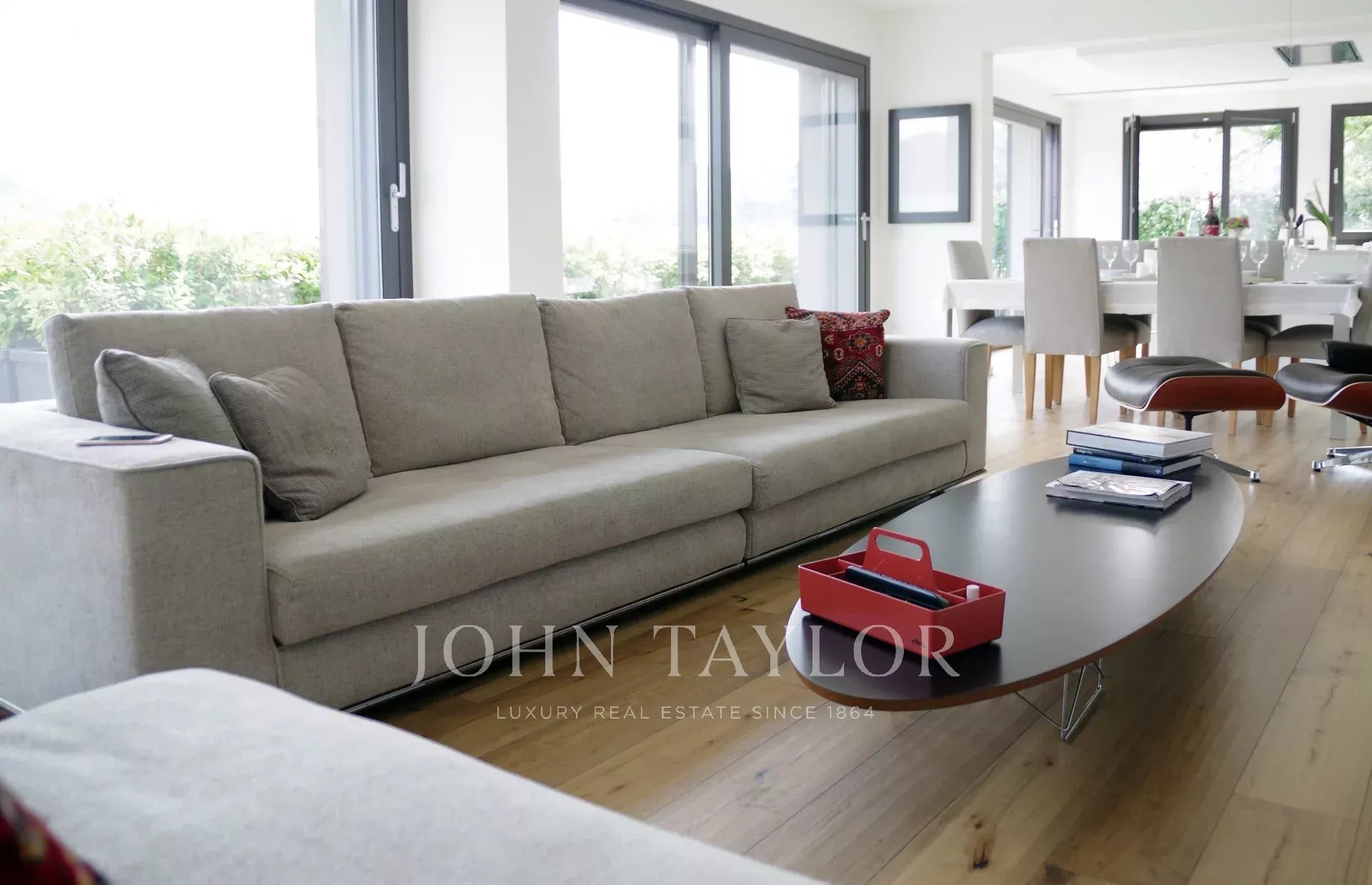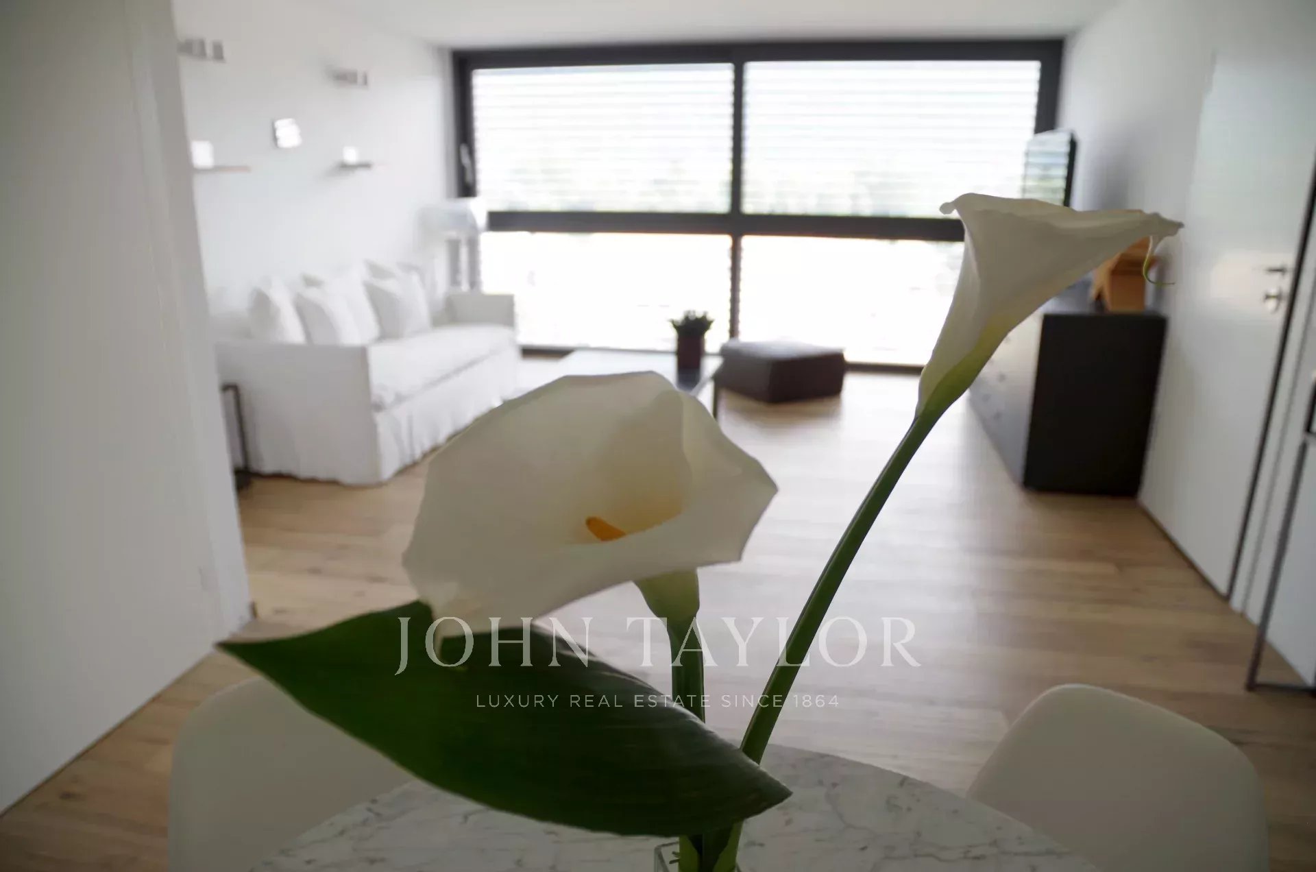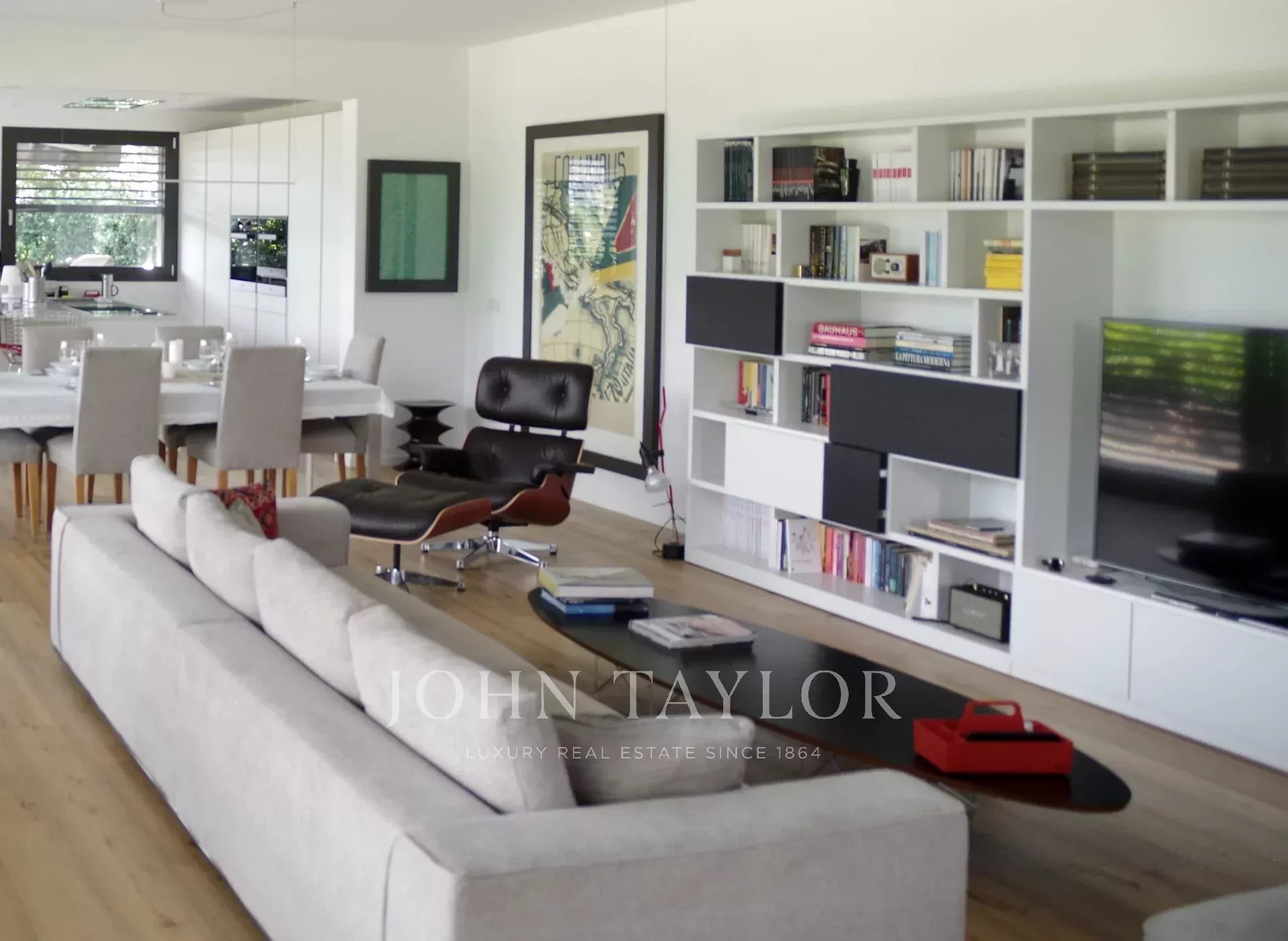 Set in a dominant, private, and strategic position, this contemporary villa represents a true statement of style: an architecture that converses with the landscape and transforms it into a daily experience. From one of the most panoramic areas of the first basin of Lake Como, the view opens into a dramatic 180-degree embrace, free of obstacles and disturbances, flooding every space with light and tranquility. A horizon that changes with the seasons yet never loses its majestic beauty. The splendid property is conveniently served by an internal elevator. The heart of the villa is a spacious open-plan living area of approx. 65 sqm, where the living room and custom-designed kitchen, crafted down to the smallest detail, blend into a spectacular, bright, and welcoming space. The large windows open onto an 80 sqm panoramic terrace: a natural extension of the living area, perfect for relaxing breakfasts, sunset aperitifs, or dinners under the stars, with the lake as the only soundtrack. The sleeping area is conceived as a retreat of elegance and well-being. The master bedroom unfolds along a private area composed of a hallway, walk-in closet, large, windowed bathroom, and a spacious 18 sqm bedroom overlooking the view. A second double bedroom, also 18 sqm and equally bright, shares a balcony of about 12 sqm. The floor is completed by a second bathroom and a private 45 sqm gym: an exclusive space to regenerate without ever leaving the comfort of home. On the second floor, an independent apartment with a separate entrance offers the ideal solution for guests, staff, or as a ready-to-use investment. It features a living room with kitchen, double bedroom, bathroom, and porch: a reserved, versatile space ready to be adapted to different needs. The surrounding land, approximately 900 sqm, is fully landscaped and includes two covered parking spaces and five additional outdoor ones, offering complete functionality without sacrificing elegance. Its strategic location ensures convenient connections to Milan City, Switzerland, and Milan Malpensa International Airport, making this villa perfect both as a primary residence and as an exclusive second home. A property designed for those who recognize the true value of rare things. For those seeking luxury—modern, yet never ostentatious.
