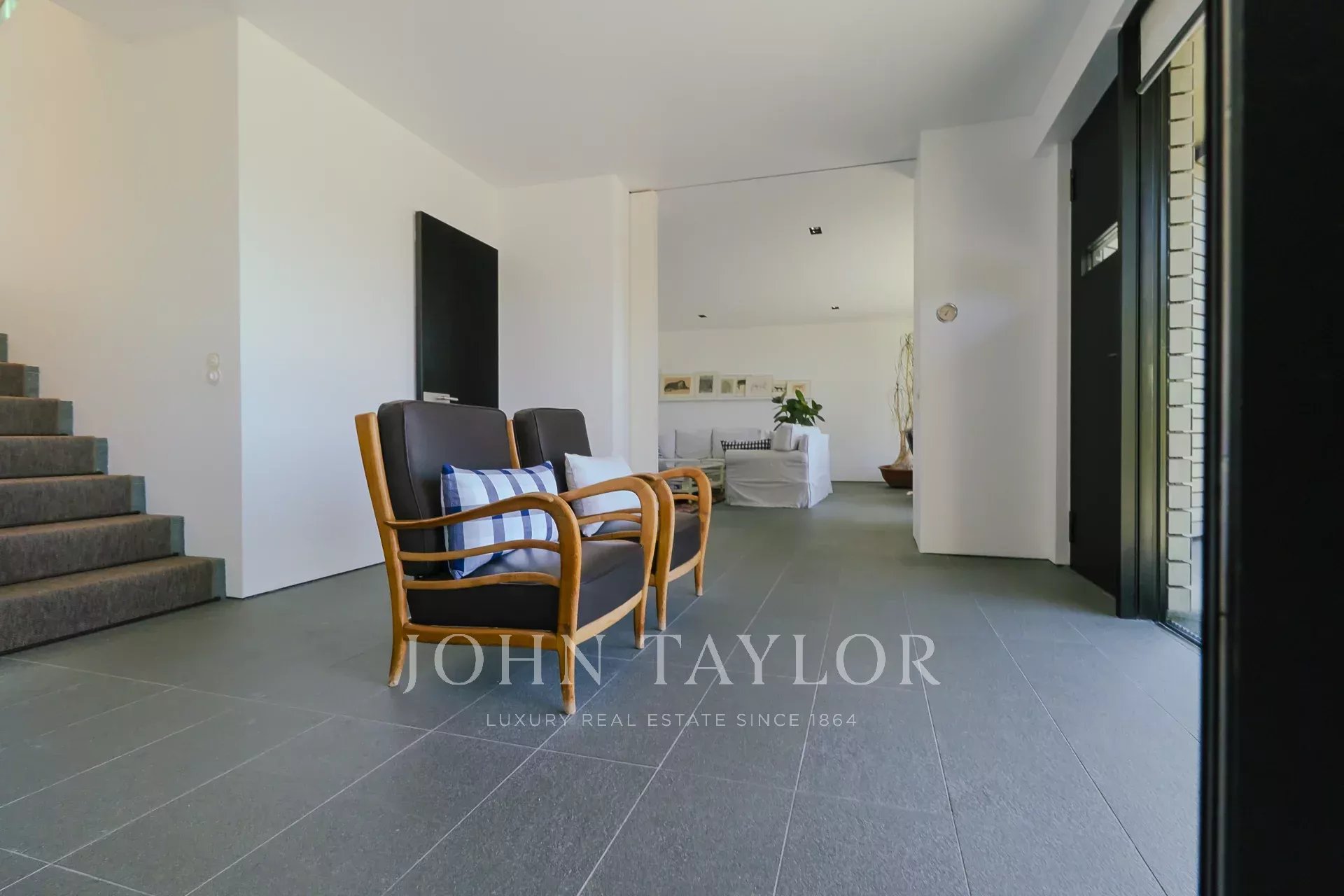 A pochi minuti dal centro di Cernobbio, questa villa moderna di circa 270 mq incarna il perfetto equilibrio tra architettura minimale, materiali naturali e filosofia biofilica. Distribuita su tre livelli e immersa in un giardino di 1.400 mq, offre una vista impareggiabile sul lago grazie a grandi vetrate a tutta altezza e terrazze panoramiche per oltre 160 mq. Gli interni, raffinati e luminosi, includono un ampio soggiorno con camino, cucina su misura con isola, quattro camere da letto e quattro bagni. La zona notte regala privacy e comfort, con parquet caldo e finiture di alto livello. All’esterno, una piscina a sfioro si affaccia sul lago, mentre solarium e zone pranzo esterne invitano al relax. La villa è dotata di soluzioni sostenibili e tecnologia domotica. Completano la proprietà un garage coperto per tre auto e quattro posti auto esterni. Una residenza unica, dove natura, design e comfort convivono in perfetta armonia. Trattativa riservata in ufficio.