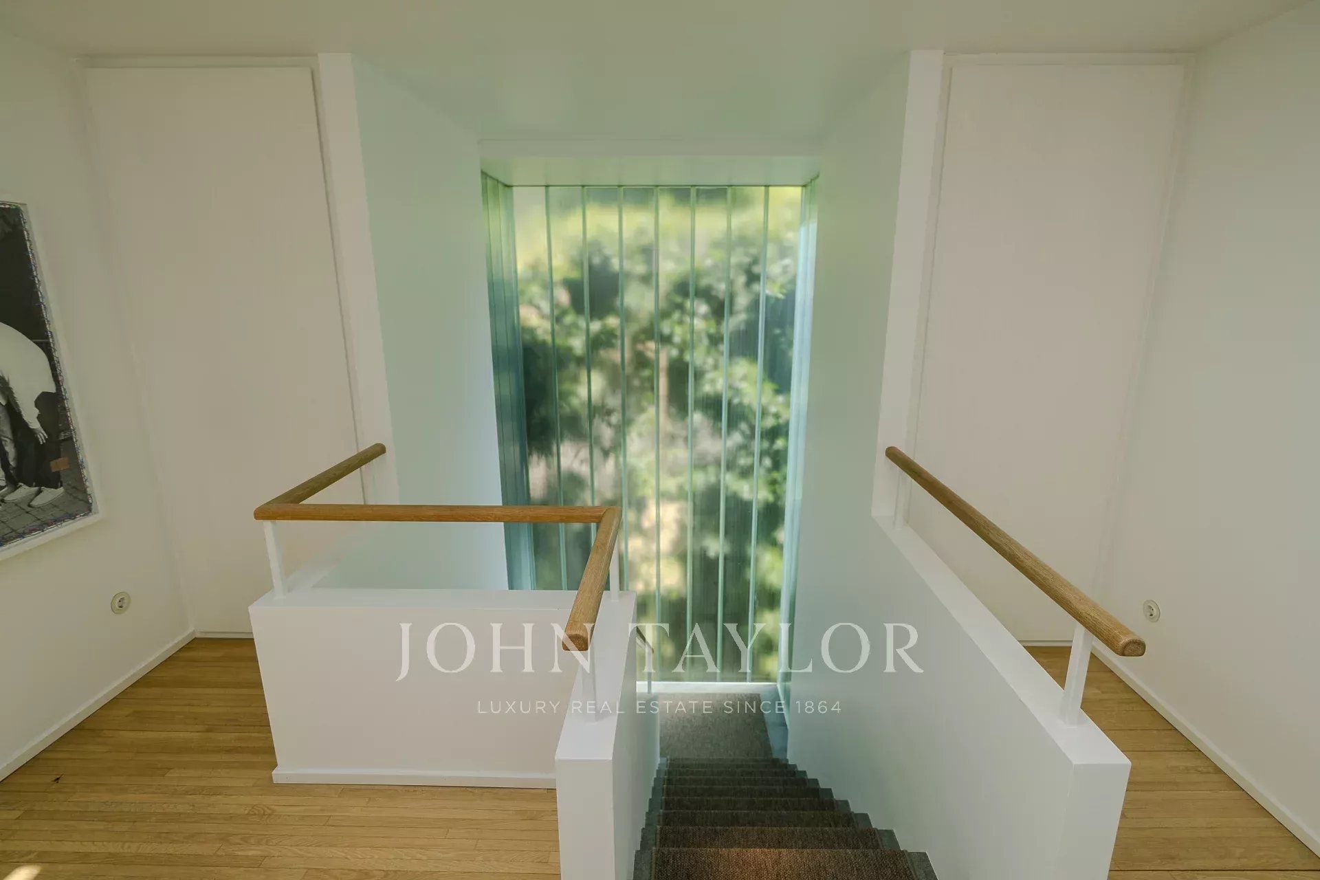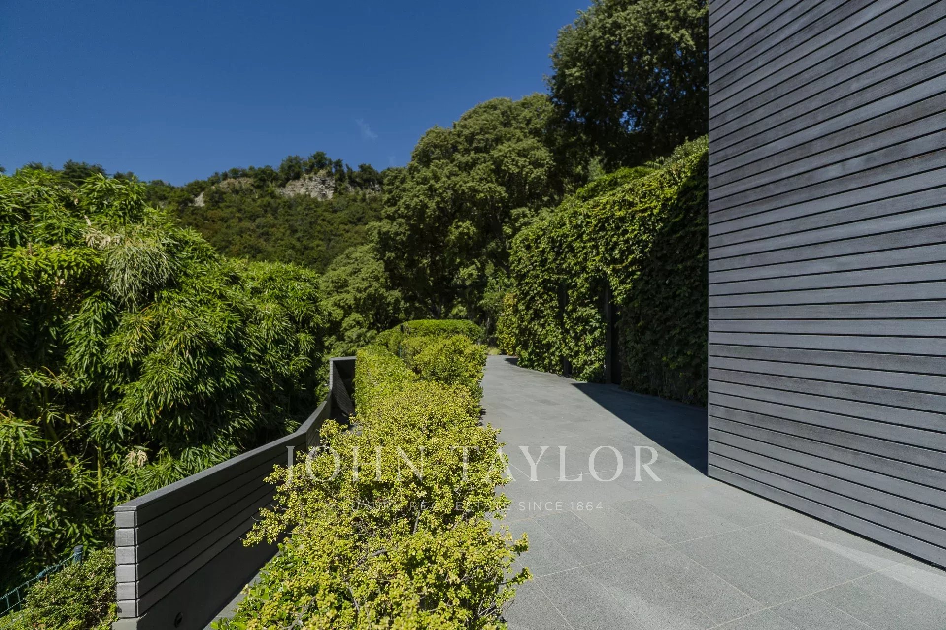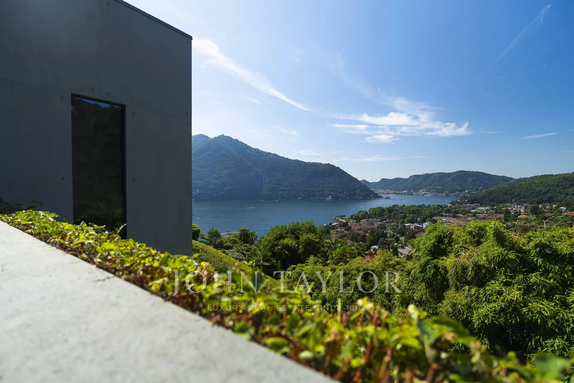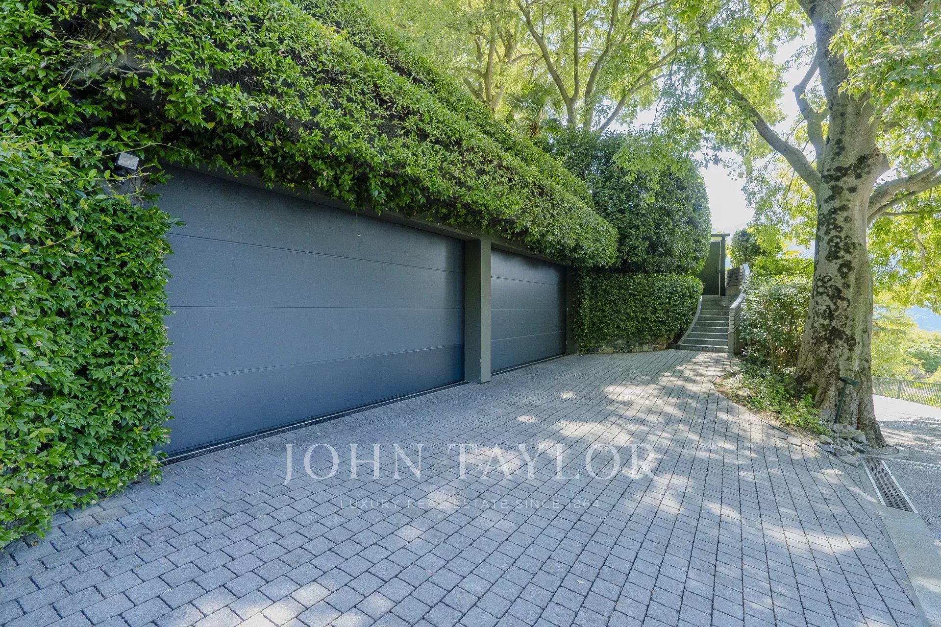 Just a few minutes from the center of Cernobbio, this modern villa of about 270 sqm embodies the perfect balance between minimal architecture, natural materials, and biophilic philosophy. Spread over three levels and immersed in a 1,400 sqm garden, it offers an unparalleled view of the lake thanks to large full-height windows and panoramic terraces of over 160 sqm. The interiors, refined and bright, include a large living room with fireplace, custom kitchen with island, four bedrooms, and four bathrooms. The sleeping area provides privacy and comfort, with warm parquet floors and high-level finishes. Outside, an infinity pool overlooks the lake, while a sun deck and outdoor dining areas invite relaxation. The villa is equipped with sustainable solutions and home automation technology. A covered garage for three cars and four outdoor parking spaces completes the property. A unique residence, where nature, design, and comfort coexist in perfect harmony. Negotiation confidential in office.
