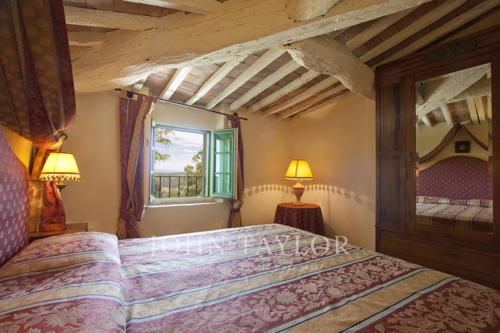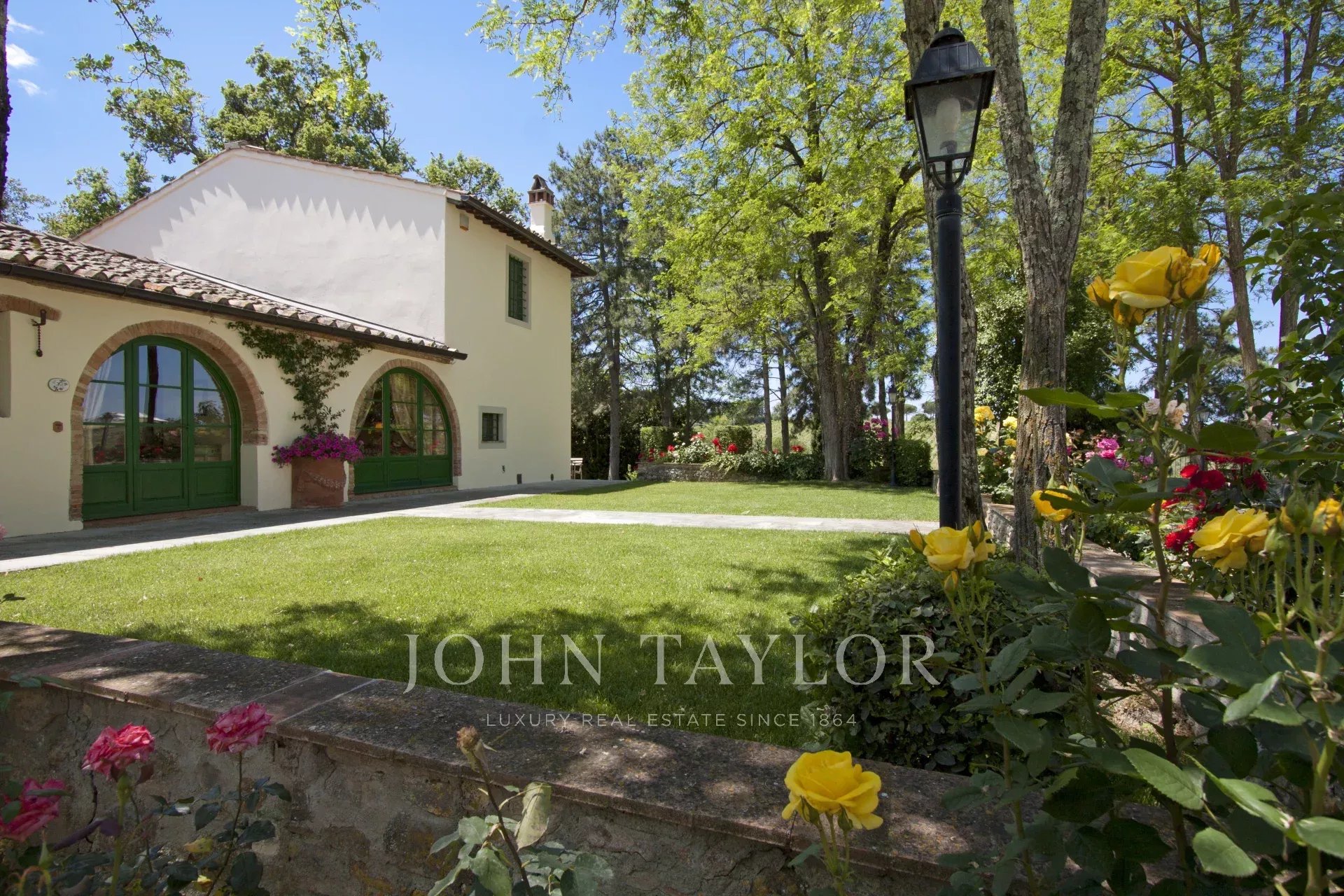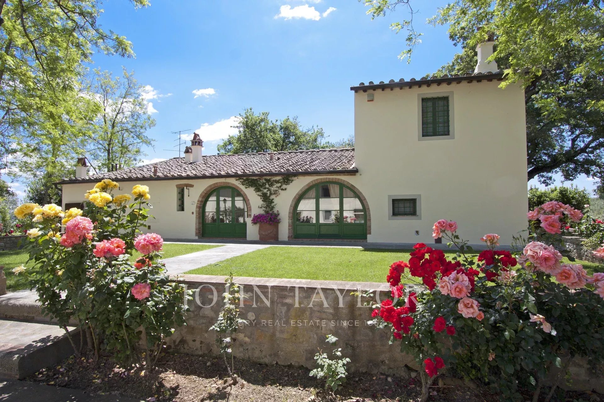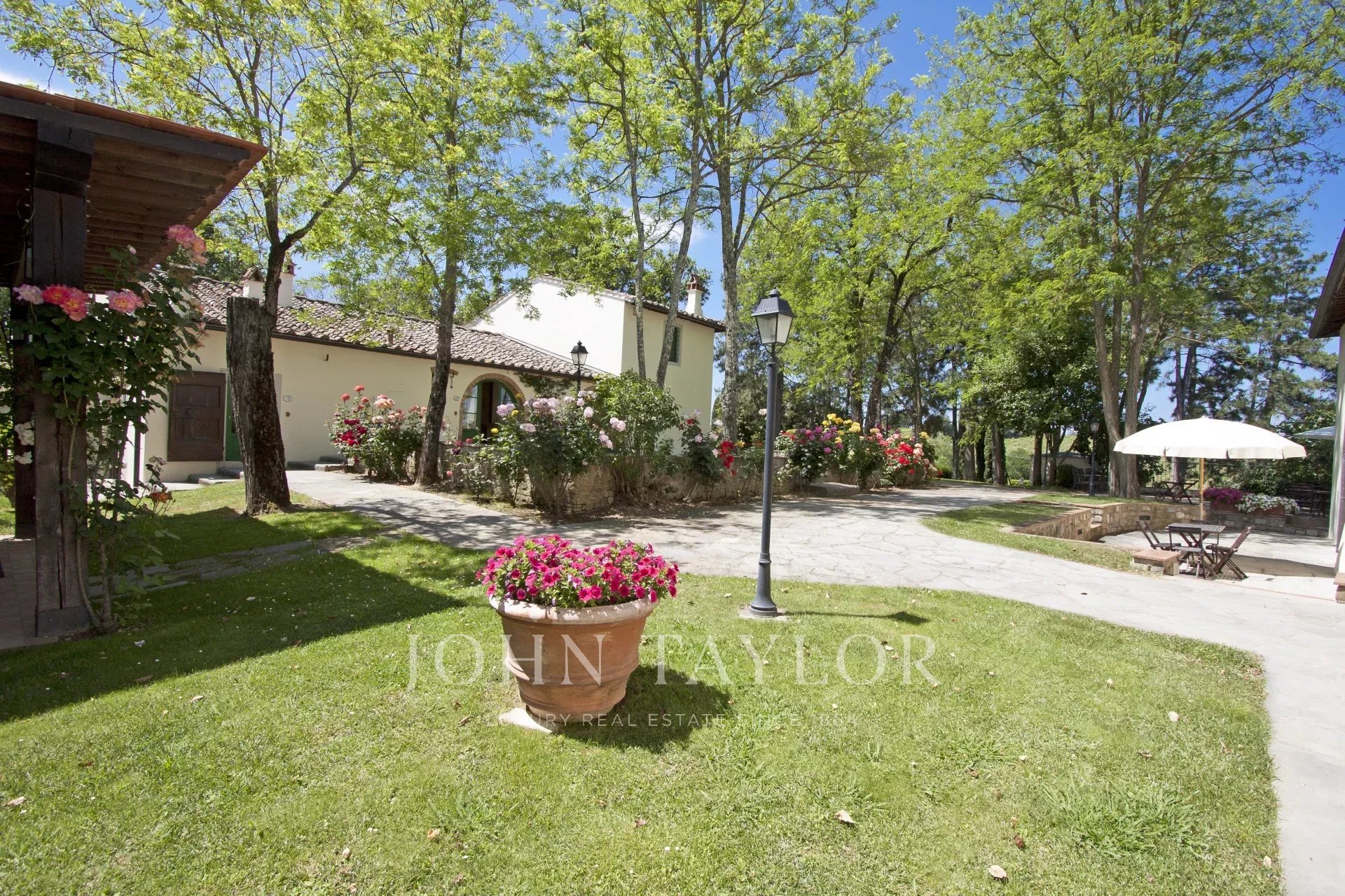 Situato a metà strada tra Firenze e San Gimignano sulla strada per Siena, per raggiungere questa suggestiva proprietà si percorrono circa 1,5 km di una strada bianca in eccellenti condizioni. La tenuta si estende su 13 ettari di campi e boschi, includendo un magnifico giardino curato di circa 1000 mq con piscina e un vigneto di un ettaro.