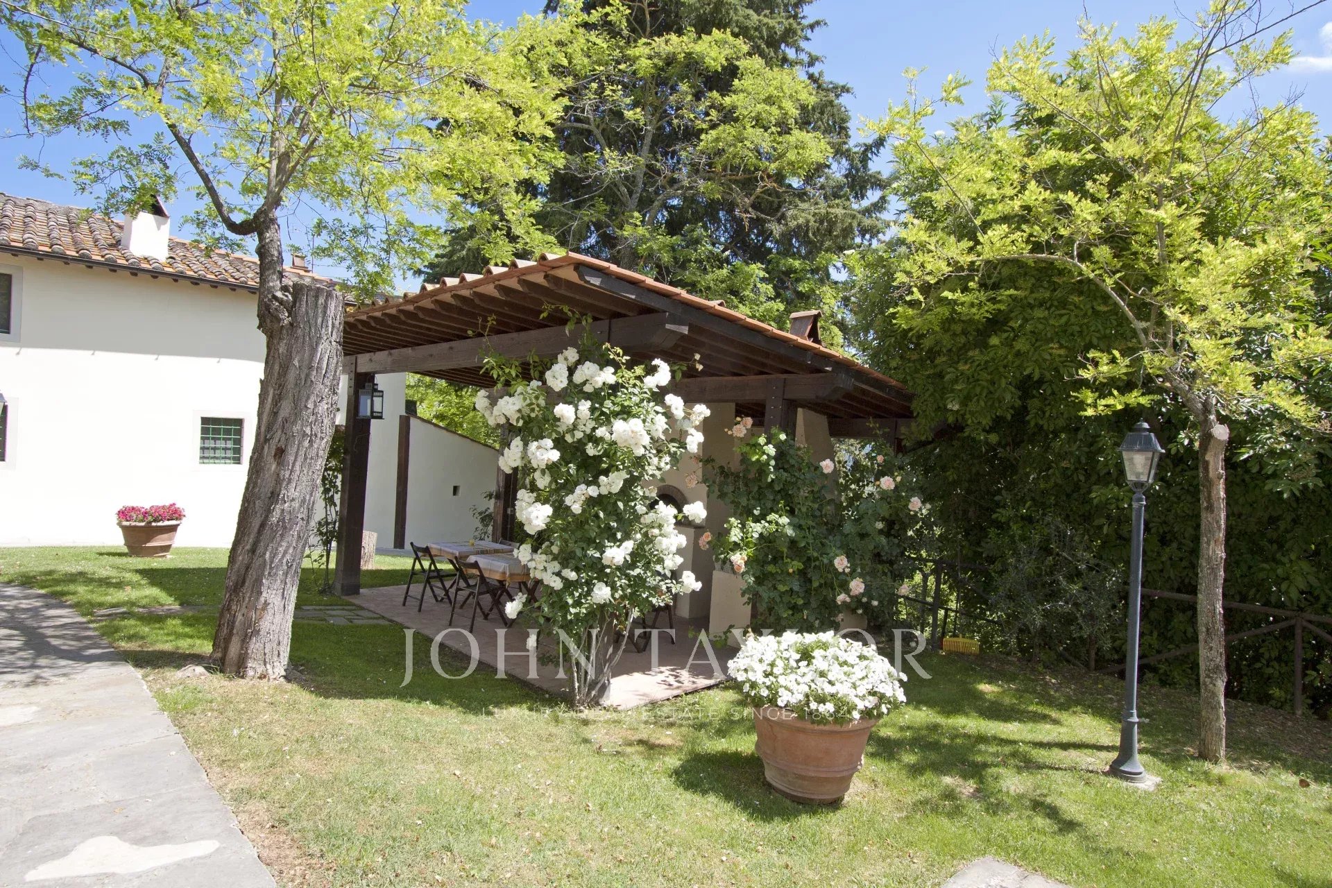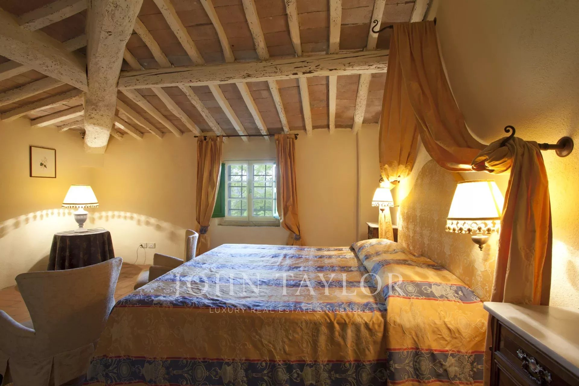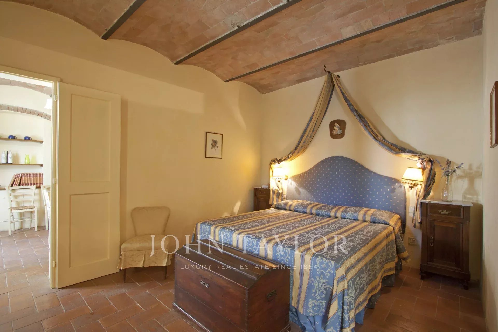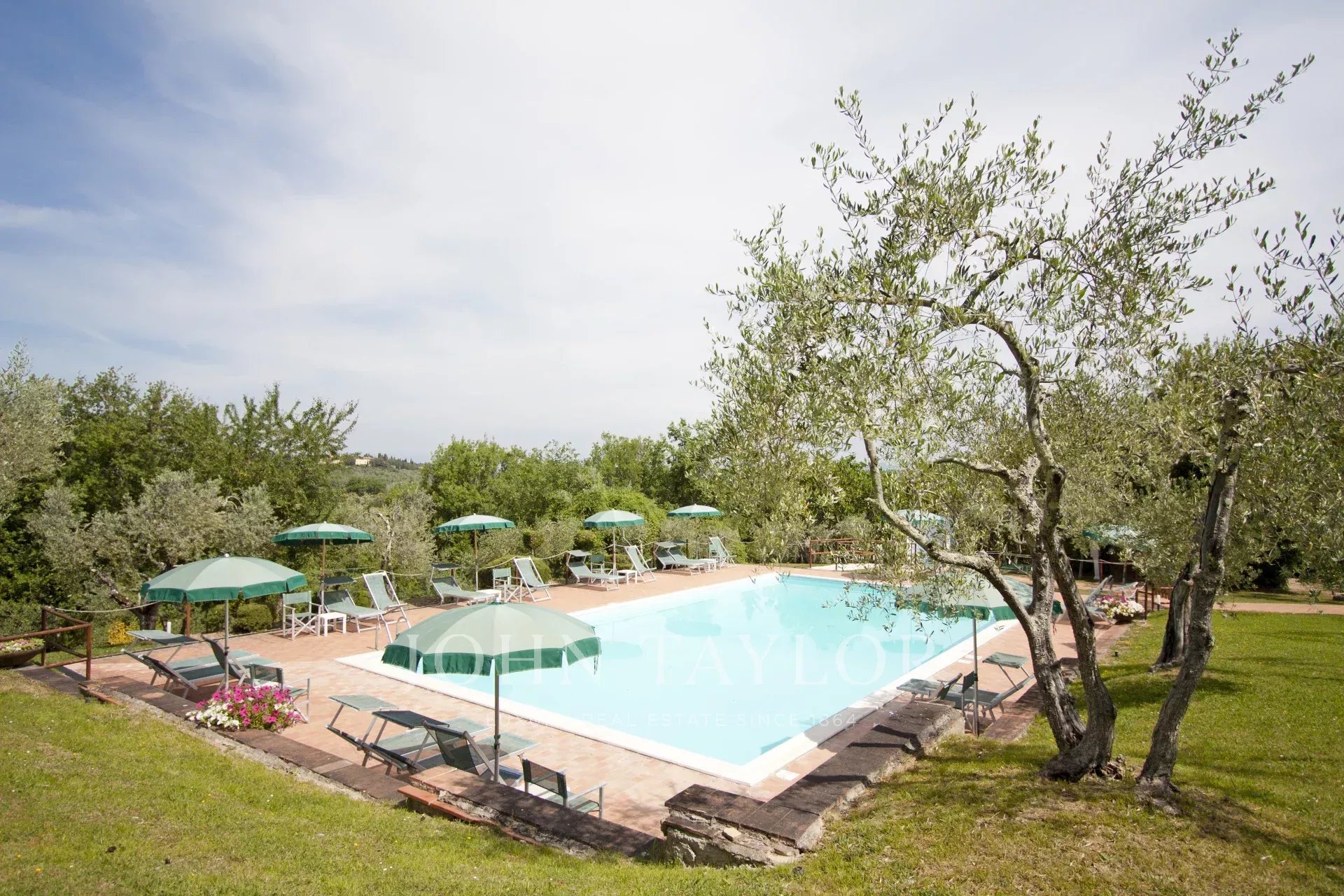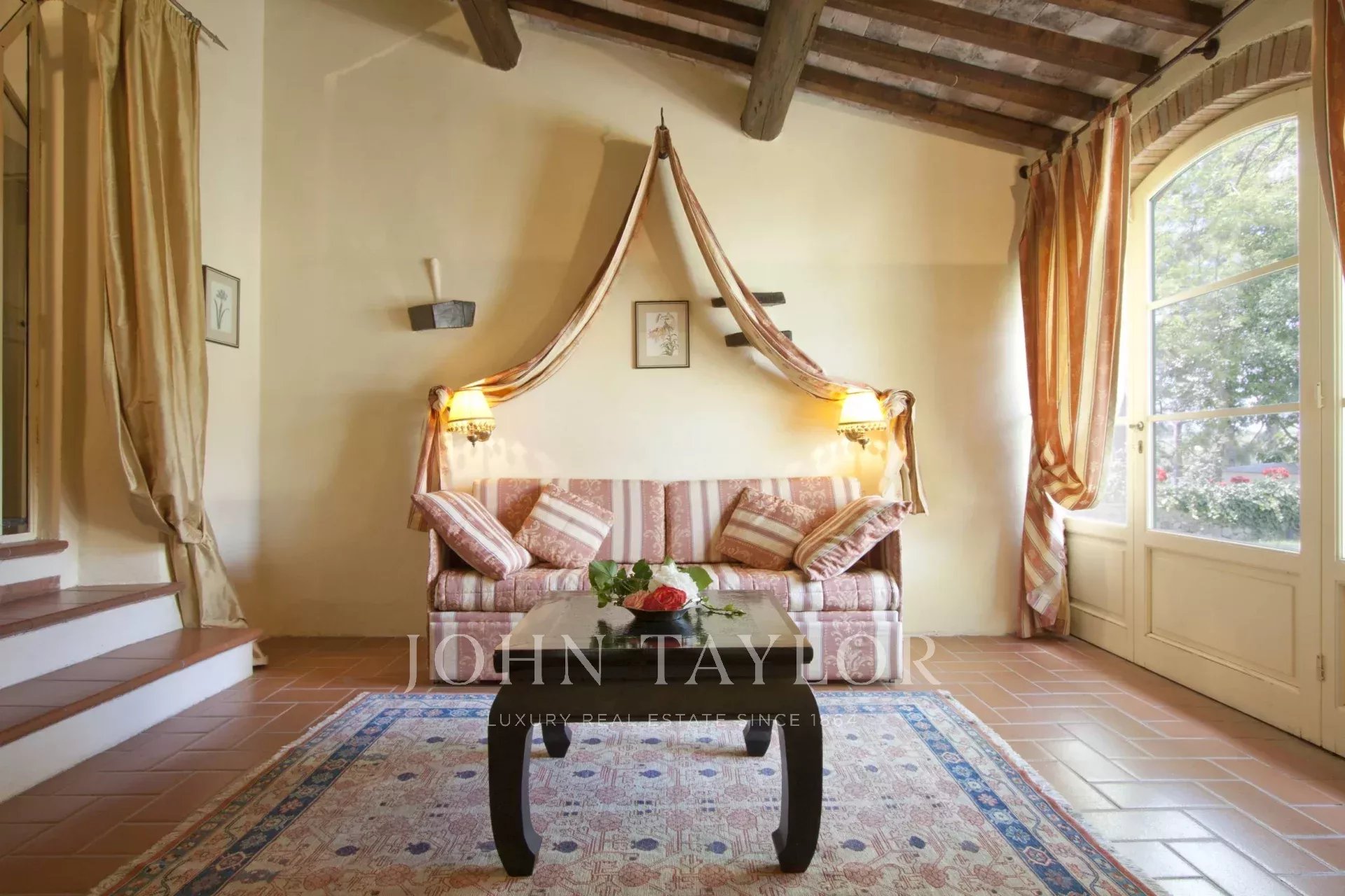 Situato a metà strada tra Firenze e San Gimignano sulla strada per Siena, per raggiungere questa suggestiva proprietà si percorrono circa 1,5 km di una strada bianca in eccellenti condizioni. La tenuta si estende su 13 ettari di campi e boschi, includendo un magnifico giardino curato di circa 1000 mq con piscina e un vigneto di un ettaro.