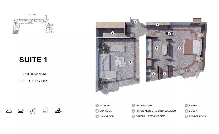 È già stato sviluppato un progetto accuratamente studiato per trasformare la tenuta in un esclusivo hotel di lusso, offrendo un’opportunità di sviluppo rara che valorizza e tutela l’inestimabile eredità storica e culturale del luogo.