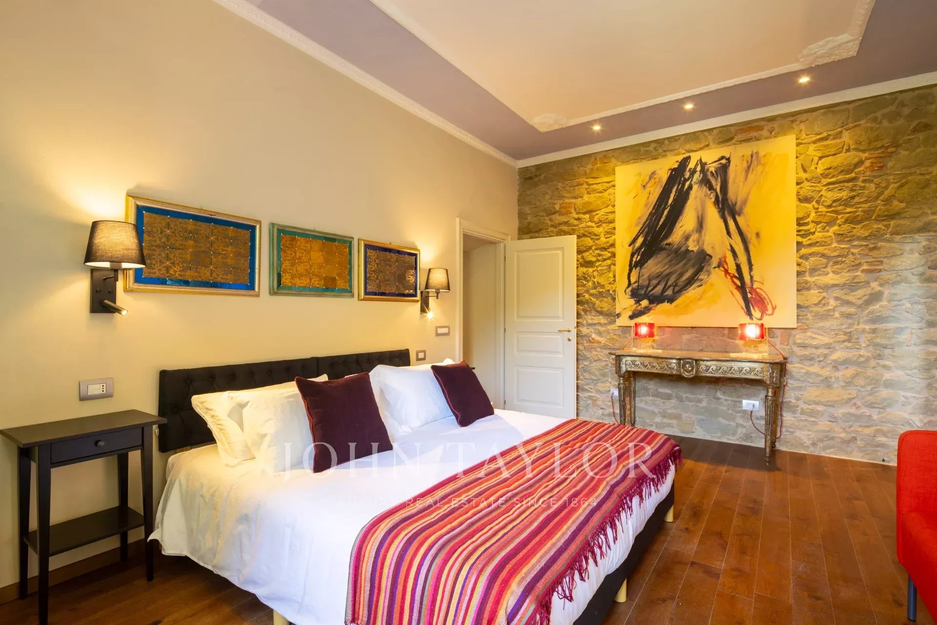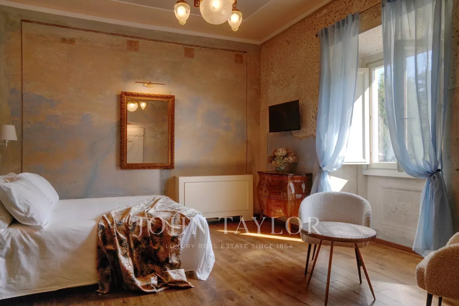 Sapientemente ristrutturata con materiali di pregio e un attento rispetto per l’architettura originale, la proprietà fonde armoniosamente il fascino del passato con il comfort contemporaneo. L’ala attualmente destinata all’ospitalità di lusso si sviluppa su circa 534 mq e ospita sei eleganti camere per gli ospiti, tutte dotate di bagno privato, una scenografica sala eventi, oltre a cantine e granai d’epoca, perfetti per ricevimenti esclusivi o ritiri di charme.