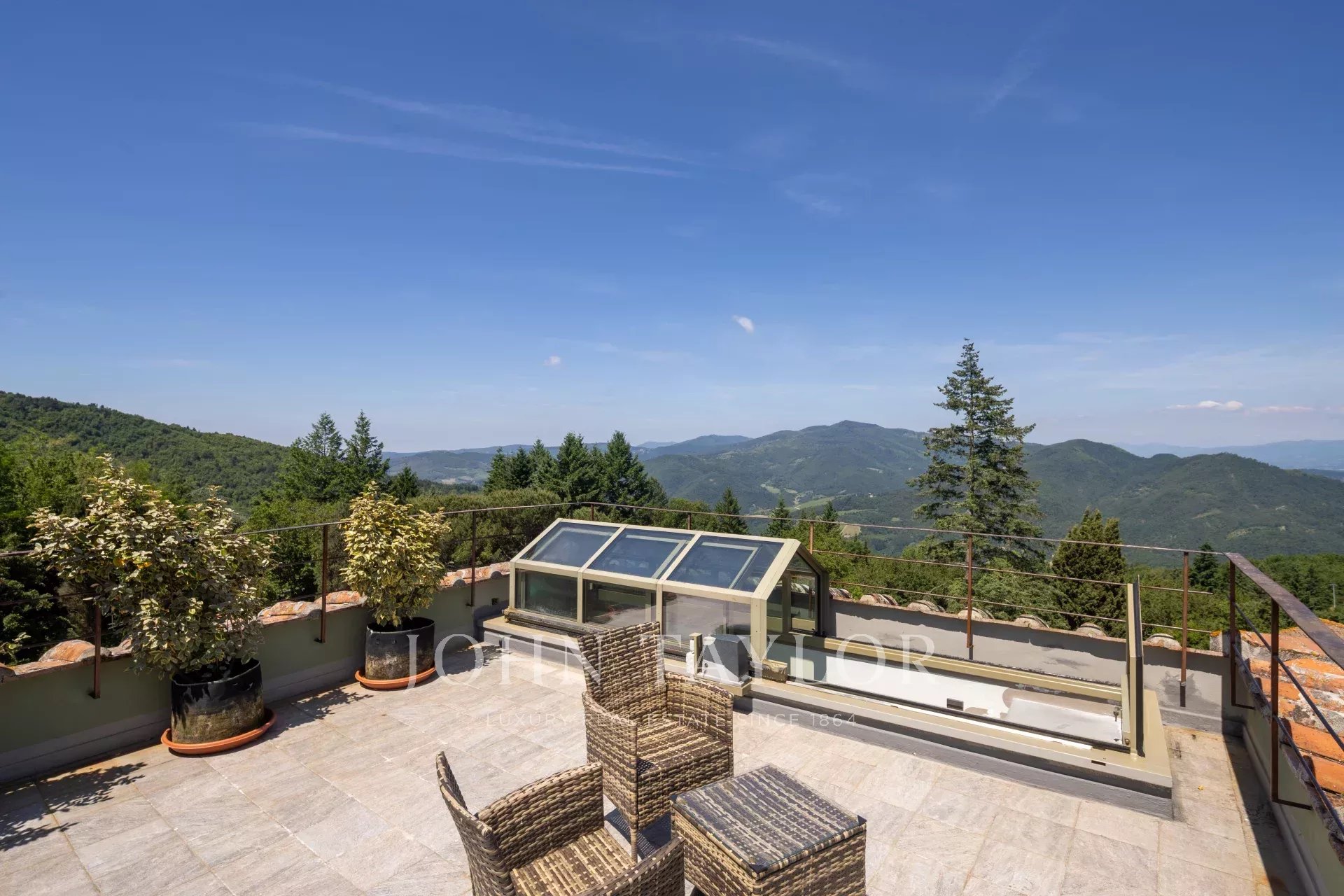 Due ampie terrazze panoramiche, situate sulle torri della villa, offrono una vista mozzafiato sulla campagna toscana circostante, rappresentando spazi ideali per momenti di relax all’aperto, colazioni, aperitivi o piccoli eventi privati.