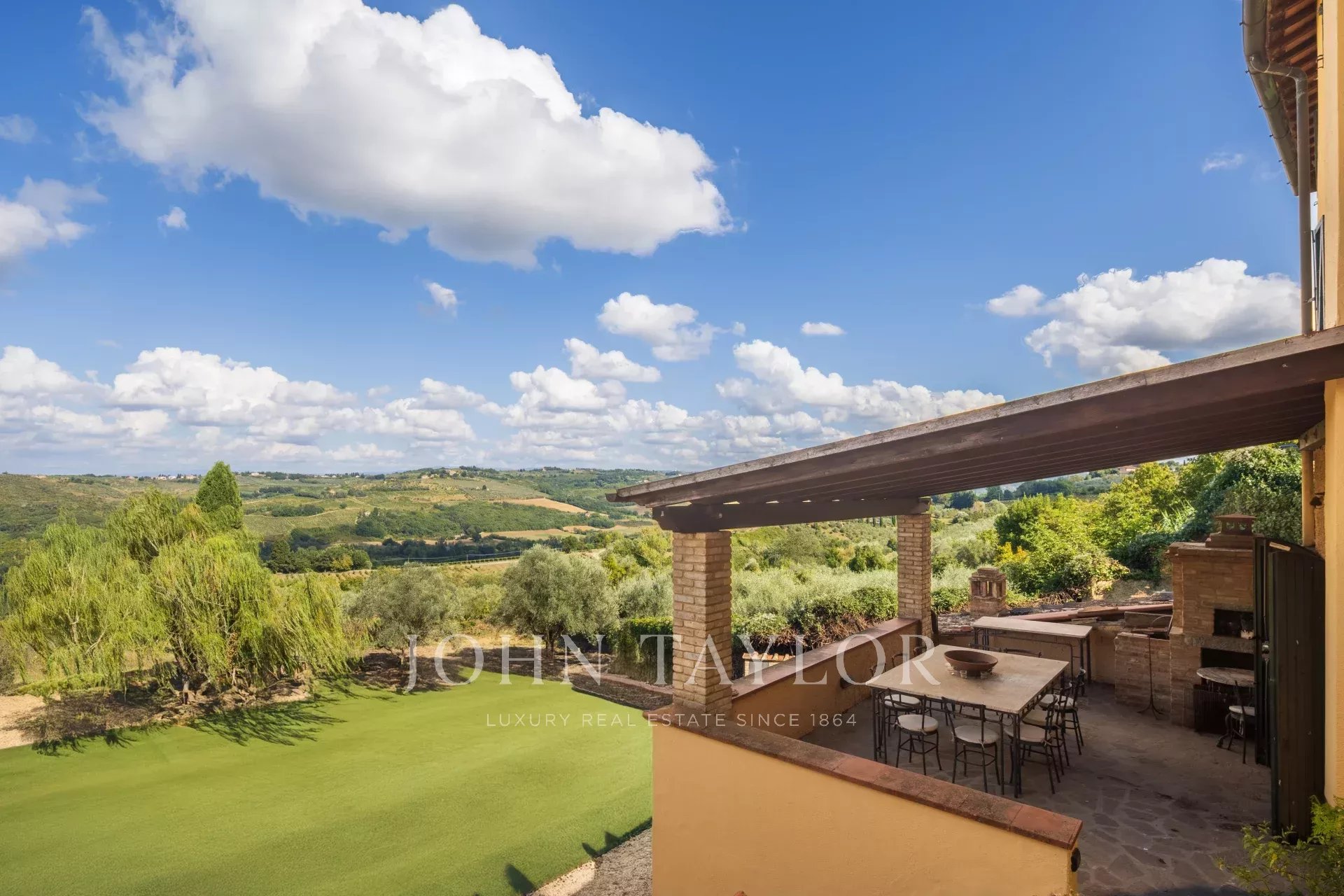 Nel corpo principale della villa si trovano quattro spaziose camere da letto, ampie zone living e una taverna con seconda cucina dalle finiture tradizionali toscane.
