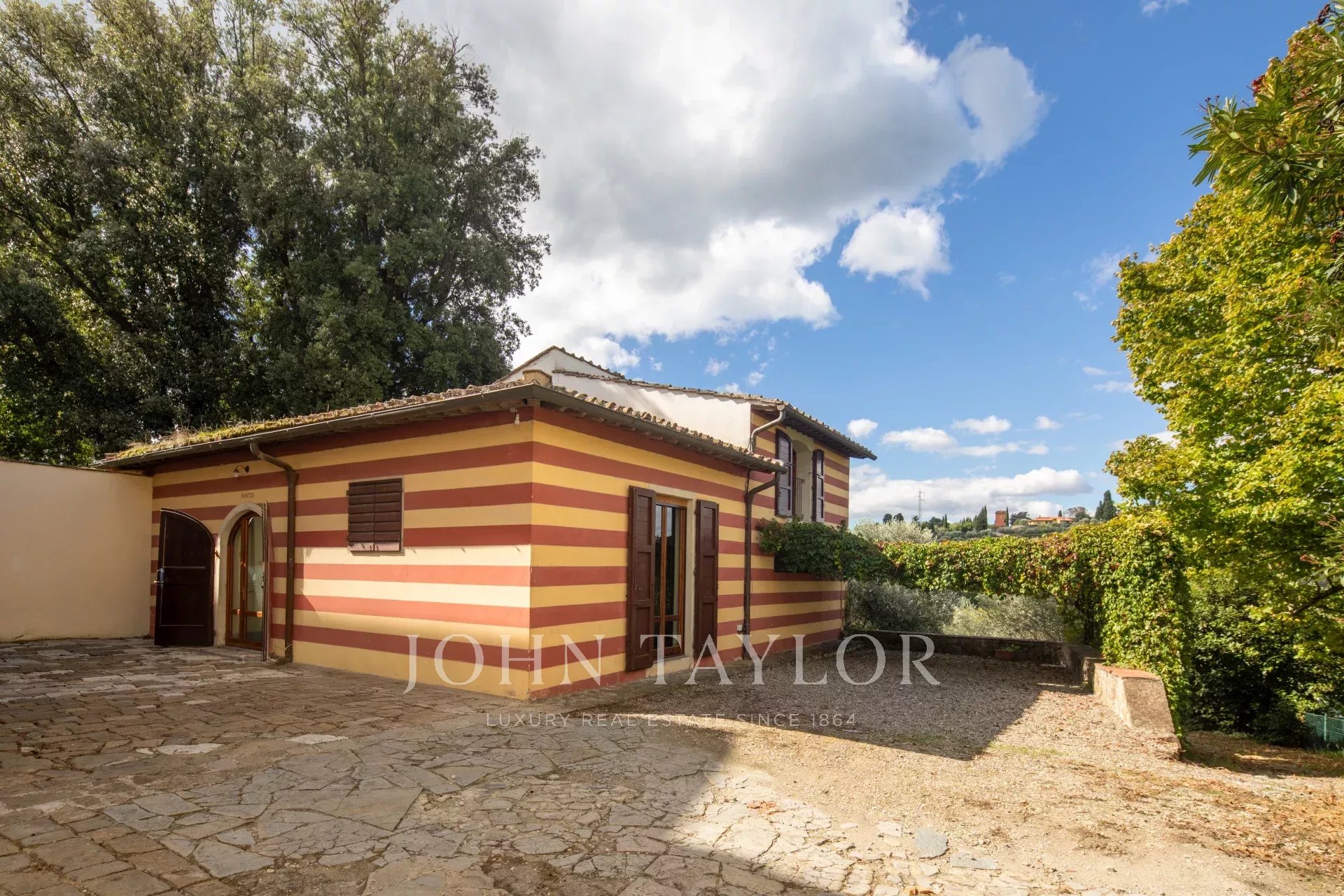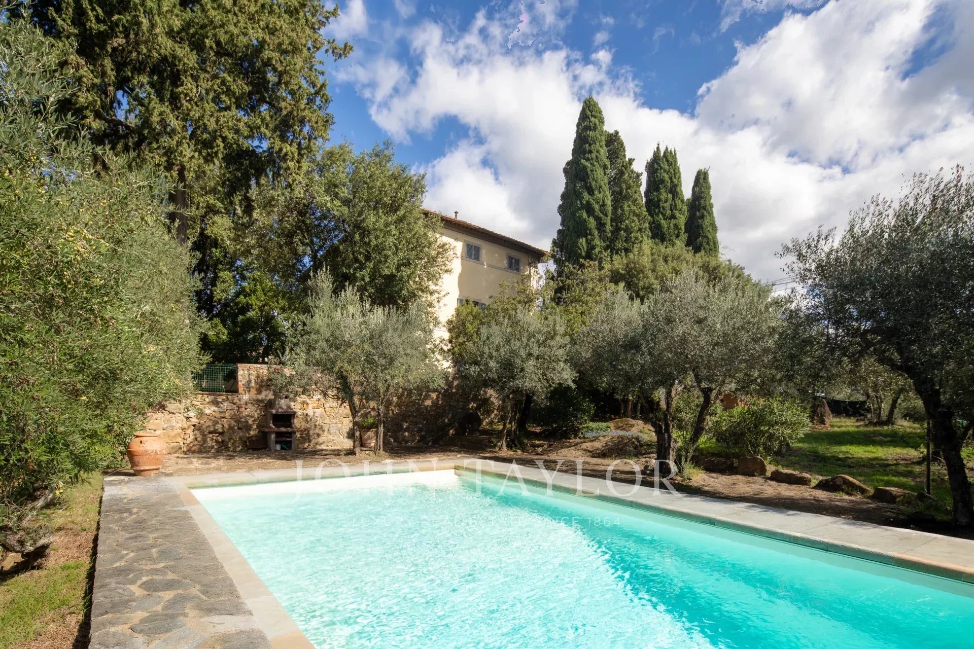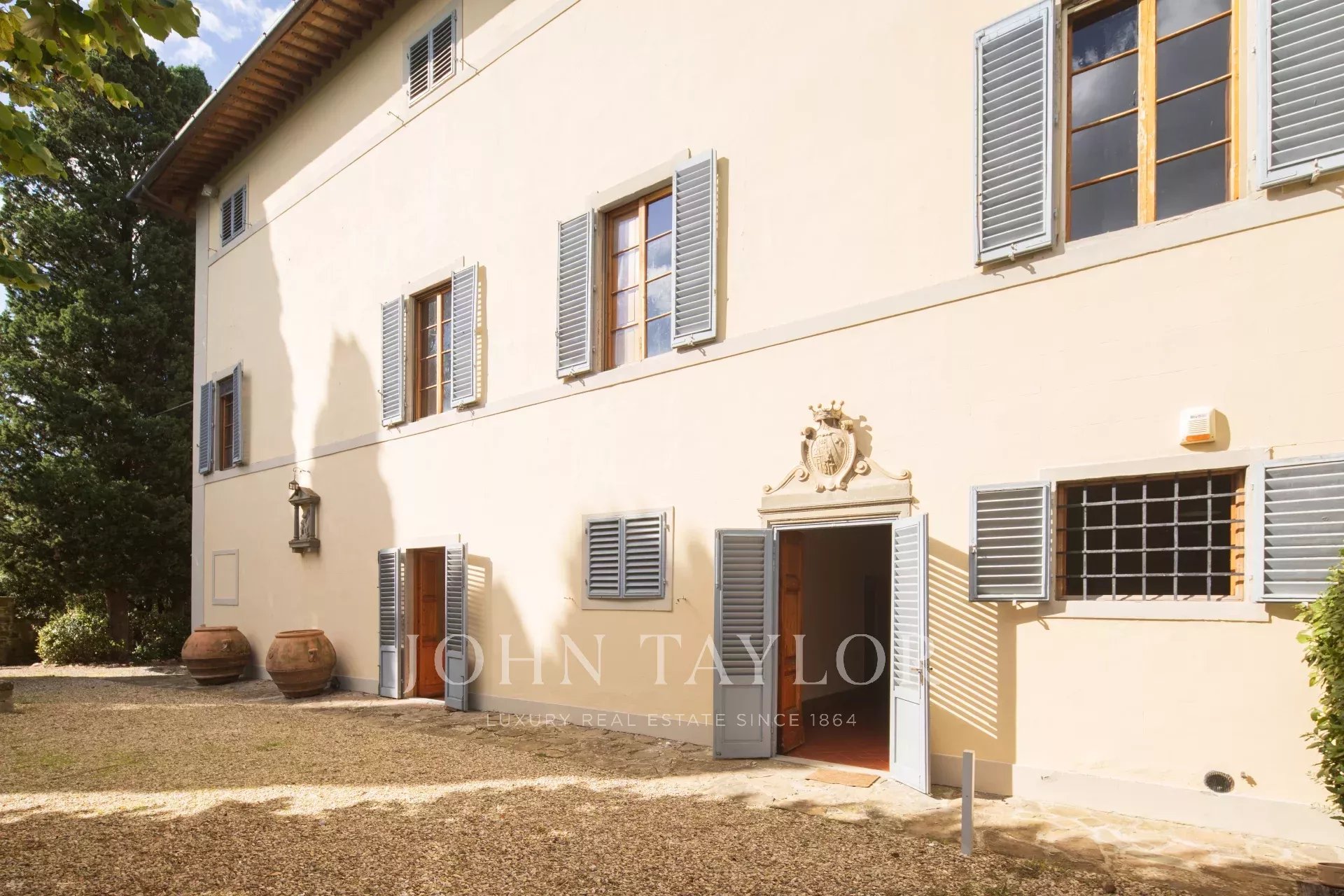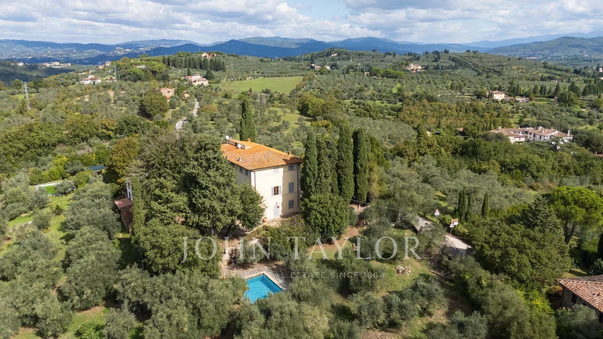 A soli 12 km dal centro di Firenze, immersa nelle dolci colline toscane, questa prestigiosa tenuta si estende su 3,5 ettari di uliveti privati e comprende una villa storica principale e due abitazioni indipendenti, perfettamente armonizzate con il paesaggio circostante.