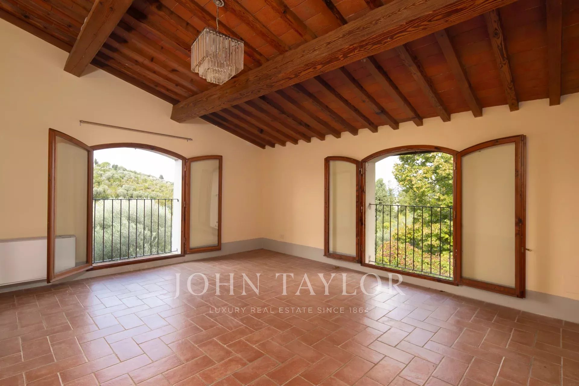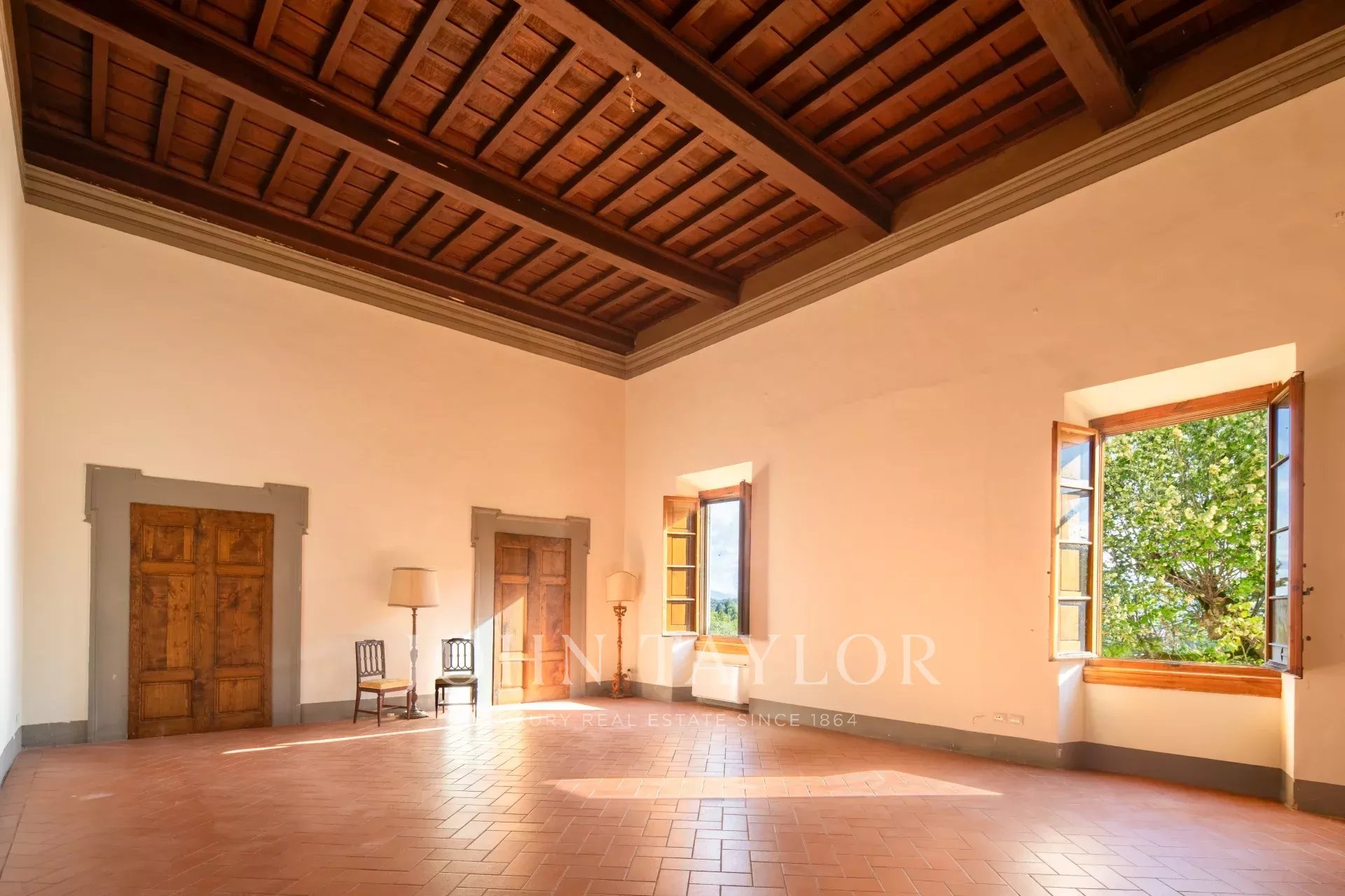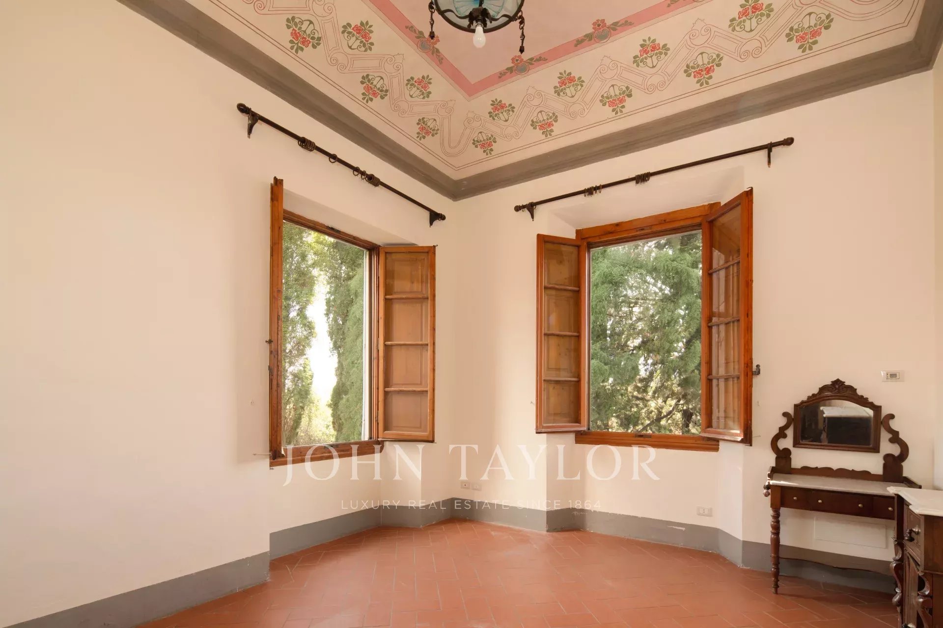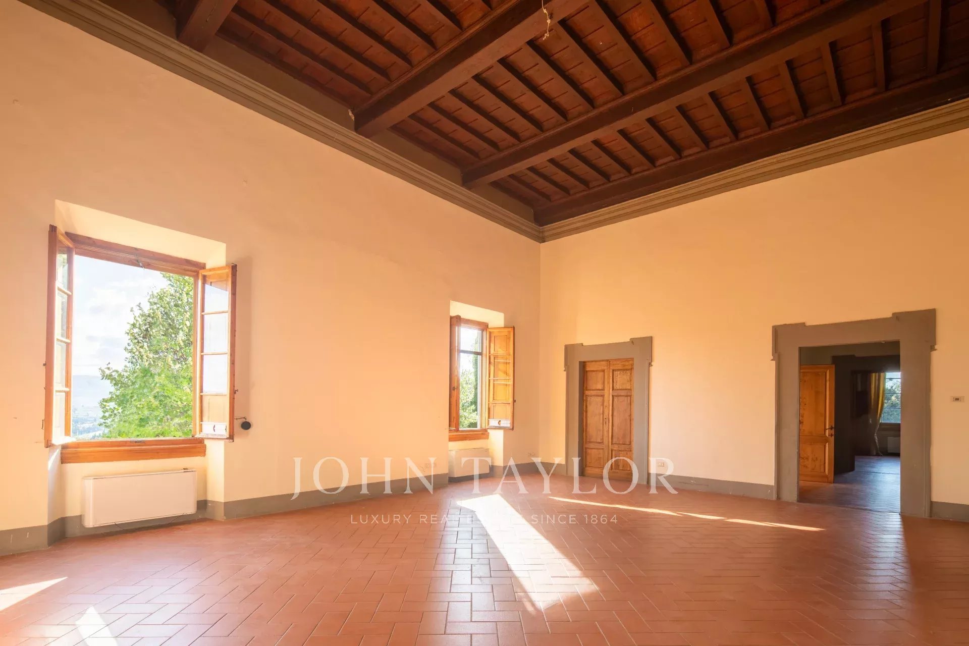 A soli 12 km dal centro di Firenze, immersa nelle dolci colline toscane, questa prestigiosa tenuta si estende su 3,5 ettari di uliveti privati e comprende una villa storica principale e due abitazioni indipendenti, perfettamente armonizzate con il paesaggio circostante.