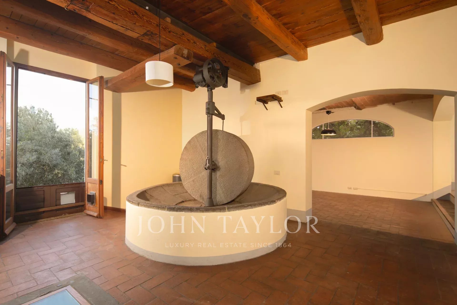 La proprietà comprende inoltre una seconda abitazione indipendente di circa 211 m², sapientemente ristrutturata, che conserva intatti elementi rustici originali come l’antico mulino in pietra, unendo fascino storico e comfort moderni.
