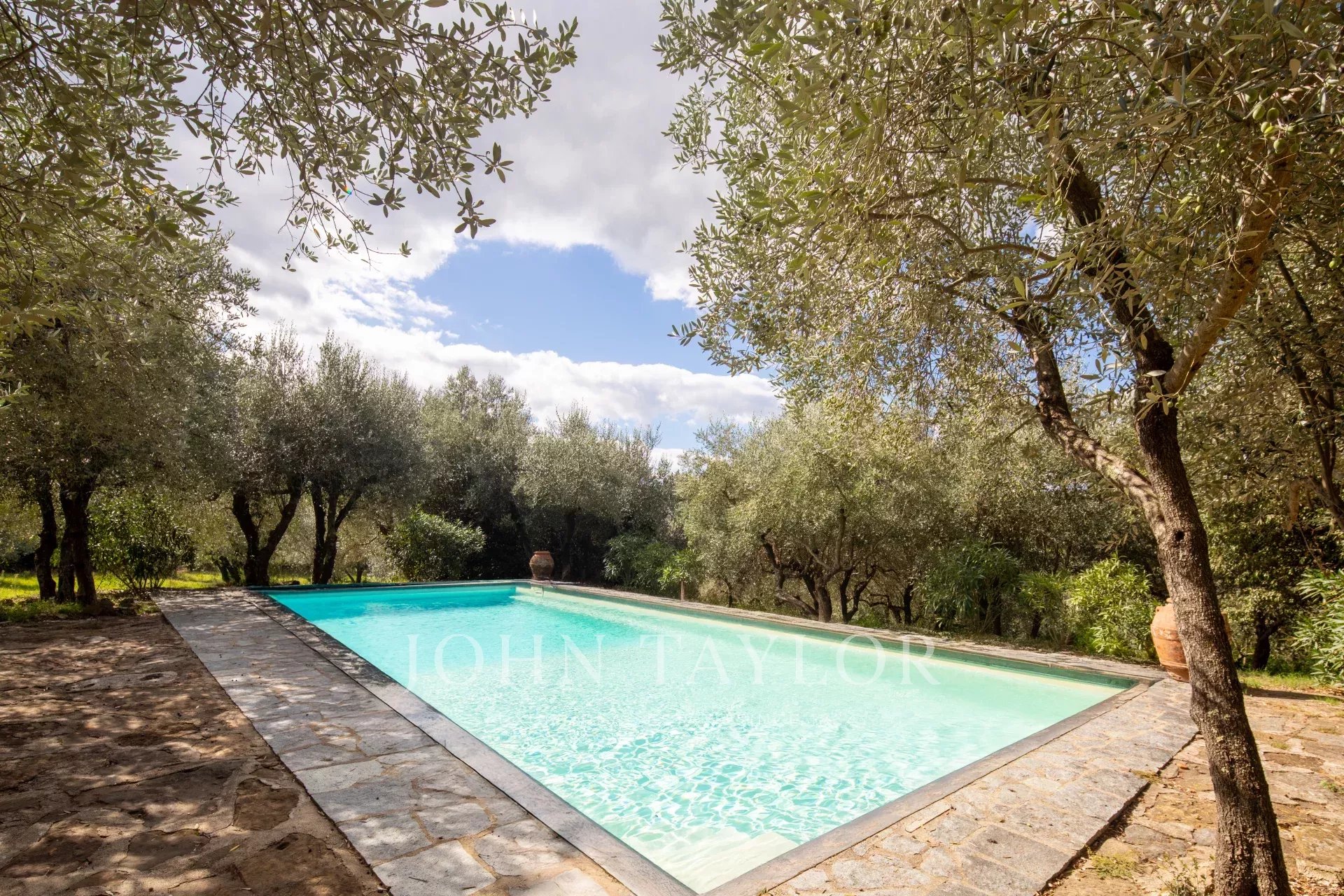 La residenza principale, di circa 700 m² distribuita su tre livelli, è circondata da un raffinato giardino all’italiana e da una piscina privata con splendida vista panoramica sugli uliveti. I primi due piani sono stati finemente ristrutturati, mentre la mansarda di circa 200 m² offre ulteriori possibilità di personalizzazione. Una suggestiva cantina in pietra naturale conserva l’olio extravergine prodotto nella tenuta. Al piano terra si trovano un ampio salone con camino, una sala da pranzo, uno studio, una cucina con dispensa, una camera con bagno e un locale tecnico; il primo piano ospita una magnifica sala da ballo di oltre 50 m², tre camere da letto, di cui una con soffitto affrescato, e tre bagni.