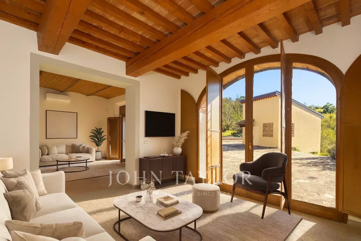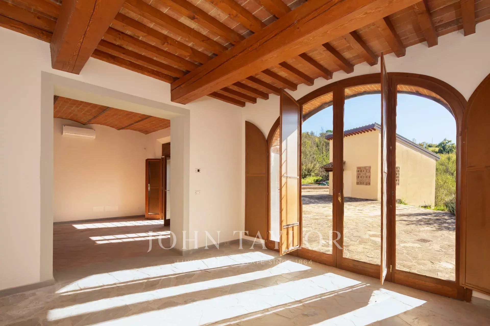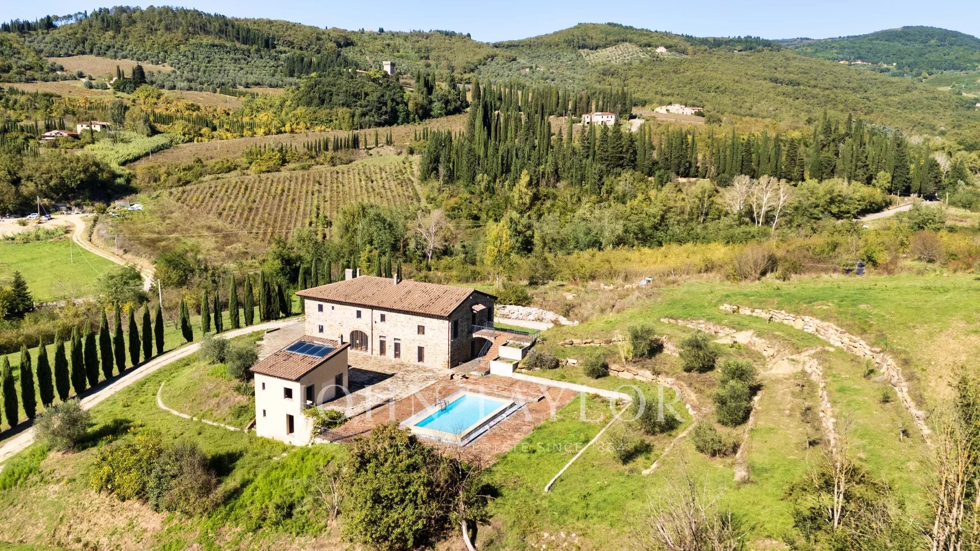 A completare la proprietà, un terreno di 7,5 ettari, di cui circa 3 ettari a vigneto e la parte restante a uliveta e bosco, che incornicia perfettamente la casa e ne esalta l’autenticità toscana. È inoltre possibile creare un secondo accesso carrabile per raggiungere comodamente la proprietà.