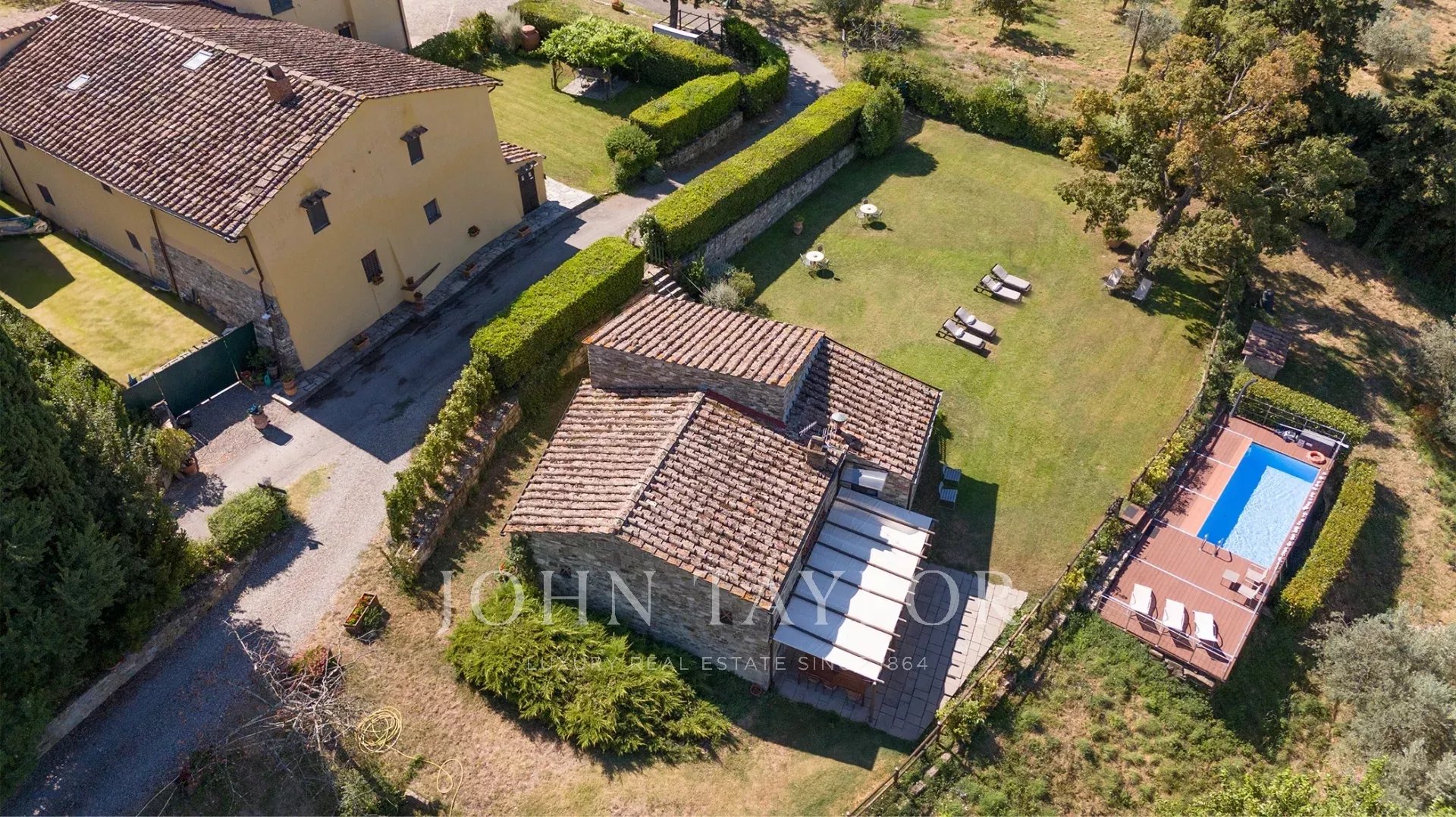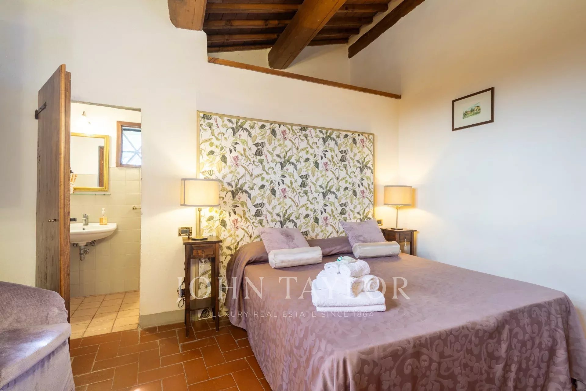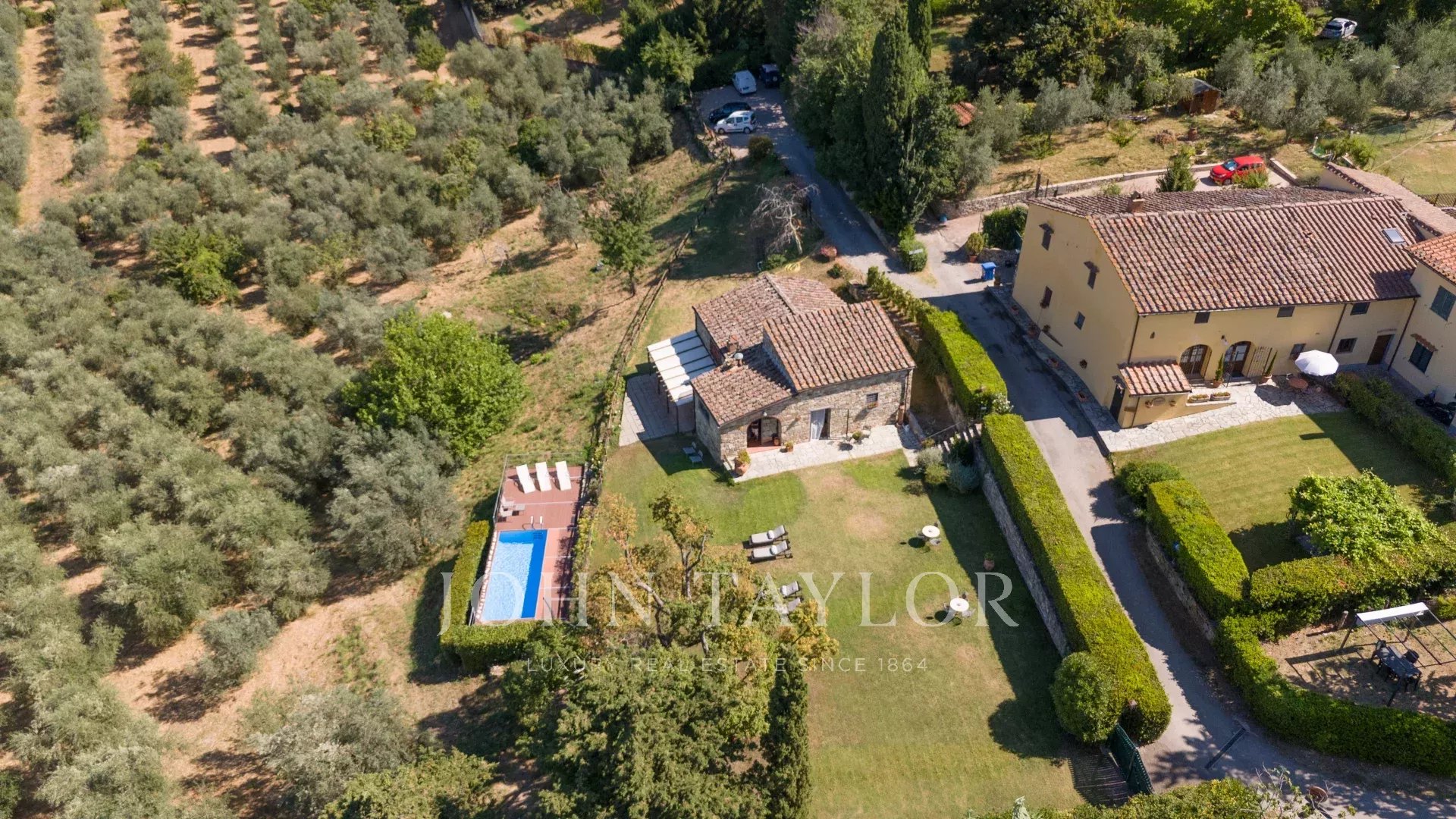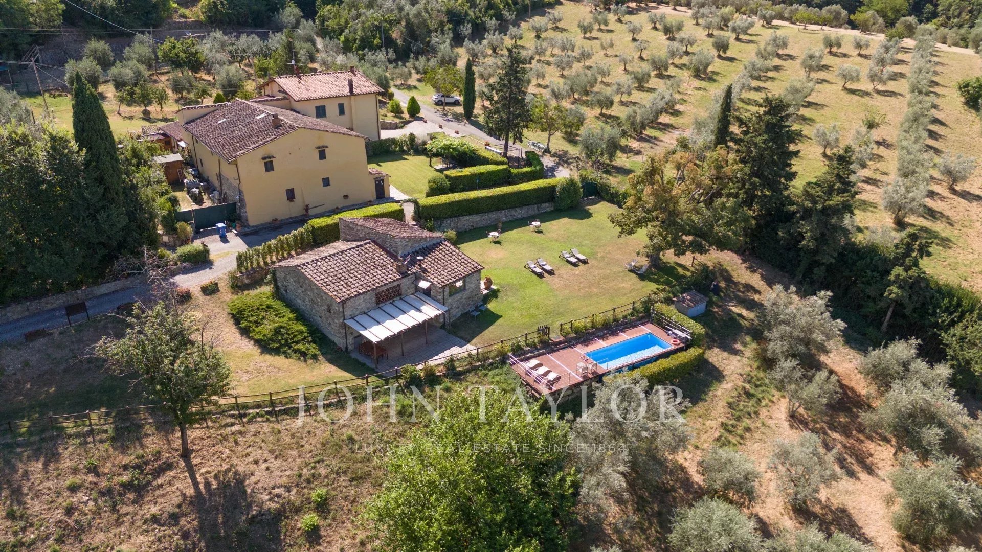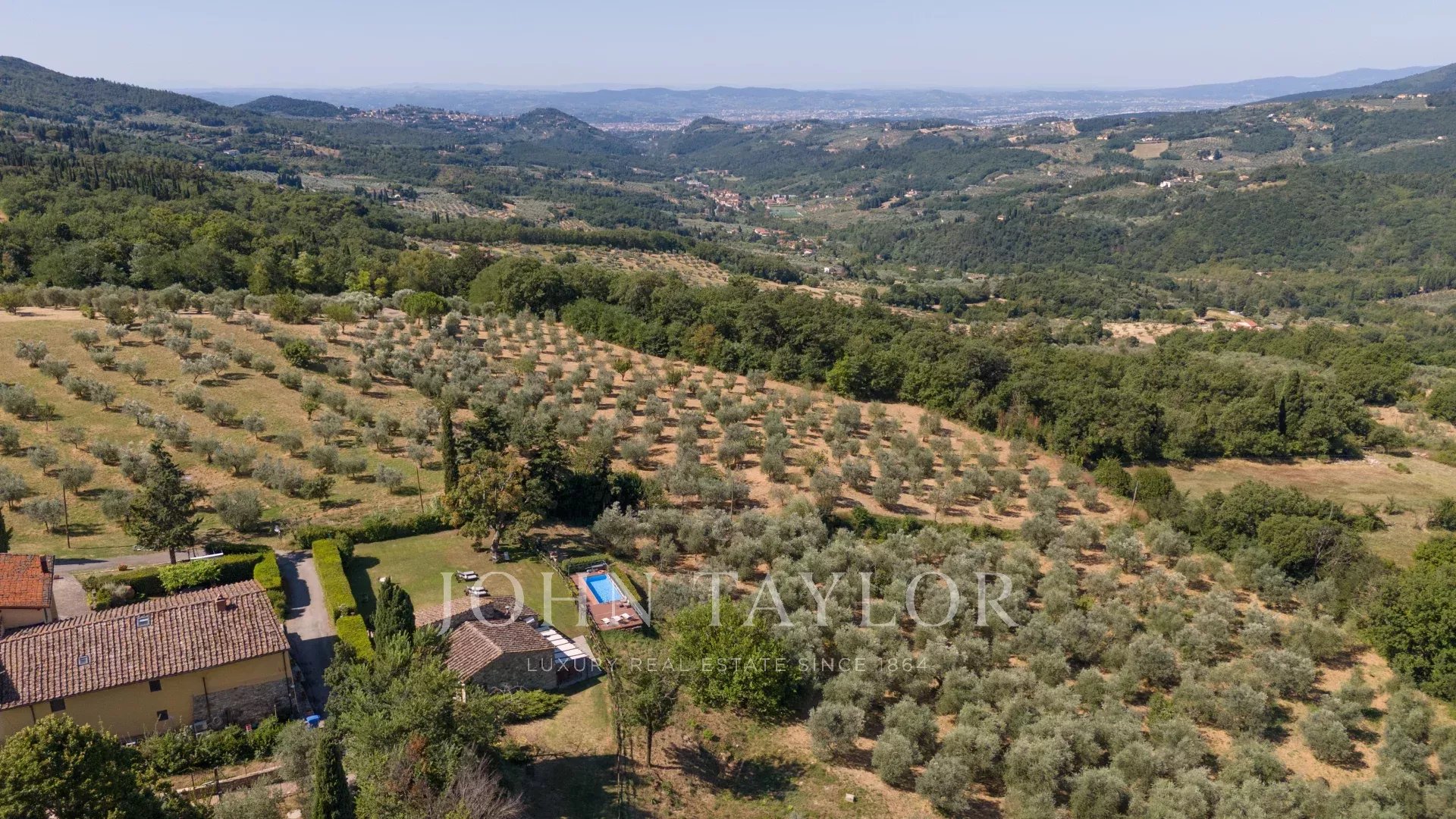 Questa incantevole tenuta del XVII secolo è arroccata sulla pittoresca collina di Fiesole e comprende quasi 3 ettari di terreno ornati da uliveti, un giardino di 500 mq e una rilassante piscina.
