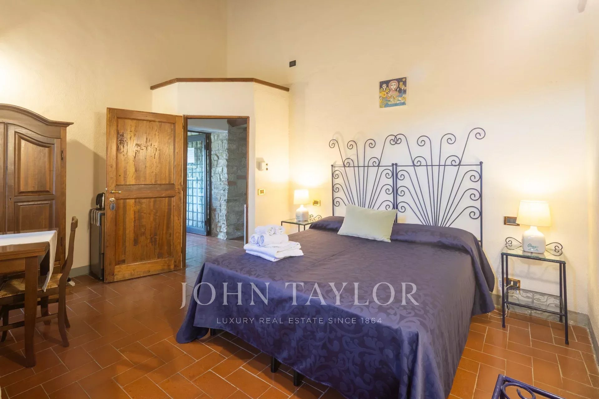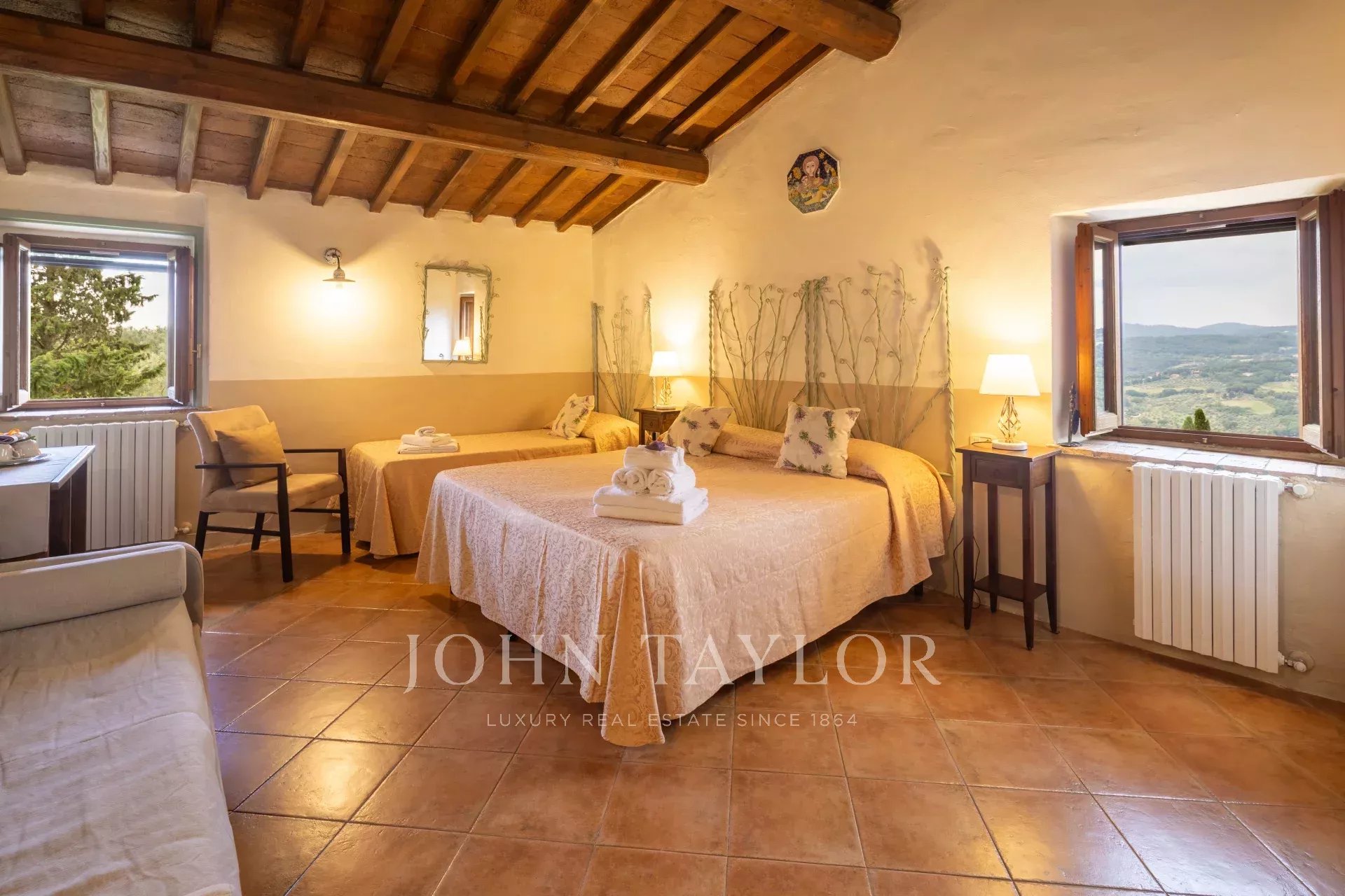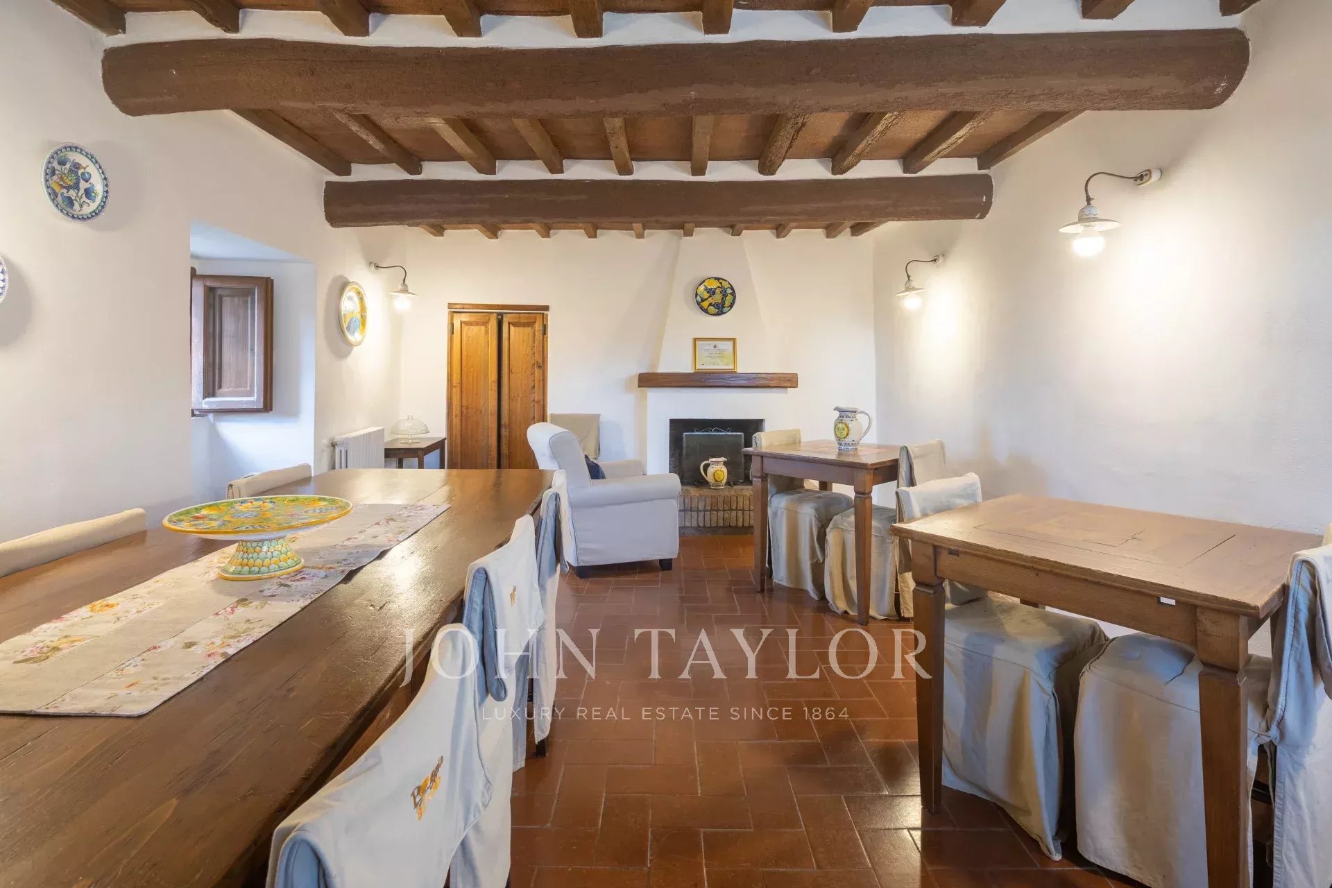 Grazie all'esposizione a ovest, la proprietà gode di splendidi tramonti ogni sera durante tutto l'anno. Entrambe le strutture, ristrutturate e in buone condizioni, presentano travi originali in legno a vista e pavimenti in cotto tradizionale.