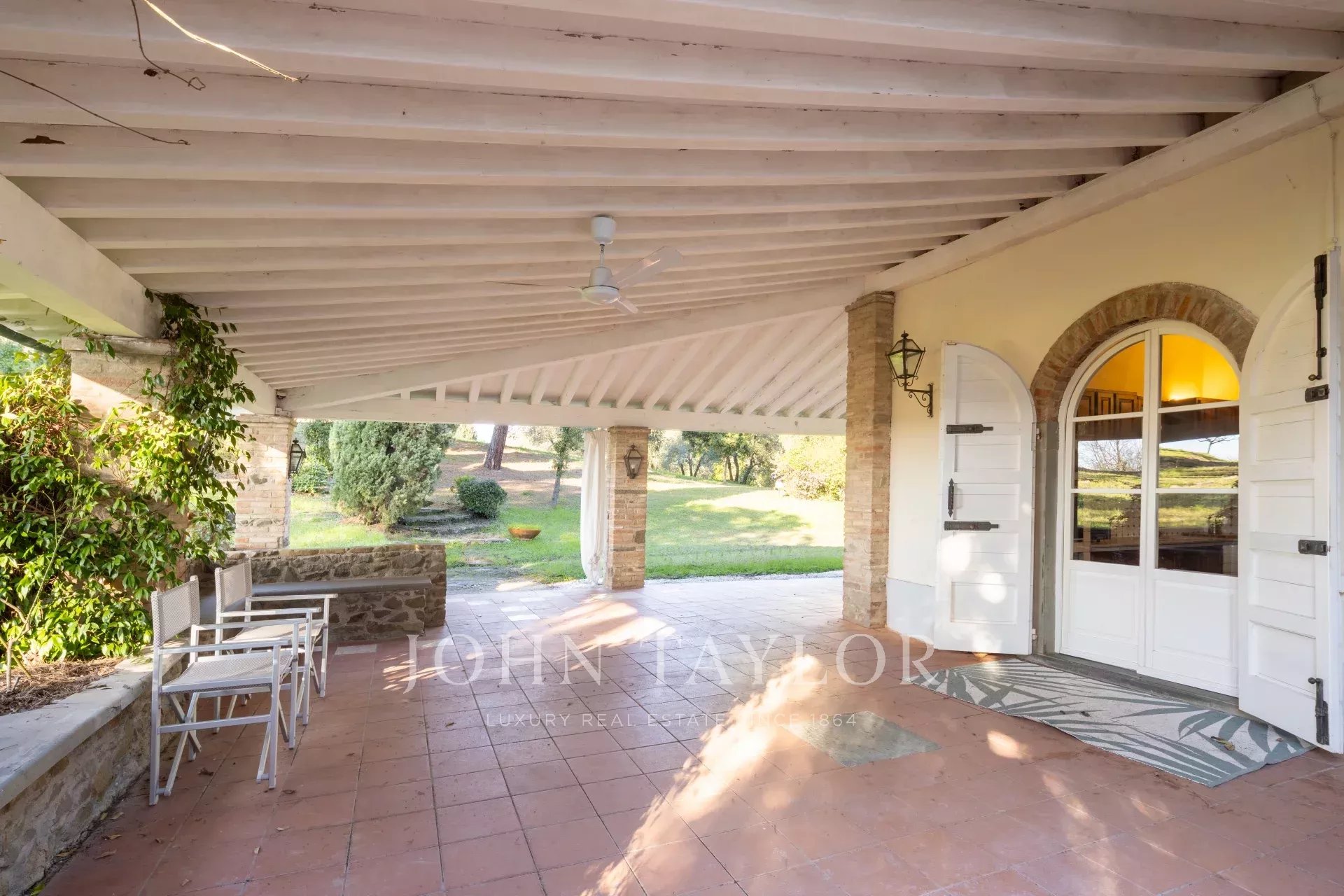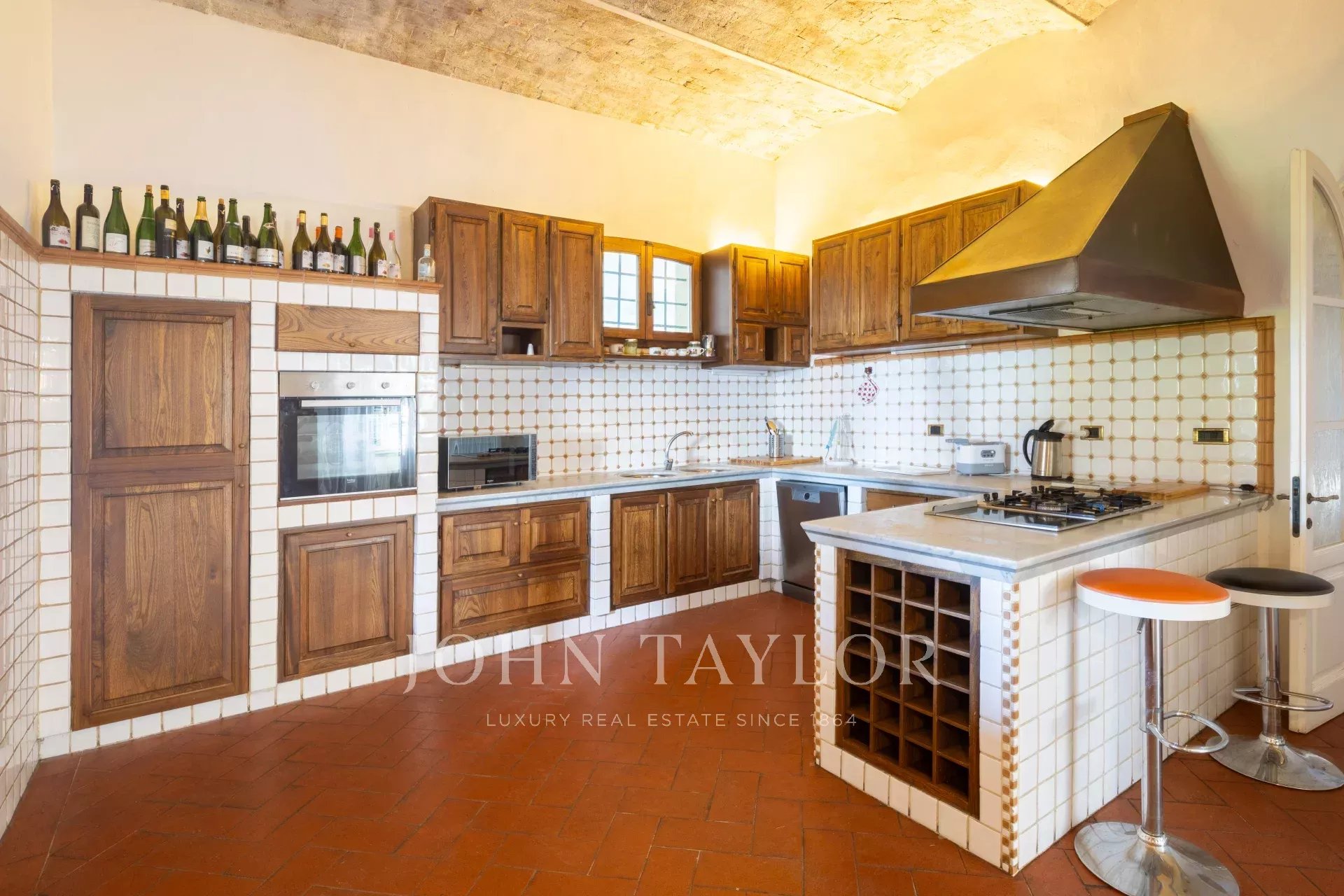 La villa vanta uno splendido parco, un'incantevole piscina con vista panoramica su vigneti e uliveti e un campo da tennis privato amatoriale.