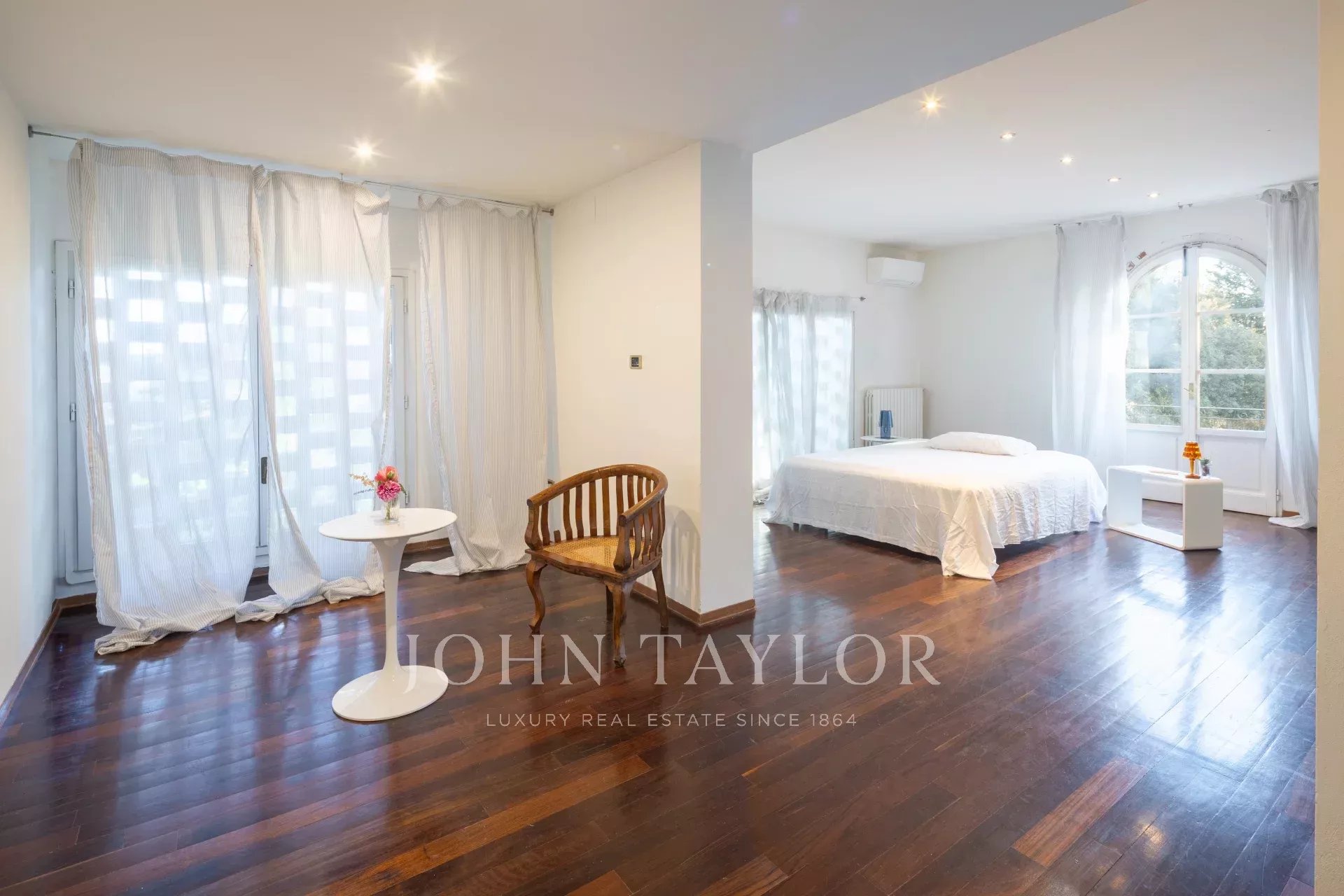 Composta da un totale di 5 camere da letto e 4 bagni, la disposizione comprende una spaziosa cucina in muratura, una sala da pranzo con camino e cantina, due soggiorni - uno con un grande camino e l'altro aperto sul giardino - e un bagno per gli ospiti al piano terra. La cucina si estende senza soluzione di continuità all'esterno su un ampio patio, offrendo uno spazio ideale per ospitare riunioni.