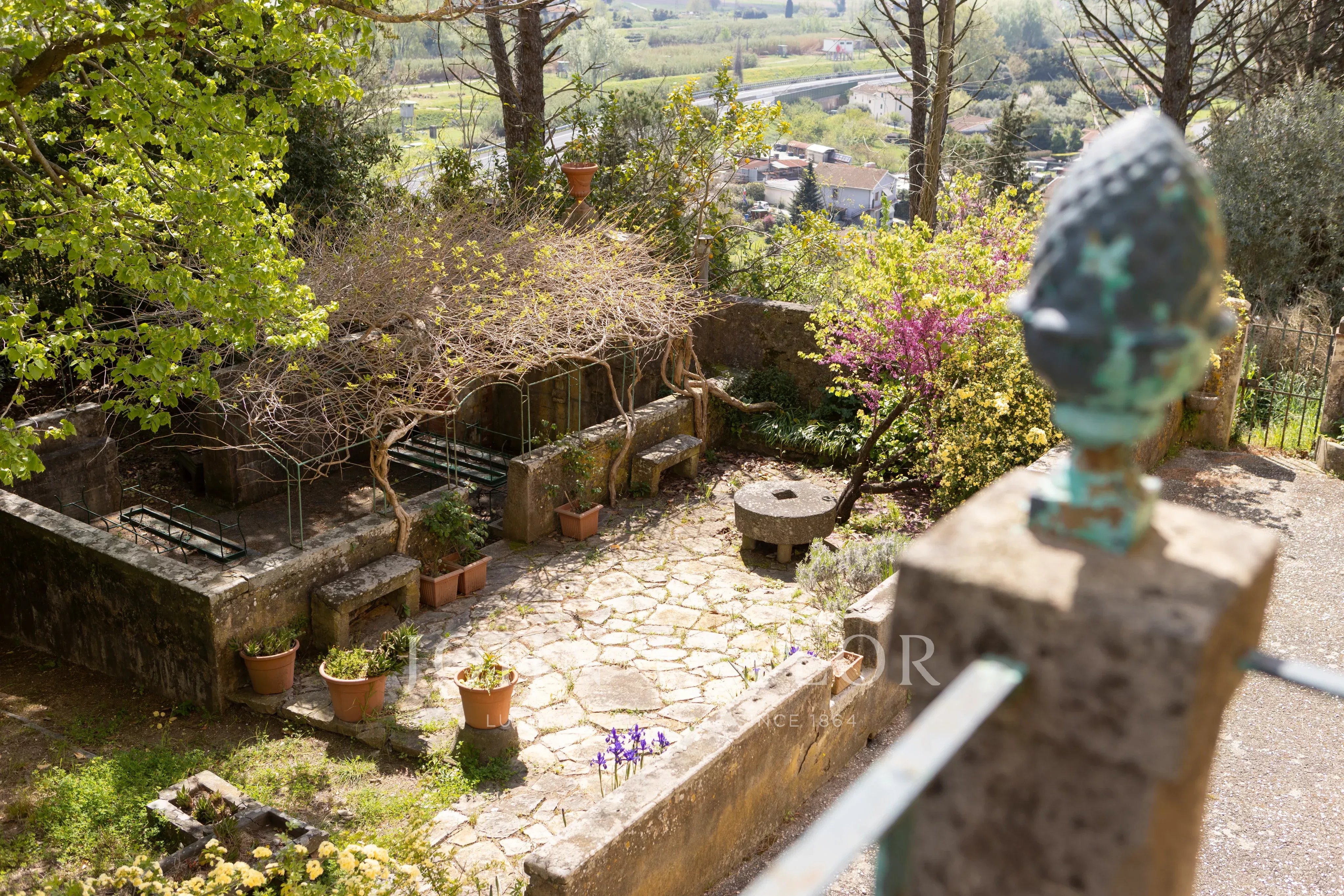 La tenuta si estende per circa 10 ettari di terreno, in parte destinati a giardino e in parte coltivati con oliveto, vigneto e alberi da frutto.