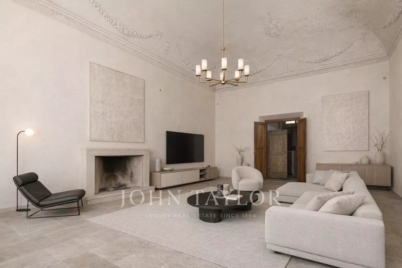 Gli interni sono ampi, luminosi ed eleganti, arricchiti da arredi raffinati, camini originali e finiture di pregio. La zona giorno comprende tre saloni, tre cucine e una biblioteca. La zona notte ospita undici camere da letto e quattro bagni. Completano la residenza locali tecnici, terrazze, balconi e una suggestiva cappella privata con l’altare originale ancora conservato.